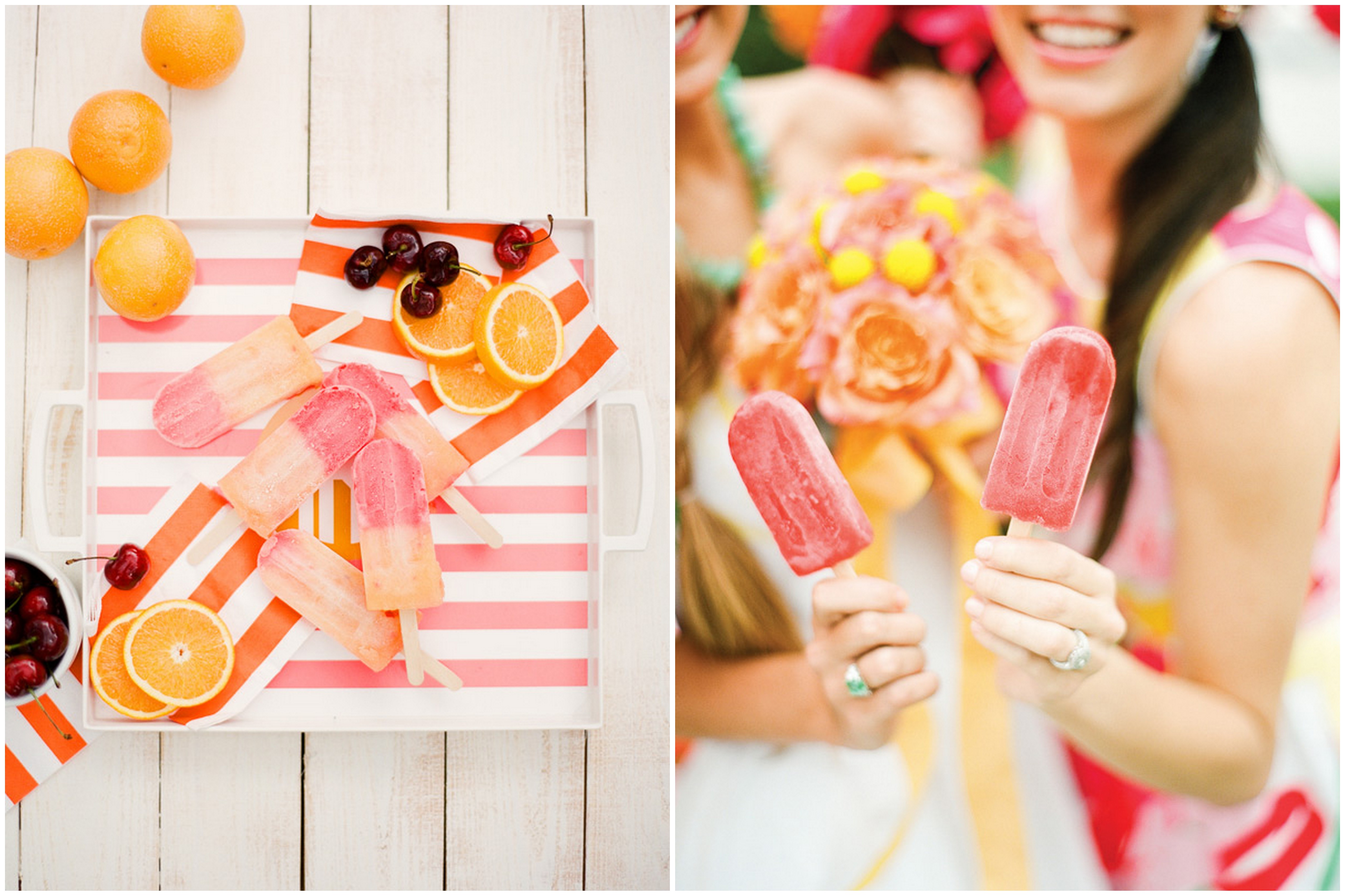 Today’s post really packs a punch!! We’re so excited to share the perfectly pink + orange Lilly Pulitzer shoot that we helped to produce!! Featured in the latest issue of Southern Weddings Magazine, these photos by KT Merry are some serious eye candy. From the playful Lilly bridesmaid dresses (we love this one too!) to the pink table setting and vibrant dessert stand (cake push pops by Cupcakes Couture of Manhattan Beach? YES please!), we can’t choose our favorite aspect of this shoot. Lucia Paul Design did an AMAZING job incorporating super fun elements + décor, don’t you think?!