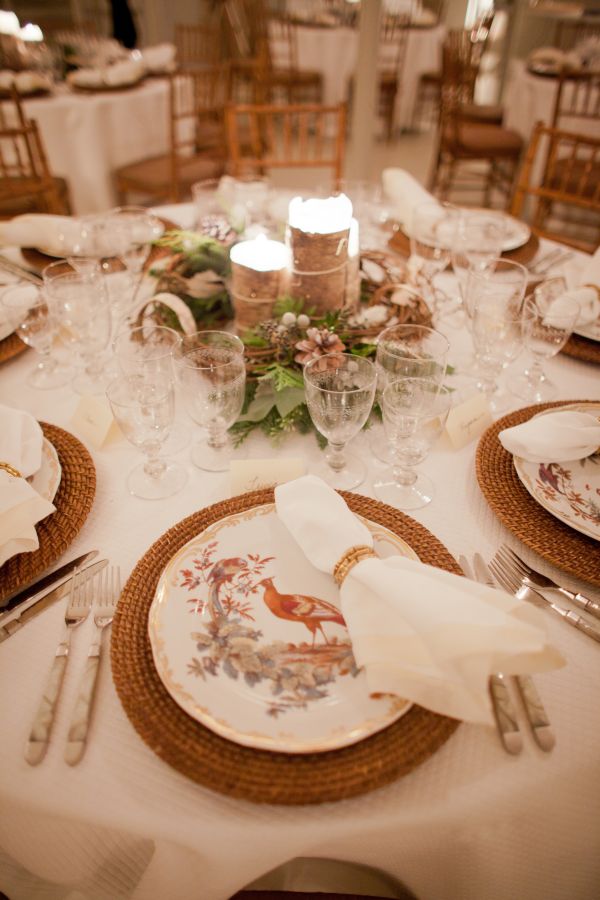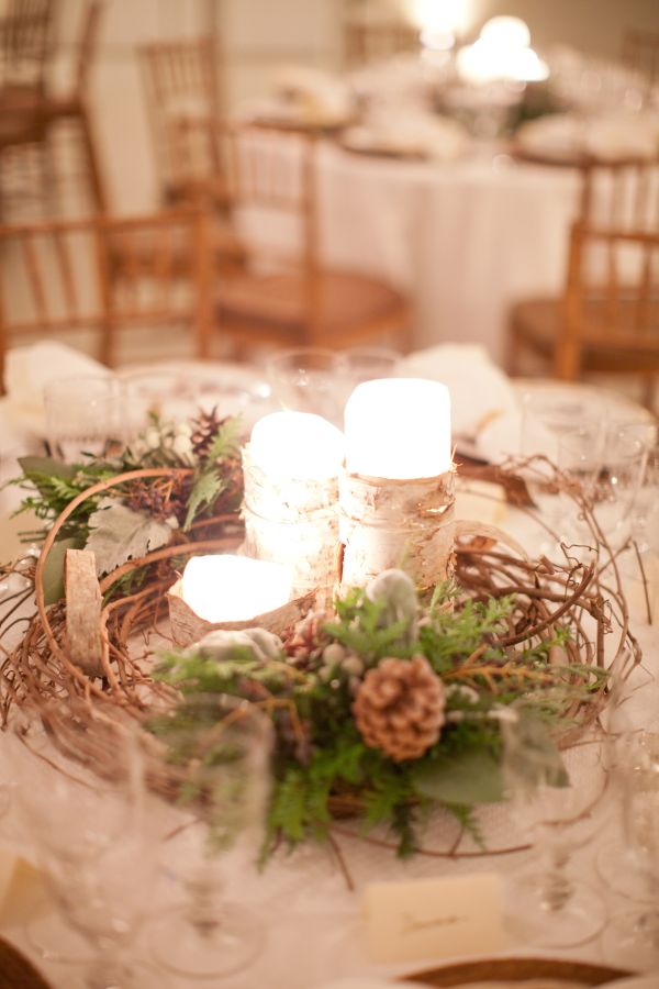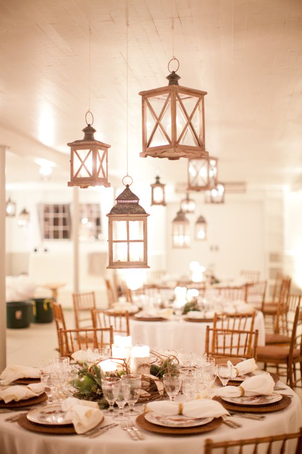 There’s something about the holidays that makes you want to celebrate!! Today’s post is full of holiday wedding inspiration by the lovely Lynn Easton of Easton Events! Lanterns hung from the ceiling over gorgeous gold, brown, green and cream table settings… how pretty are the candles, pine cones and Christmas wreaths?! Everything just glows and we love how warm this event feels. So perfect for a winter wedding celebration!