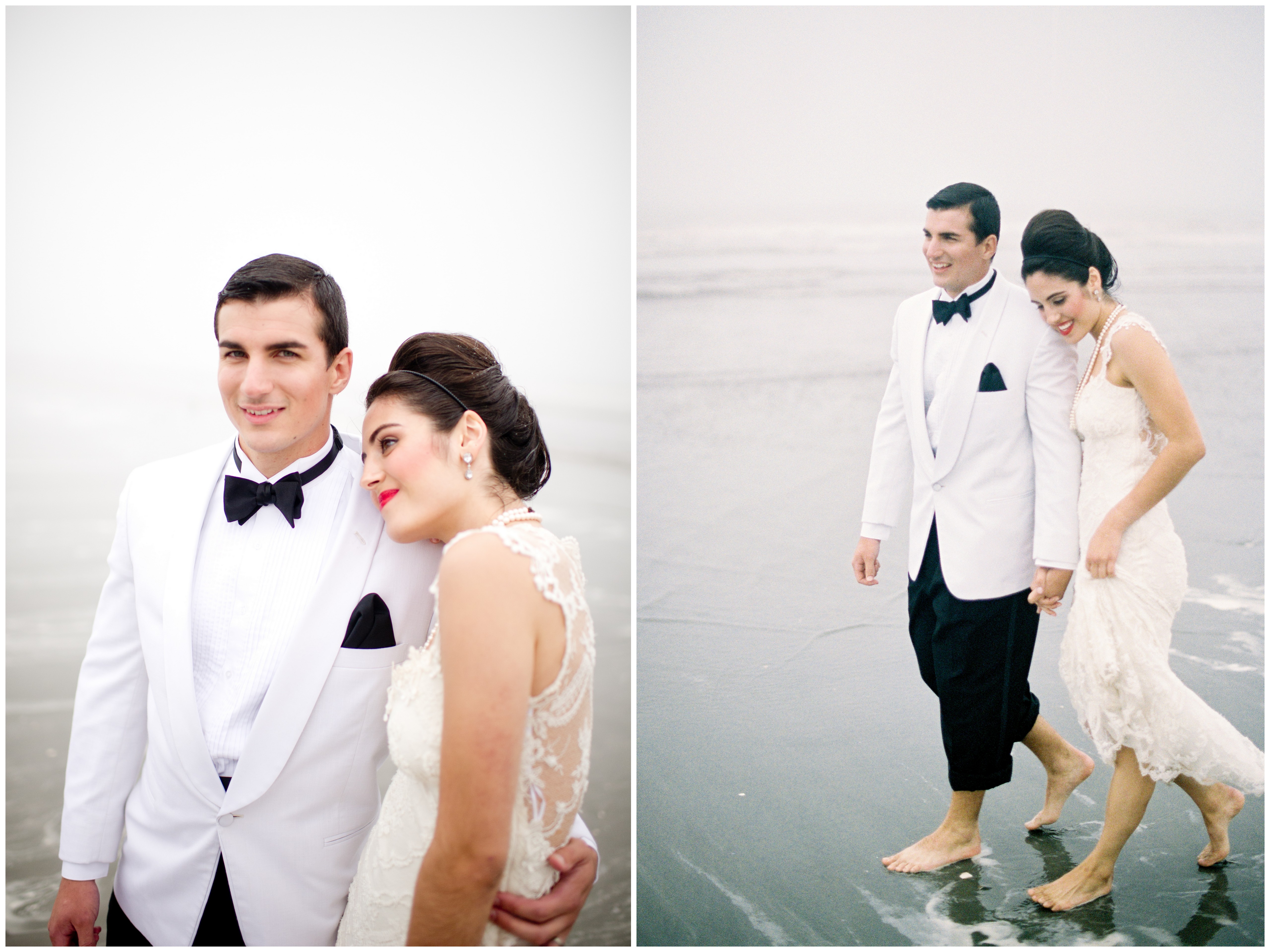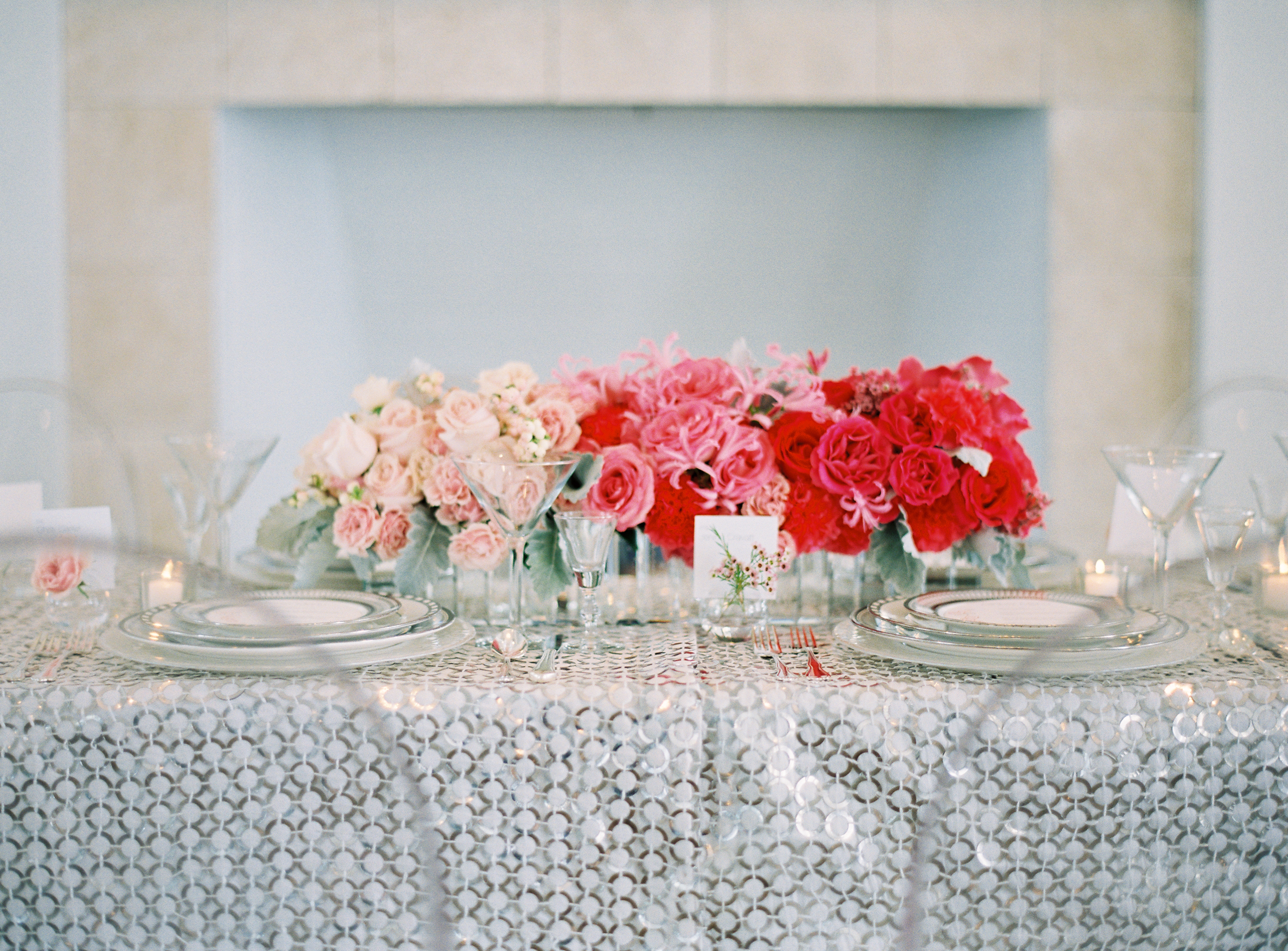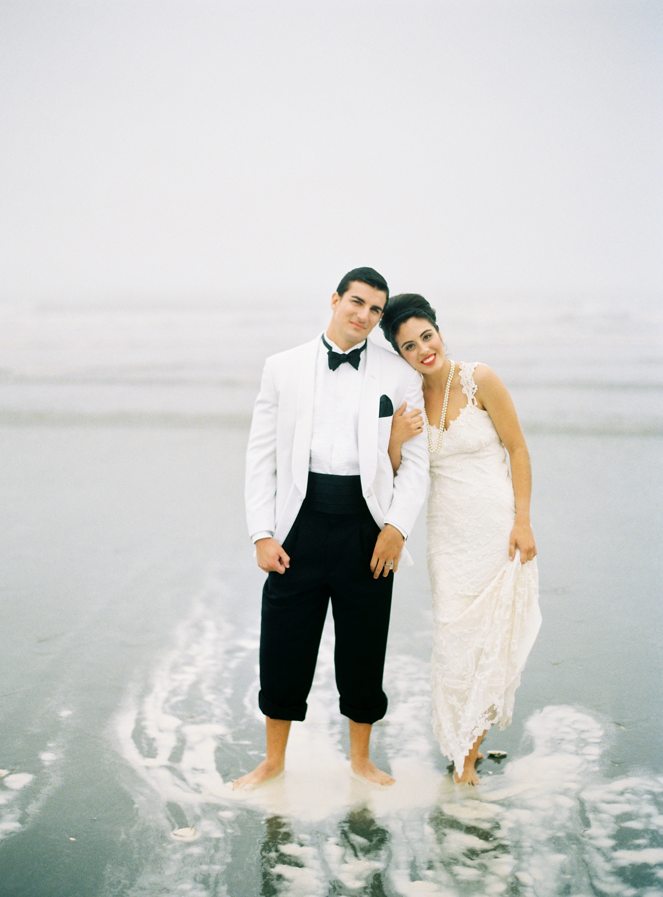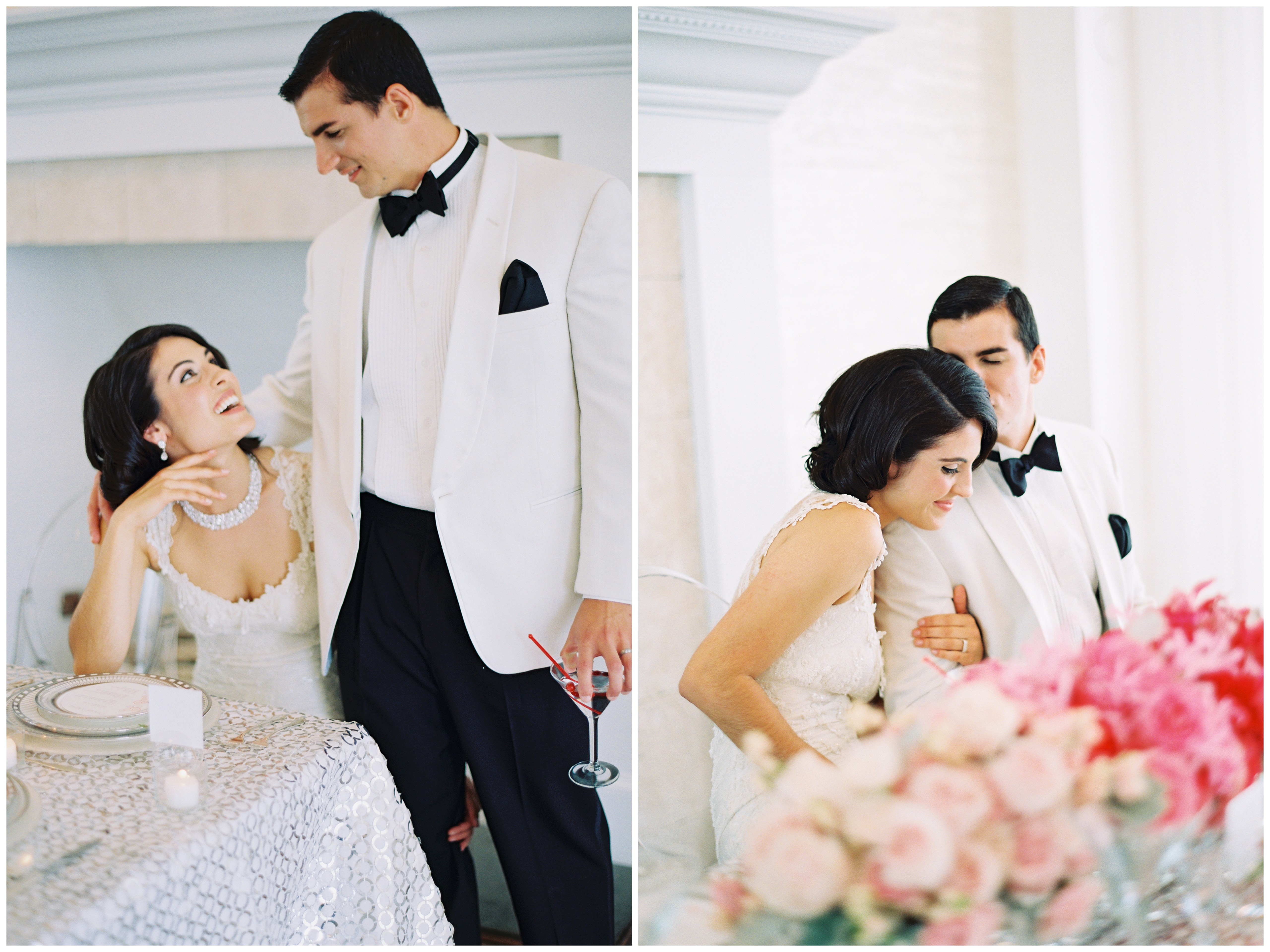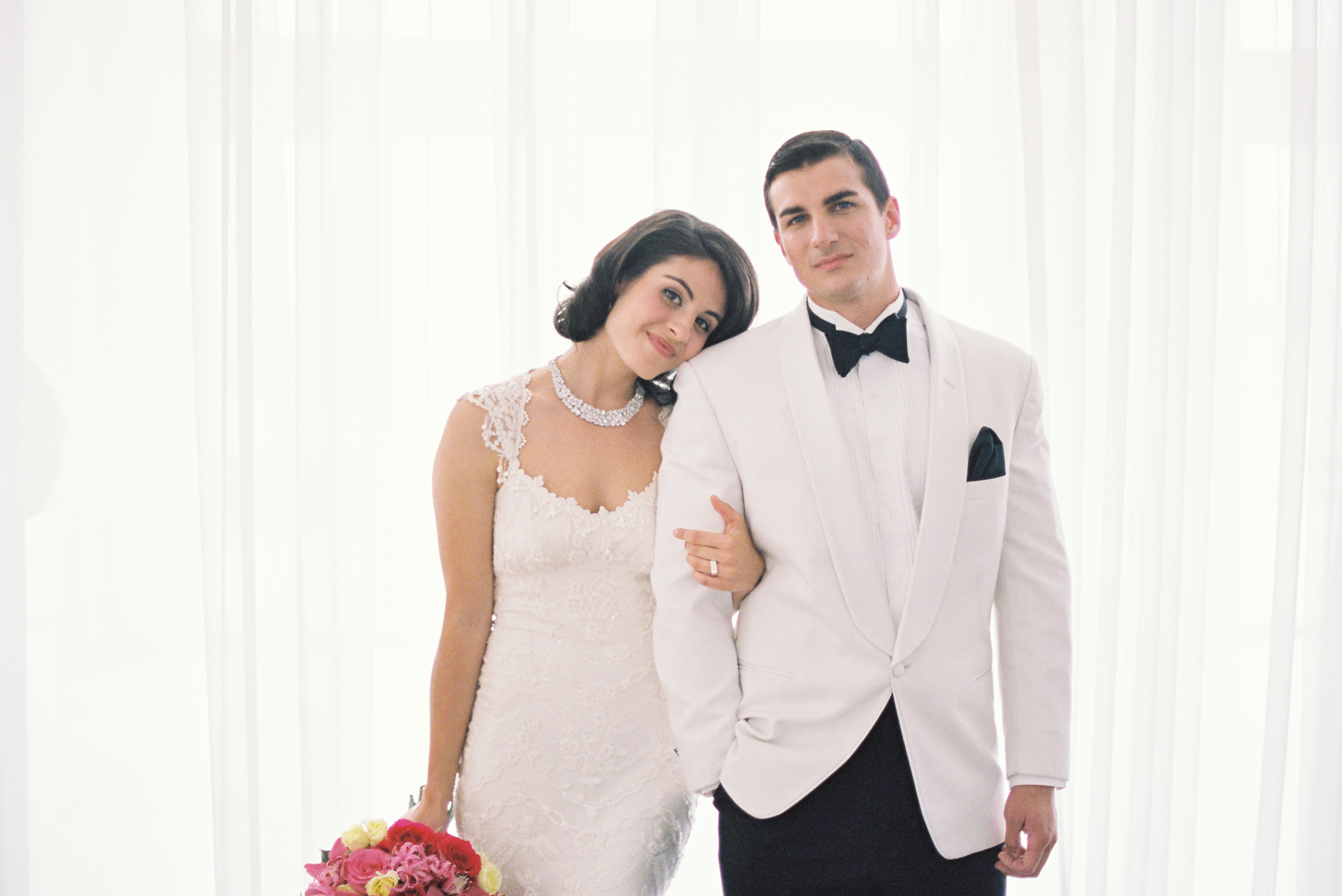 I adore beach weddings and this mod Destination I Do wedding shoot is no exception with its amazing beach wedding style! The images do a perfect job of showcasing the playful dynamic between the couple and Desiree Spinner planned and designed the shoot flawlessly! How gorgeous is the bride’s lace dress? And the details on the back of it are to die for! I love that she incorporates two dresses into the wedding day with that cute shorter, vintage dress on the beach! It’s a great solution if you’re having trouble choosing between a semi-formal, vintage dress and a more formal gown. Keeping with the 60’s glam, the circular motif shines through from the table linens and ghost chairs, to the gorgeous pink and silver cake. The ombre centerpieces and bouquets are such a stunning touch and I love the stationery by Cherish Paperie as well! Oh, and who doesn’t love a dapper James Bond style groom drinking a martini? This couple was so stylish and adorable that Destination I Do magazine even decided to use it for their cover shot on the newest issue!