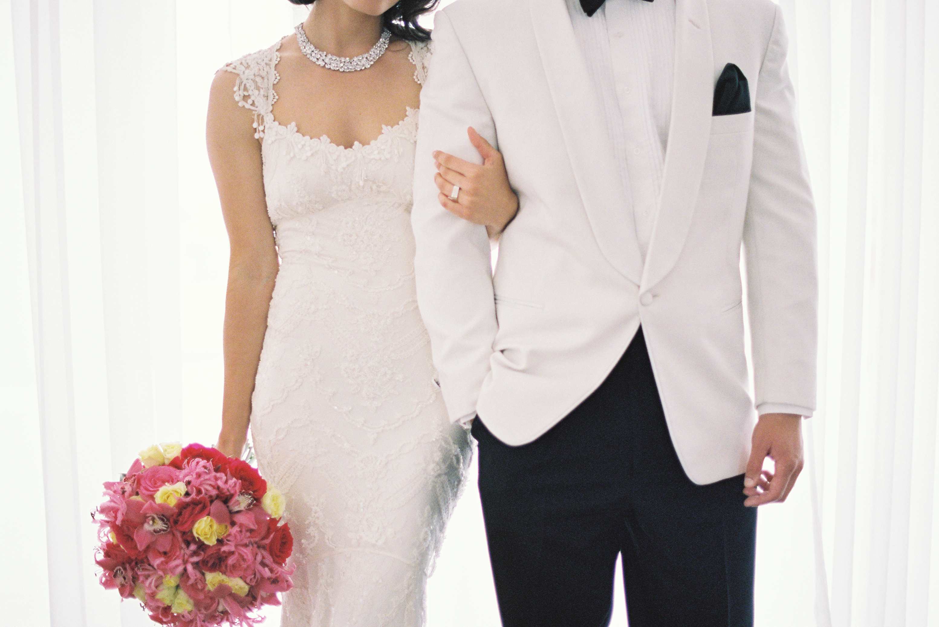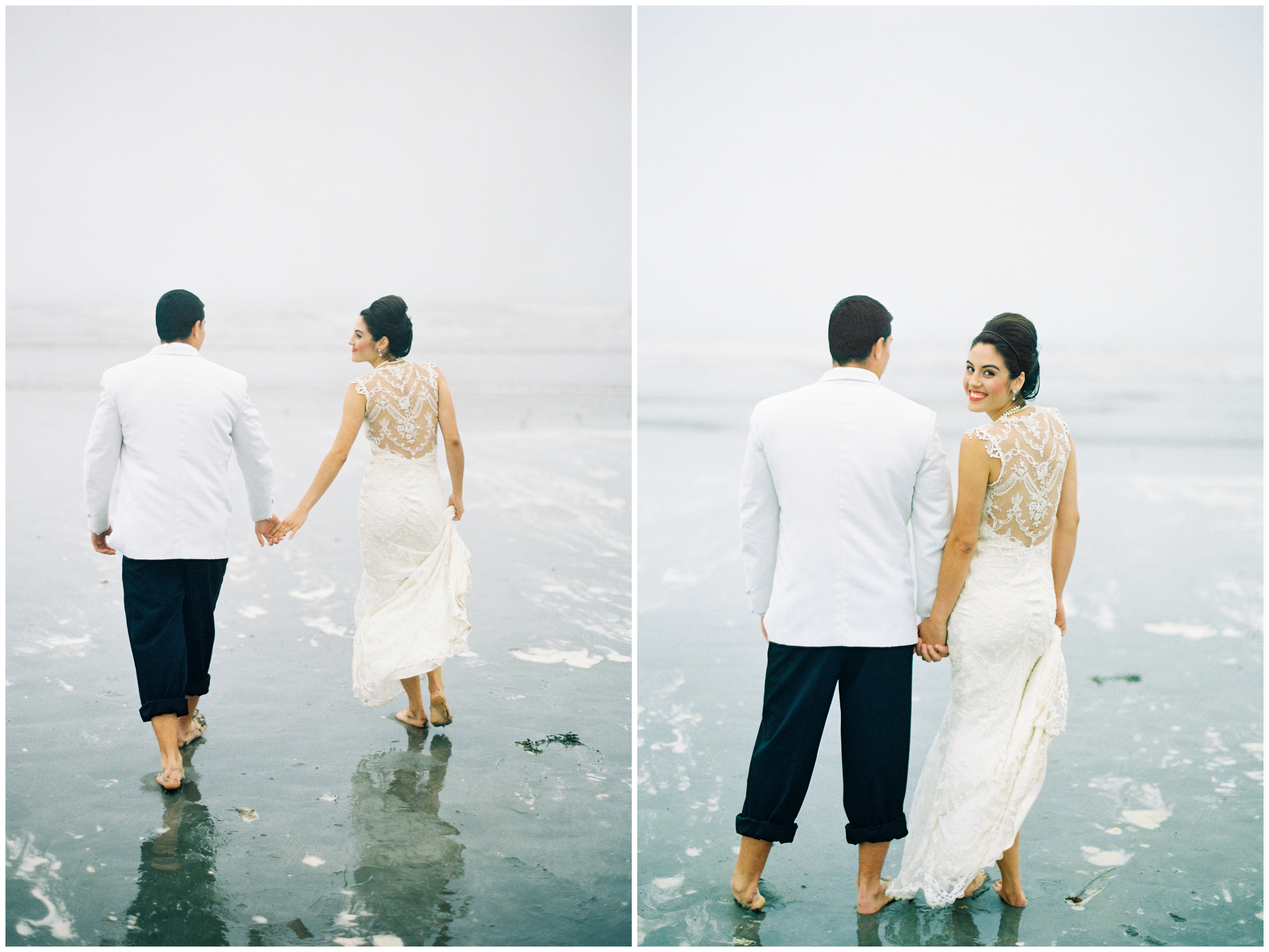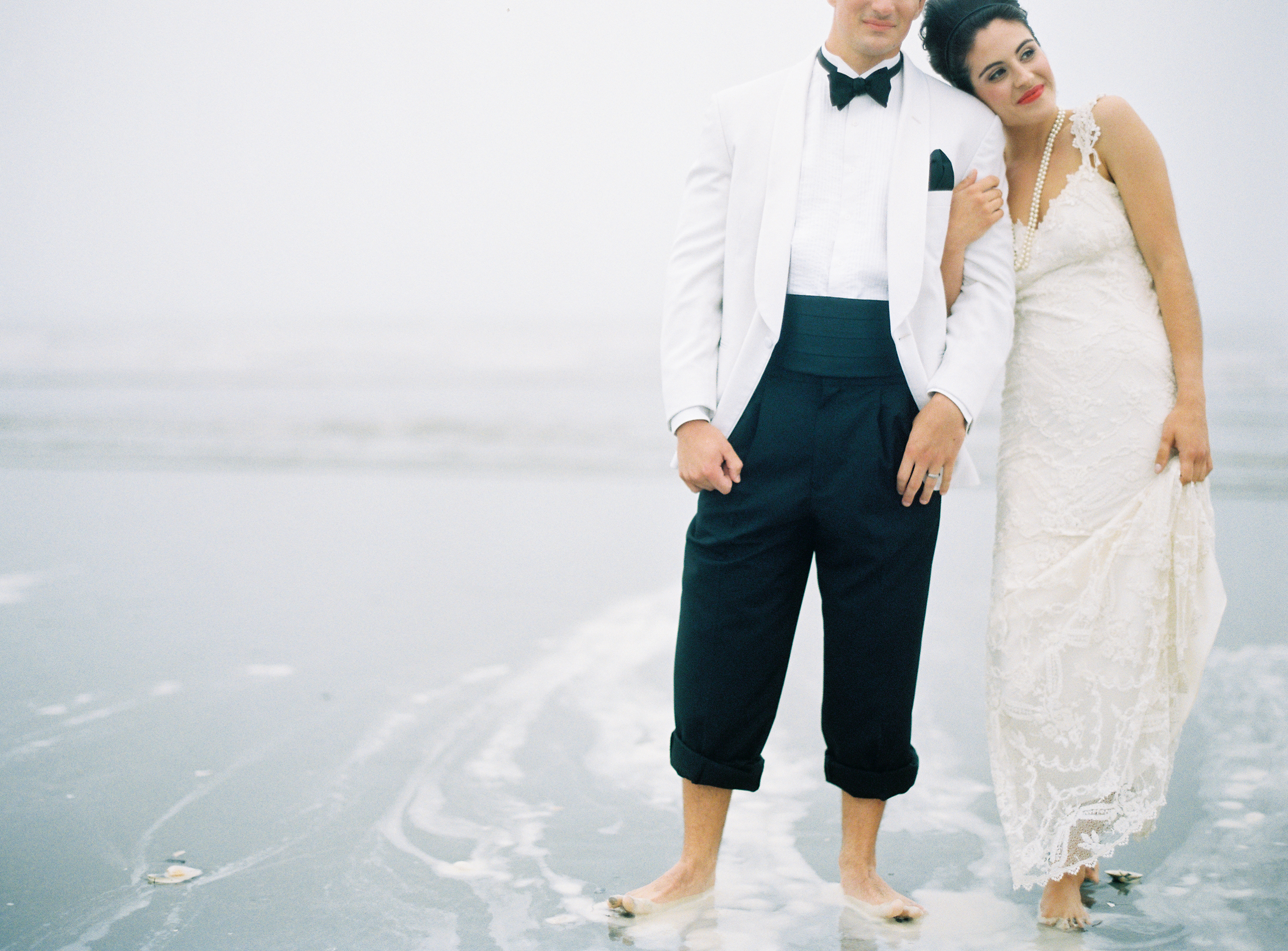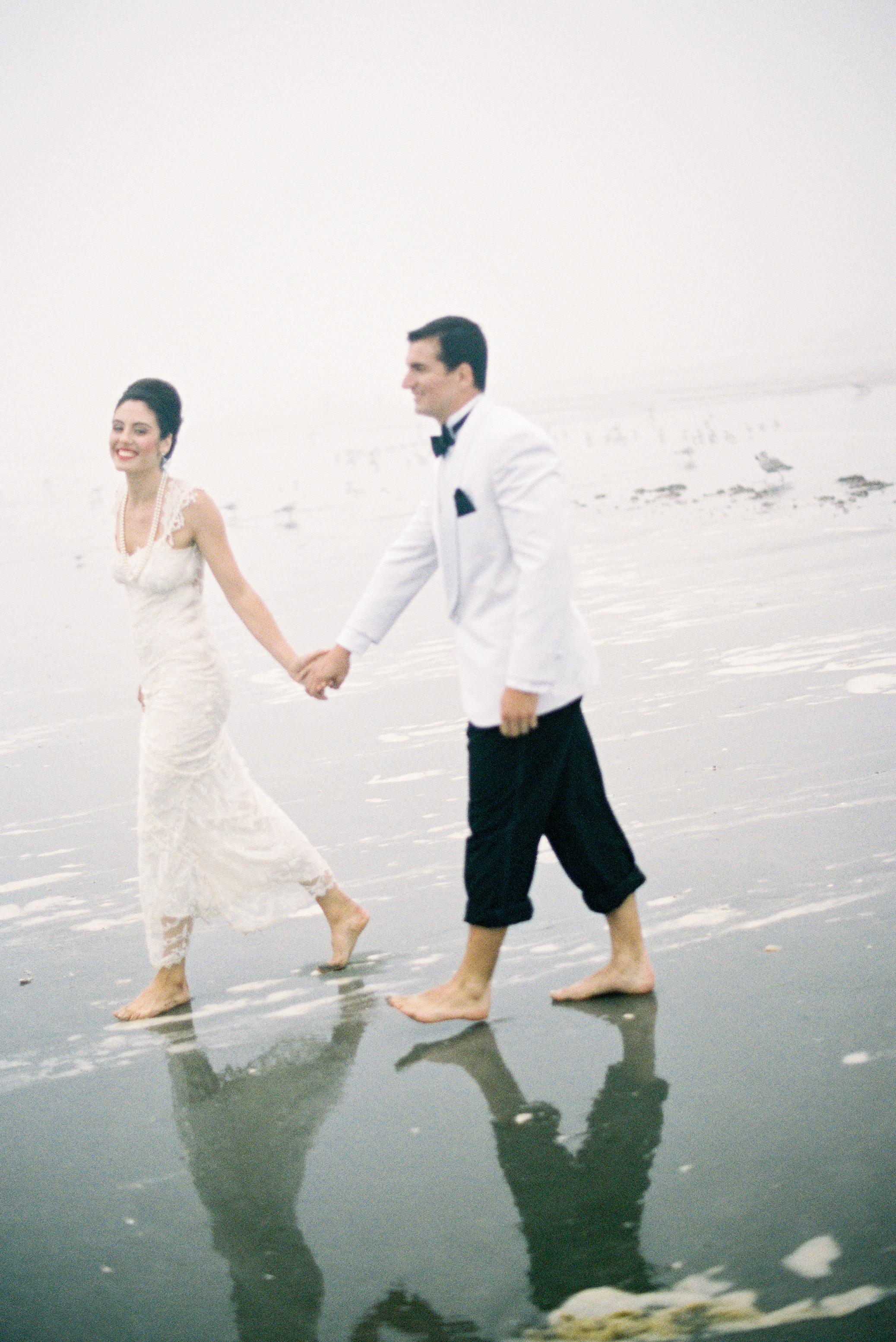 I adore beach weddings and this mod Destination I Do wedding shoot is no exception with its amazing beach wedding style! The images do a perfect job of showcasing the playful dynamic between the couple and Desiree Spinner planned and designed the shoot flawlessly! How gorgeous is the bride’s lace dress? And the details on the back of it are to die for! I love that she incorporates two dresses into the wedding day with that cute shorter, vintage dress on the beach! It’s a great solution if you’re having trouble choosing between a semi-formal, vintage dress and a more formal gown. Keeping with the 60’s glam, the circular motif shines through from the table linens and ghost chairs, to the gorgeous pink and silver cake. The ombre centerpieces and bouquets are such a stunning touch and I love the stationery by Cherish Paperie as well! Oh, and who doesn’t love a dapper James Bond style groom drinking a martini? This couple was so stylish and adorable that Destination I Do magazine even decided to use it for their cover shot on the newest issue!