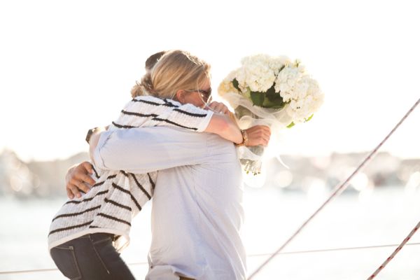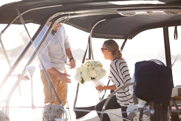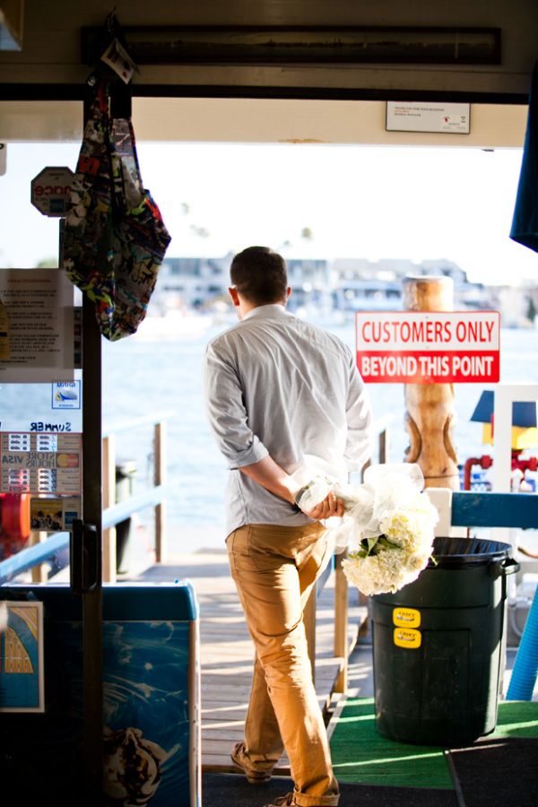 It’s been a while since we’ve featured a proposal, but we have a super cute one to share today!! Aaron dropped down on both knees to propose to his beautiful (now) fiancée on a boat! We thought it was super sweet that he decided to have this special moment captured by Aaron Shintaku… we seriously can’t help but smile seeing him nervously get on the boat. With a buttery cream bouquet by our fave, Carissa of JL Designs, and a custom Rock For Her ring in hand, Aaron finally popped the big question! How cute and excited does his bride-to-be look? SO adorable!
