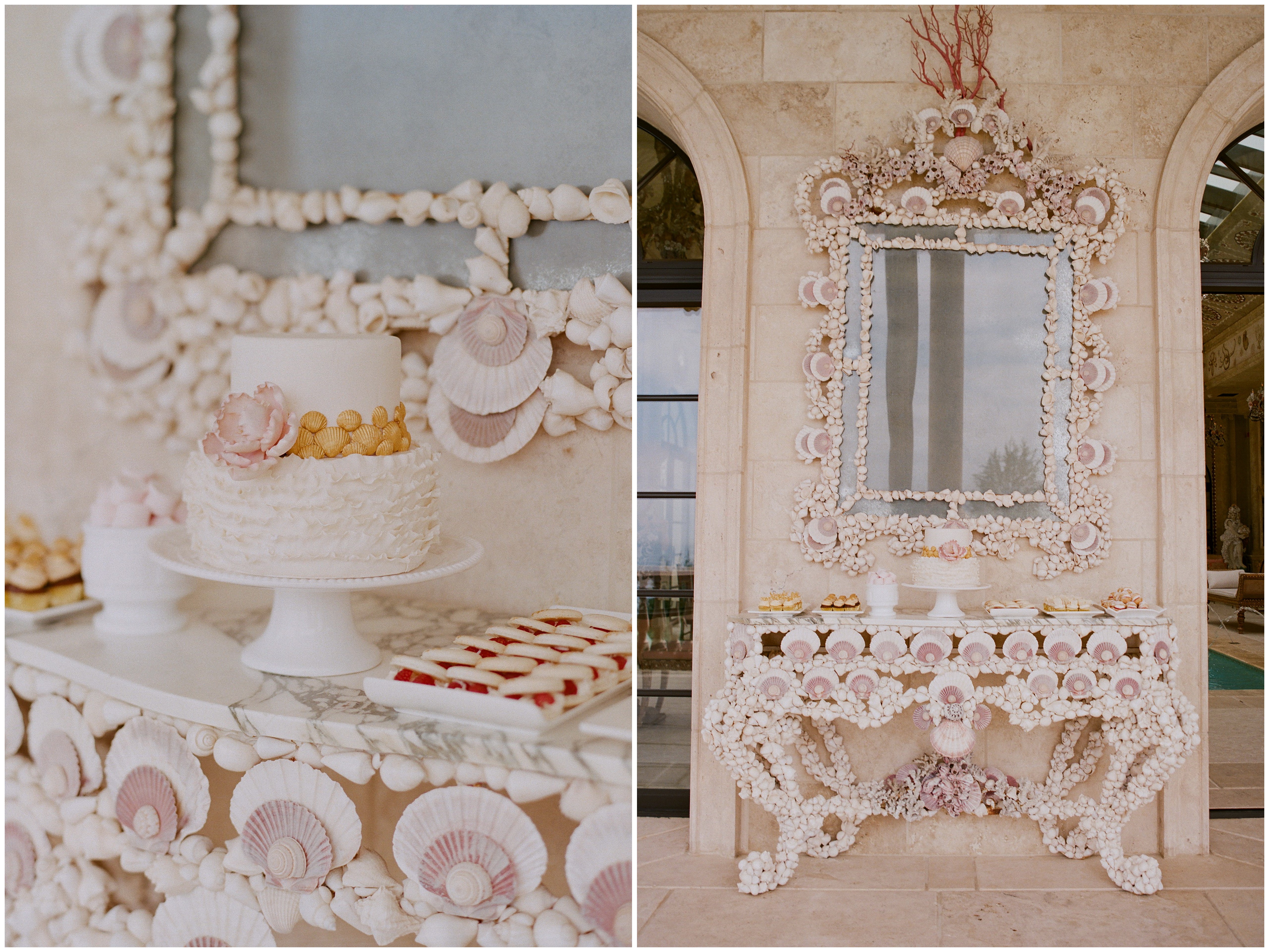 We are so inspired today by this gorgeous blush and ivory seaside bridal shower! Shot by the amazing Elizabeth Messina, this intimate bridal shower took place at a private estate in Malibu this summer! It didn’t take much to decorate this amazing room, the seashells and chandeliers are enough, but we at Be Inspired loved contributing to make it even a more beautiful day. JL Designs did an amazing job on the florals and Momental Designs created amazing stationery as well. Guests were also amazed by the Ka-Mil-Yin scent bar and delicious desserts by Cupcakes Couture of Manhattan Beach! You can see this amazing bridal shower in the latest issue of C Weddings Magazine!