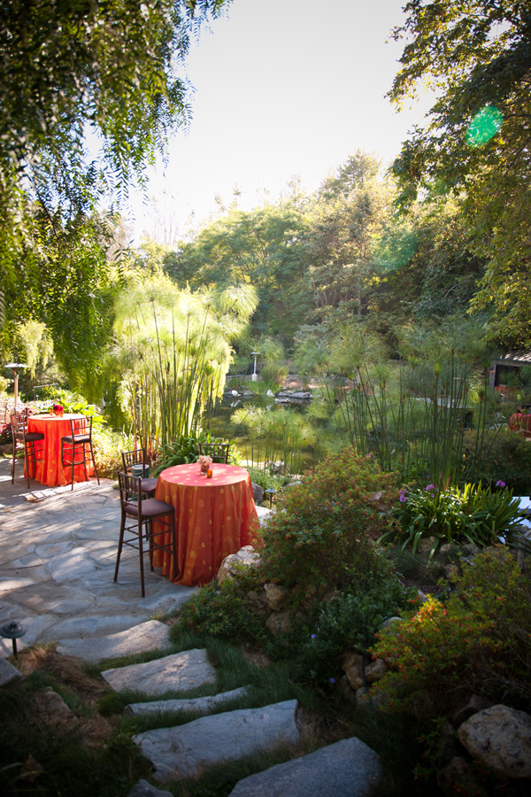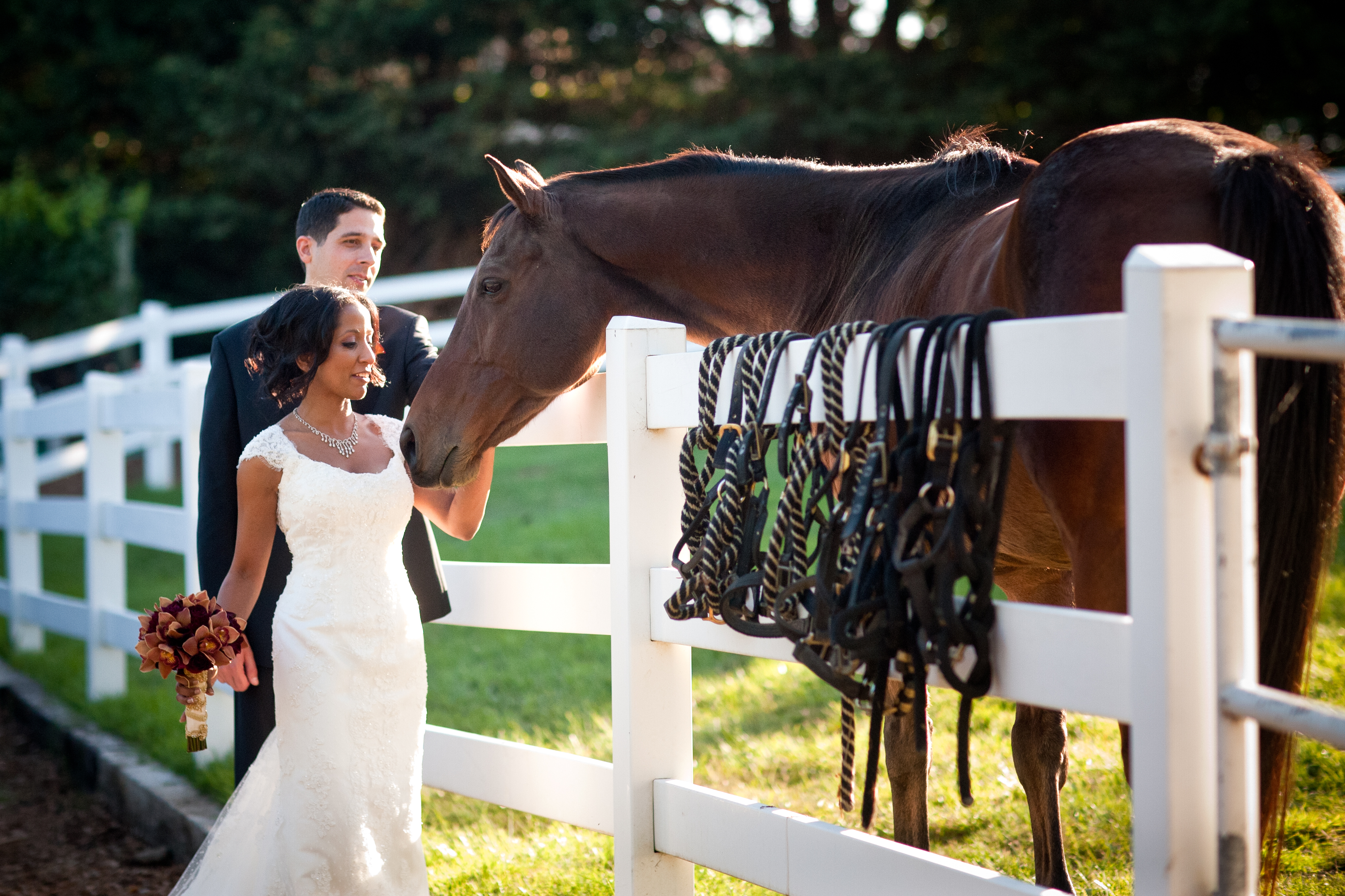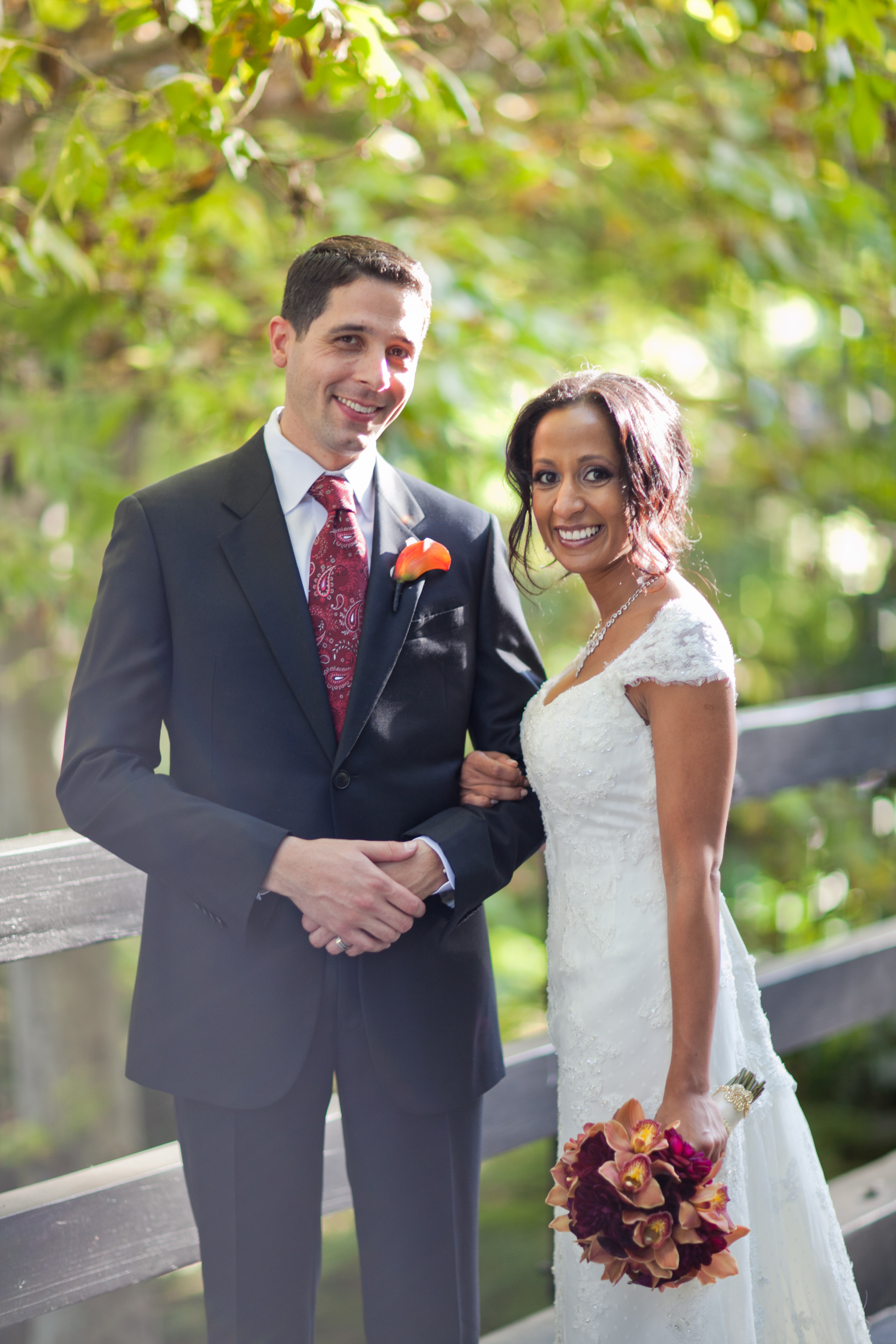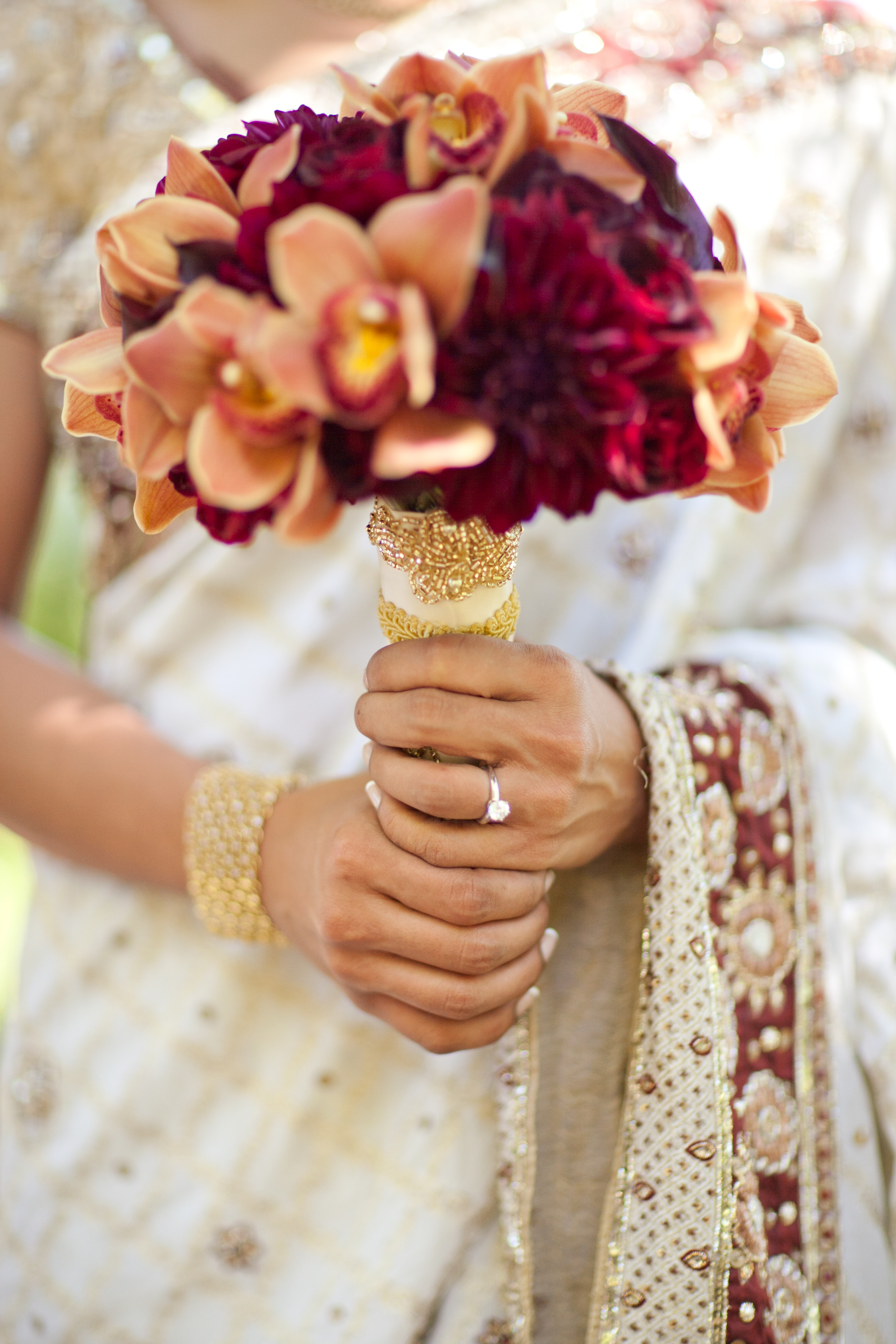 The Church Estate is absolutely stunning and so diverse… It has everything you could want – trees, grassy fields, a wooden bridge, a pasture of adorable horses and a tropical water area. What an amazing place to get married! JL Designs created the paisley gold and bold red aisle treatment and the unique bouquets – each bridesmaid’s was made with a different type of flower – calla lilies, orchids, sweet peas, and dahlia. Perfection.