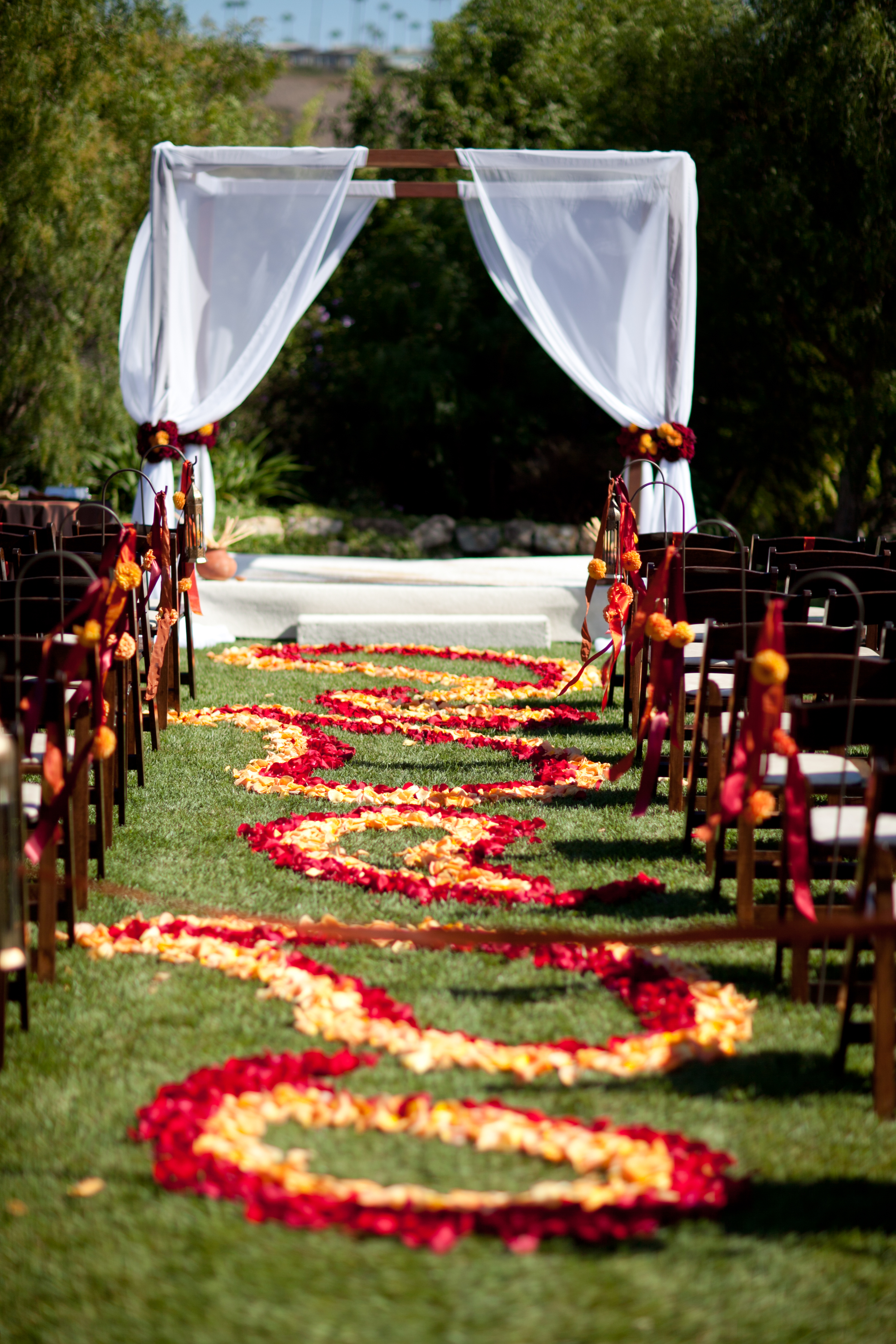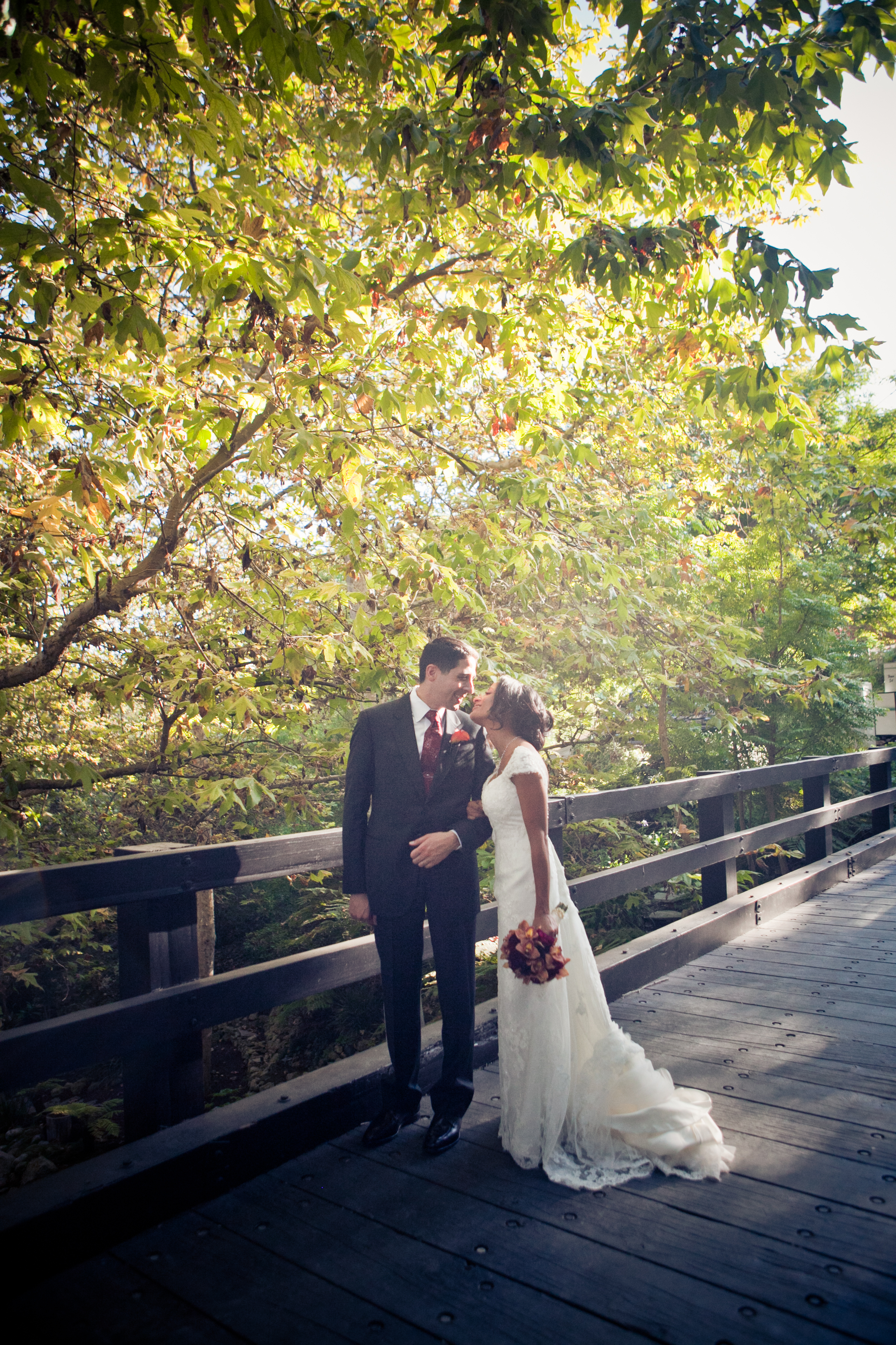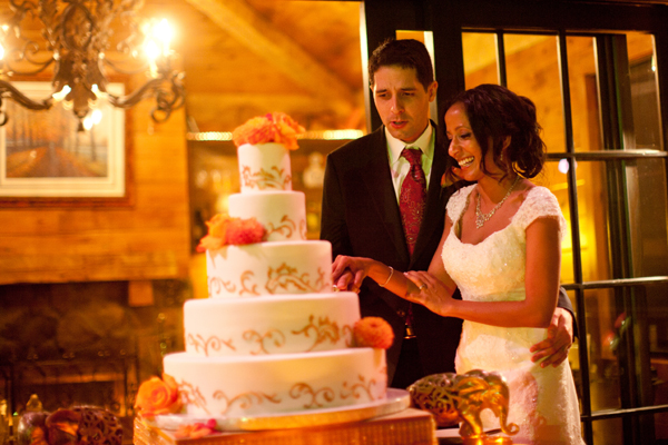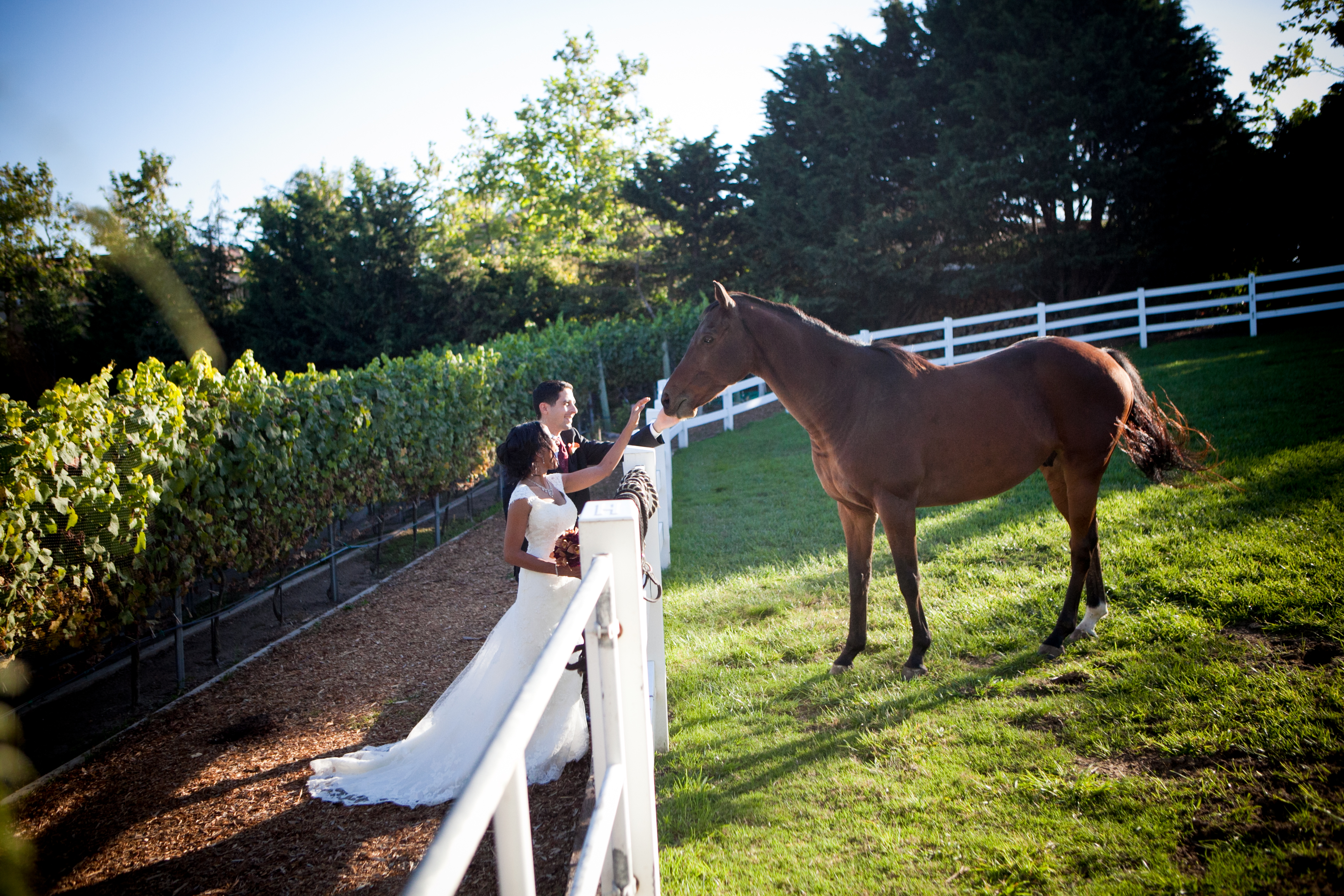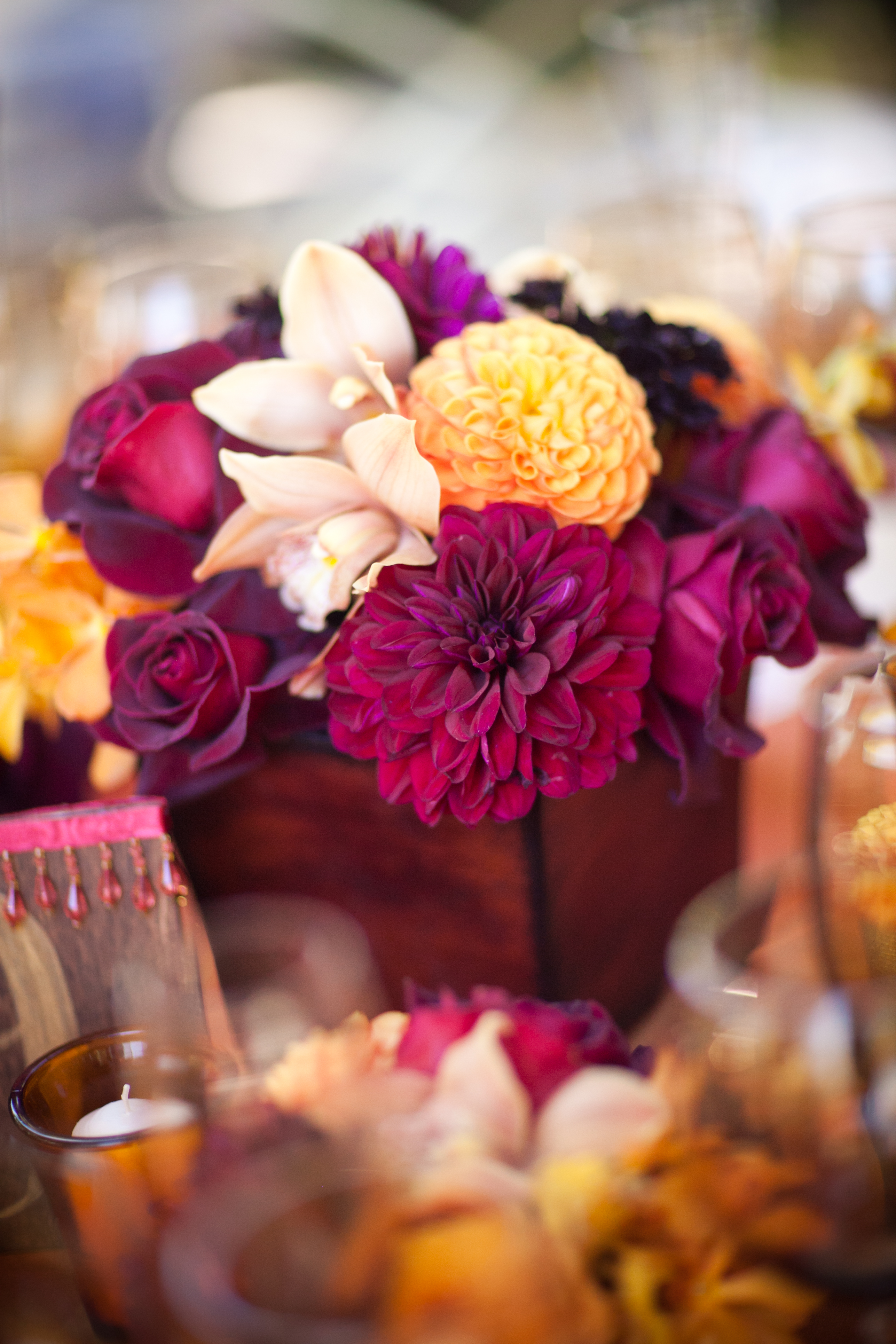 The Church Estate is absolutely stunning and so diverse… It has everything you could want – trees, grassy fields, a wooden bridge, a pasture of adorable horses and a tropical water area. What an amazing place to get married! JL Designs created the paisley gold and bold red aisle treatment and the unique bouquets – each bridesmaid’s was made with a different type of flower – calla lilies, orchids, sweet peas, and dahlia. Perfection.
