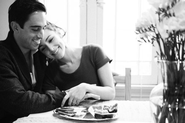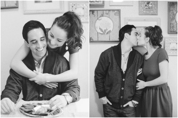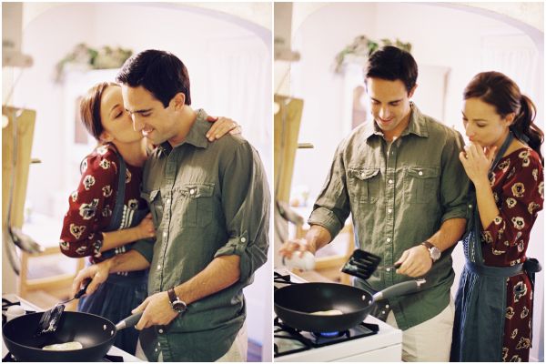 An engagement shoot is the perfect way to express who a couple is together and what they love! I find this couple’s idea to do a cozy “Day in the Life” engagement shoot to be adorable! It’s really about their love for each other and how the simple things they do on a day to day basis really make the foundation of their relationship strong! From cooking to scrabble, lounging at home and a walk in the rain, this shoot, captured by Braedon Flynn Photography, is less about the activity and more about the fun they are having in each other’s company. And we definitely love anytime a couple works in cute photos with umbrellas and boots!