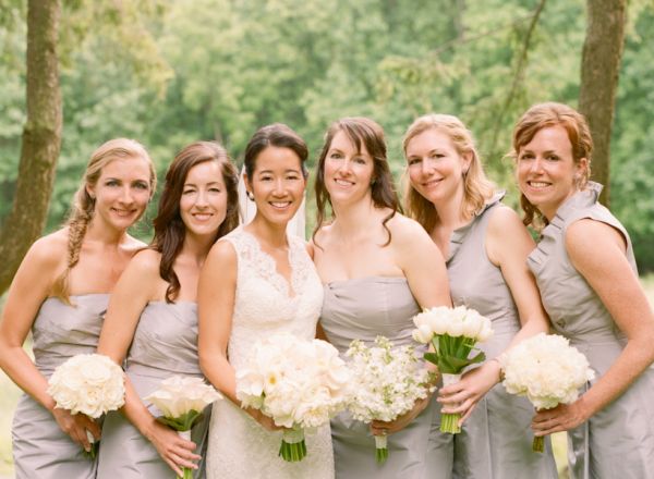 Love that the bridesmaid dresses are all the same color and material but two different styles!  Great way to do the mix and match trend while still staying consistent.