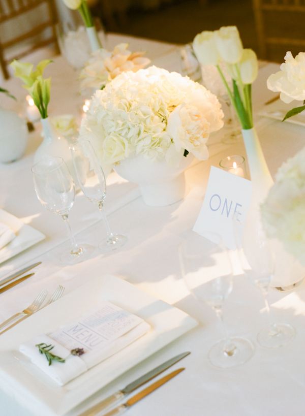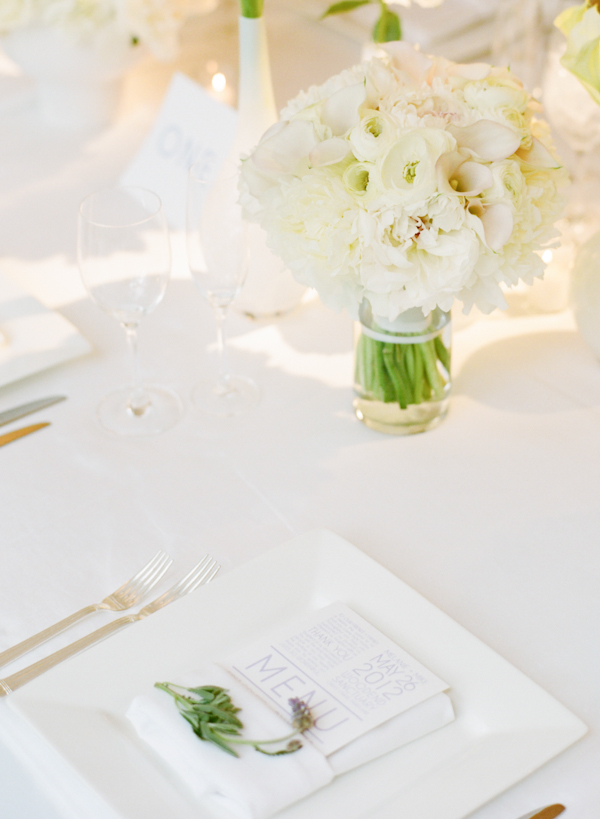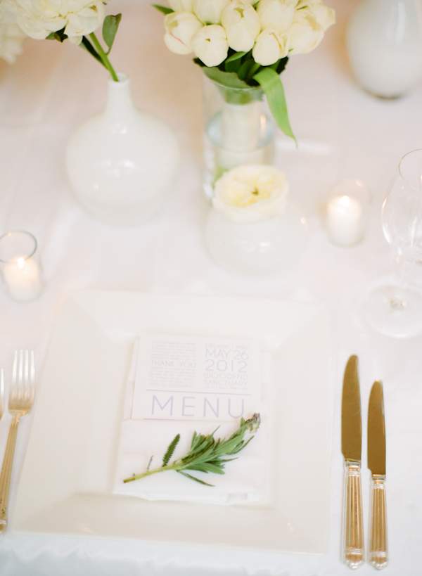 The sprig on the napkin is the perfect complement of color for this minimalist table setting!