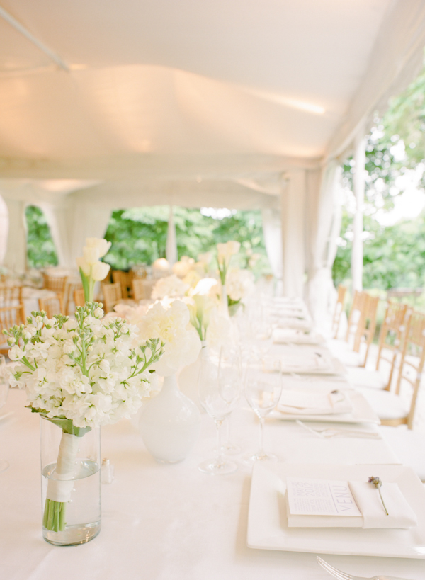 There’s something so enchanting about the color white…it’s fresh, clean, and has such a pure feeling to it.  I think that’s why we love this wedding by A Simply Chic Event so much!  Simplicity was the key and with a location this gorgeous, it did most of the talking anyway!  We love how the ceremony seems to be nestled into a secluded forest, a perfect little escape and moment of privacy with just their closest friends and family watching.  The bride’s style is impeccable with a fitted lace gown and the classic, simple veil in her chic updo.  Our favorite part though definitely has to be the reception.  The tables are covered in white with white napkins and adornments and the stems on the flowers as the only pop of color.  This is a wedding that will never go out of style!
