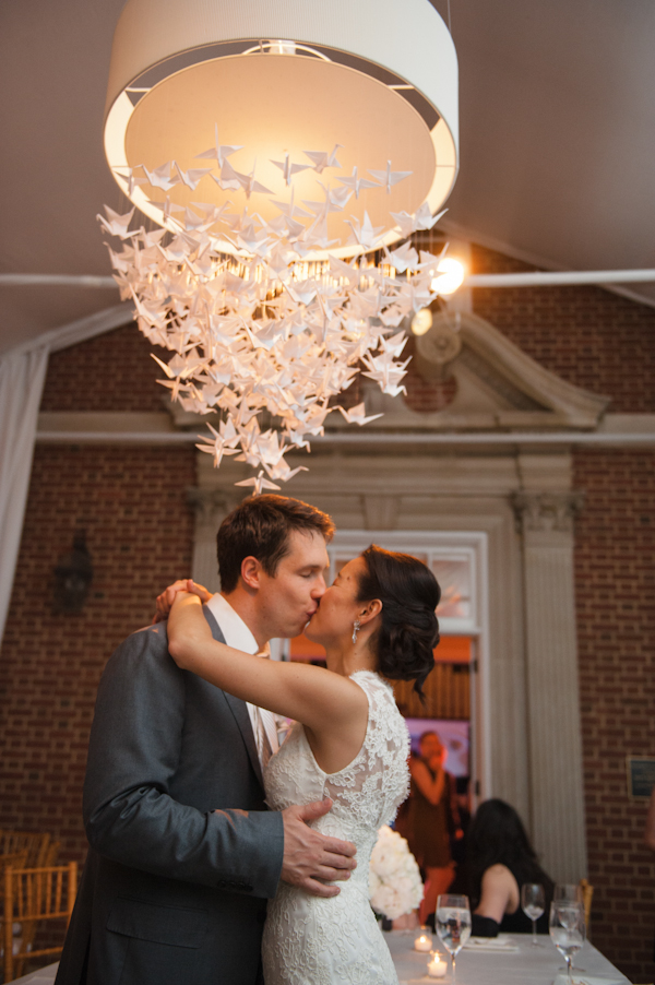 They incorporated the “1000 cranes” tradition into the reception by hanging them from chandeliers!
