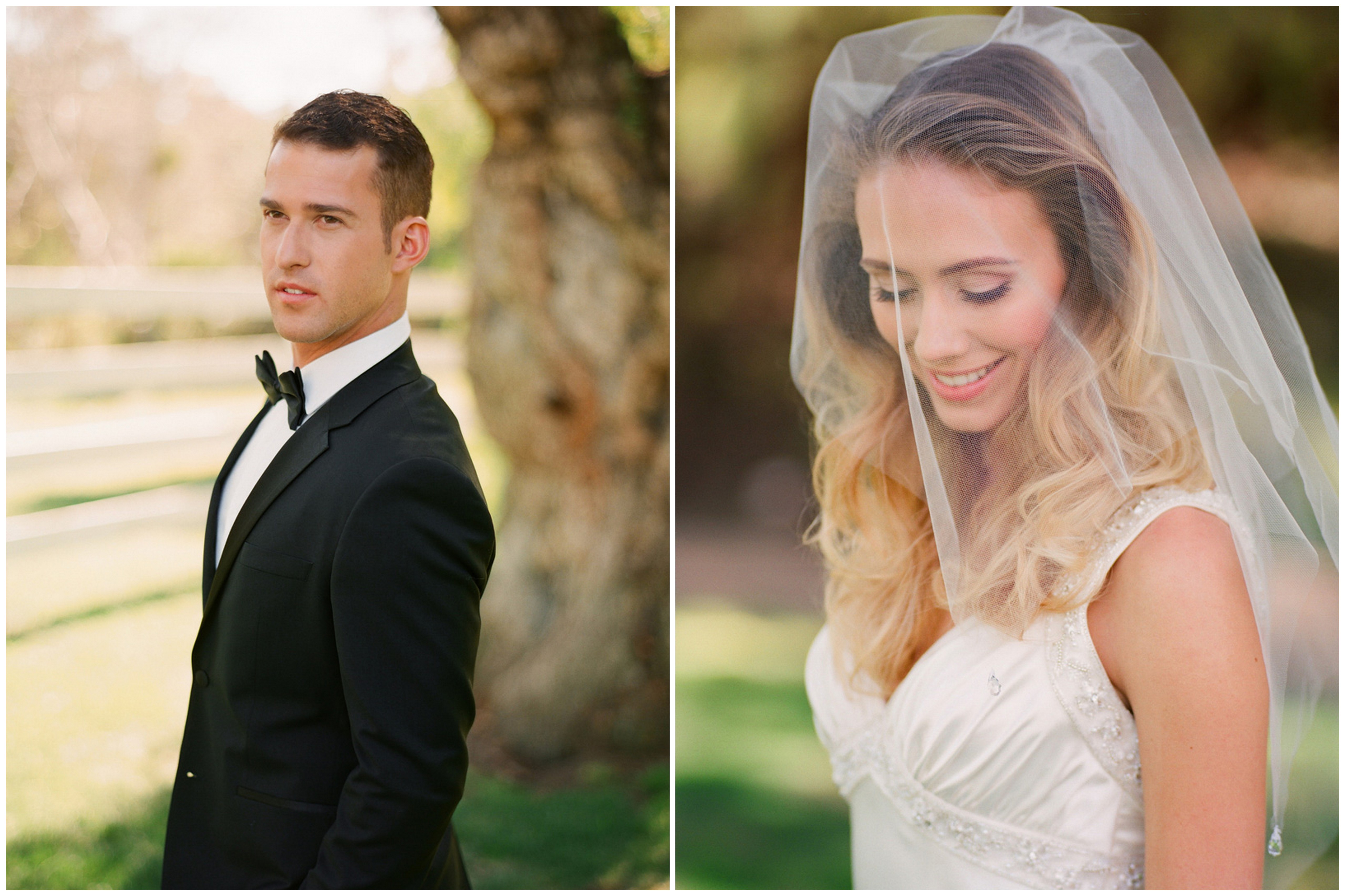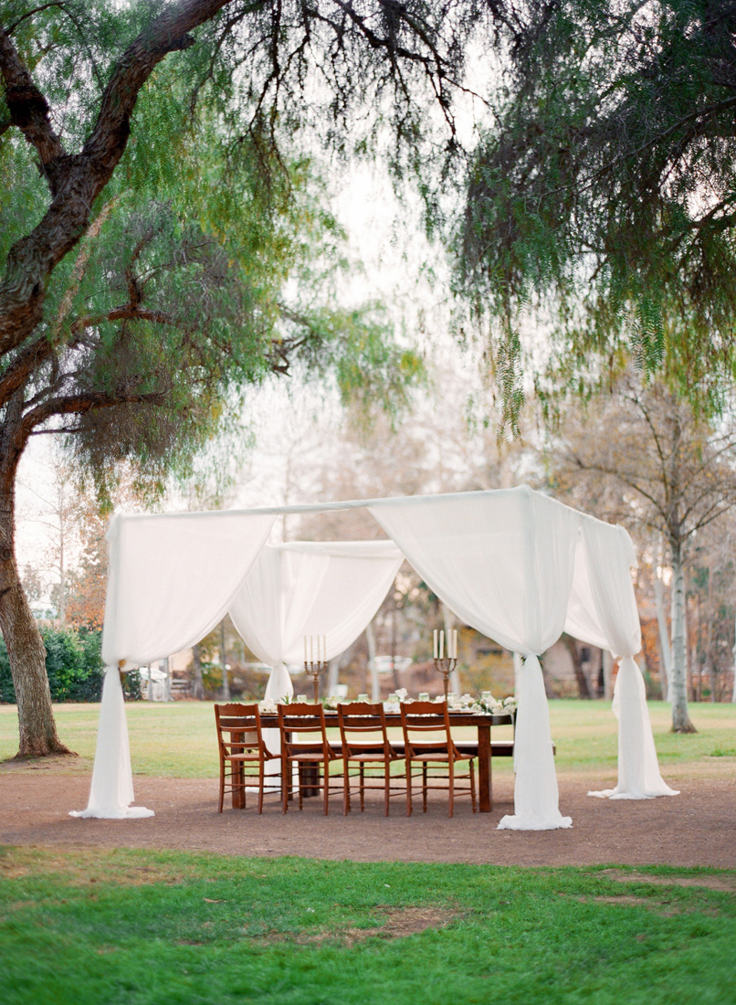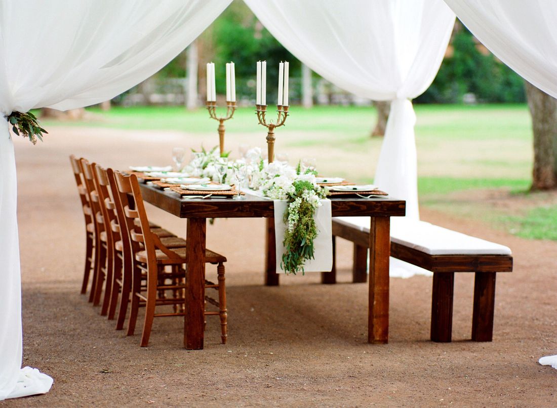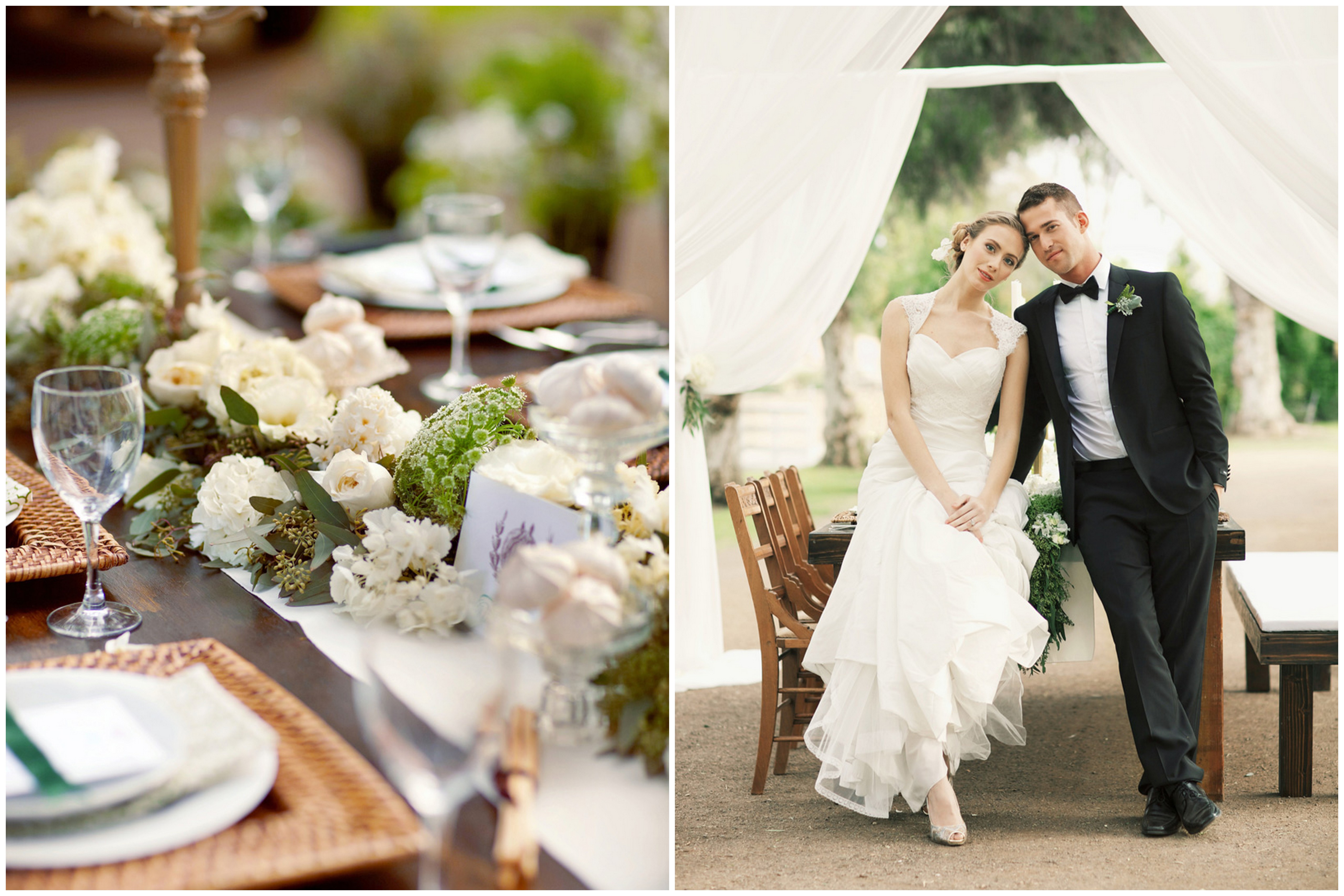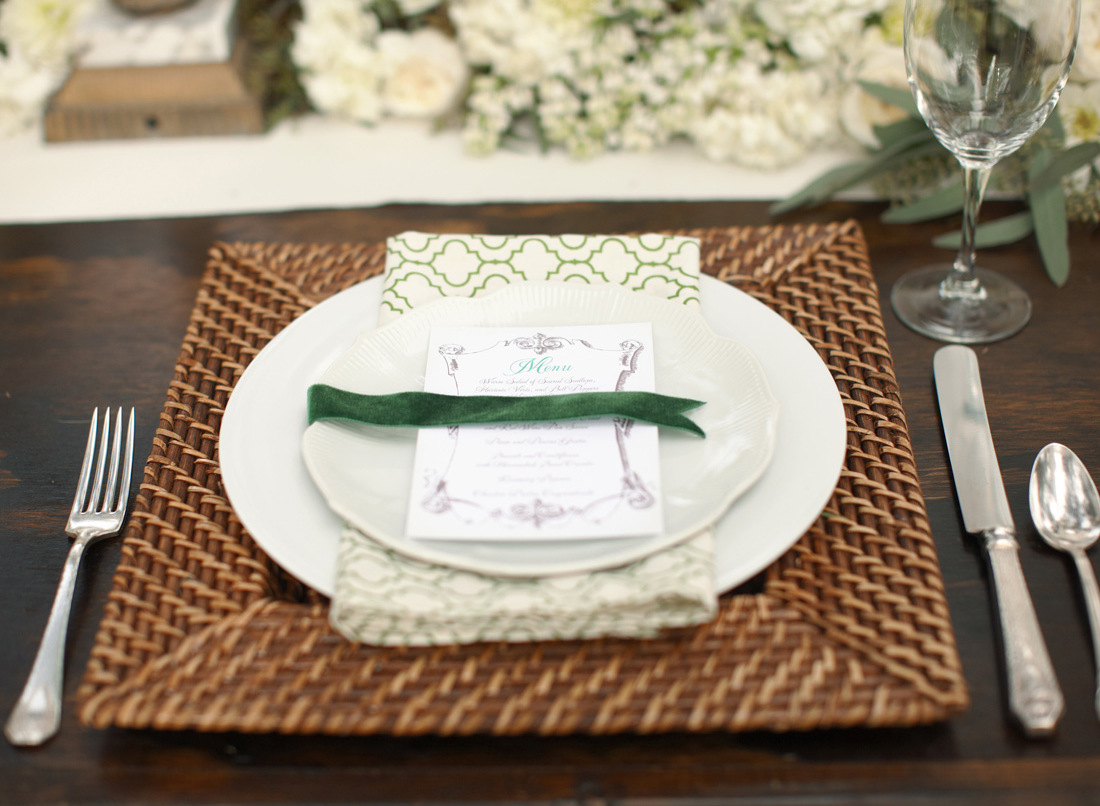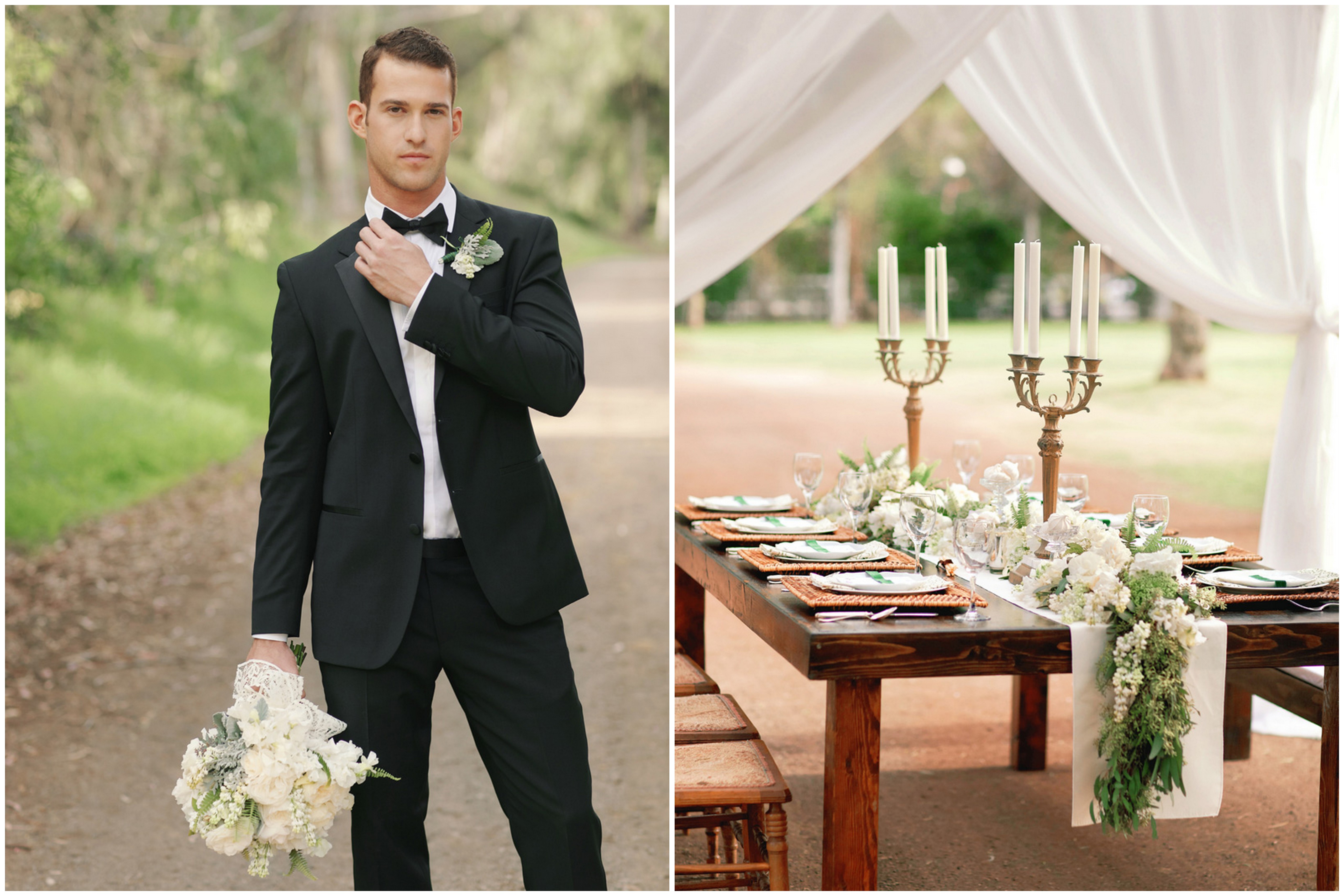 There is so much inspiration in this gorgeous equestrian garden wedding shoot that was featured in Utterly Engaged! Natural flowers combined with equestrian elements celebrate the surrounding earthy, green landscape. The rustic tablescape blends masculine elements of deep wood and clean lines with elegant flowing drapery and romantic candelabras. We love the flowers designed by Oak and the Owl, especially the bridal bouquet of garden roses, sweet pea and astilbe. This romantic shoot was planned and designed by Twine Events, who so perfectly created this timeless style. I love the green accents on the stationery, and how creative are the name cards tied into the centerpiece! The Bay horse looks dashing with his green and white wreath, and brings a touch of whimsy to this classic shoot.