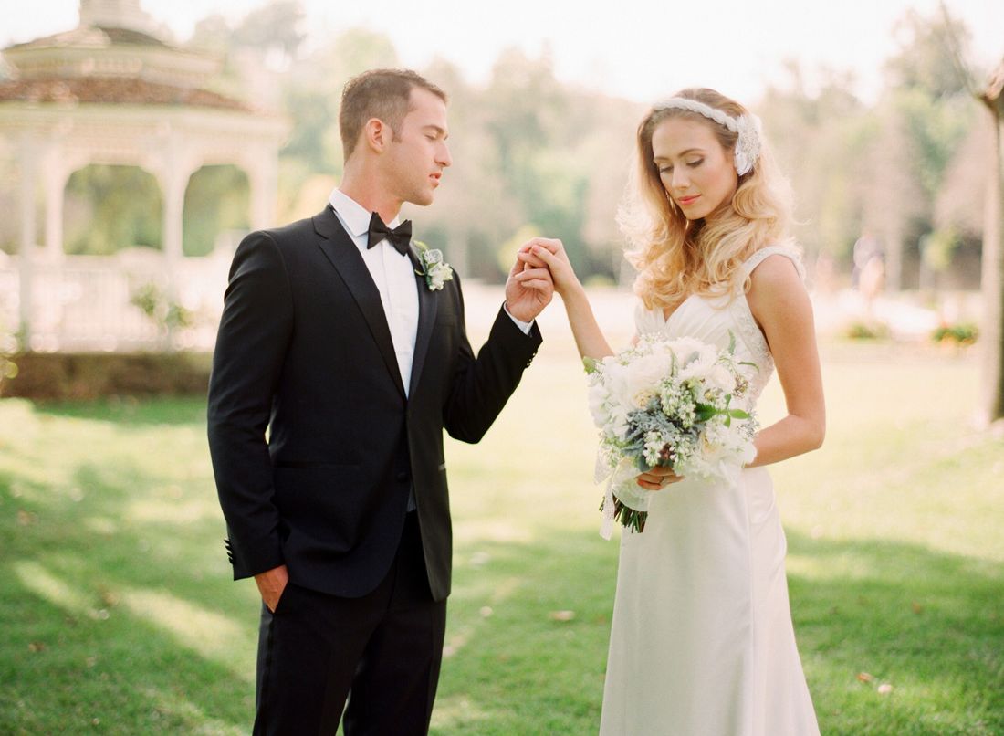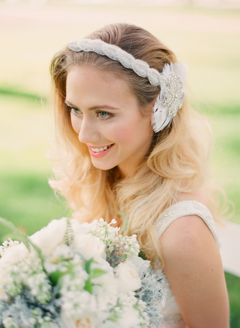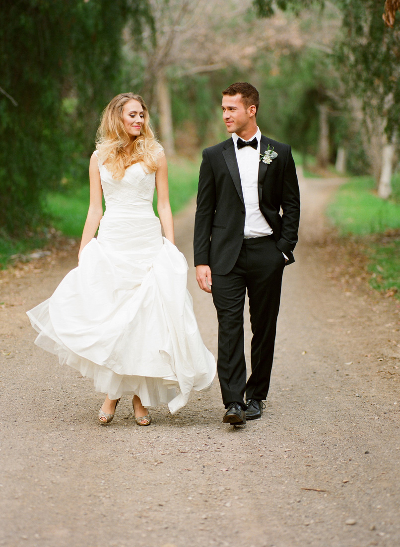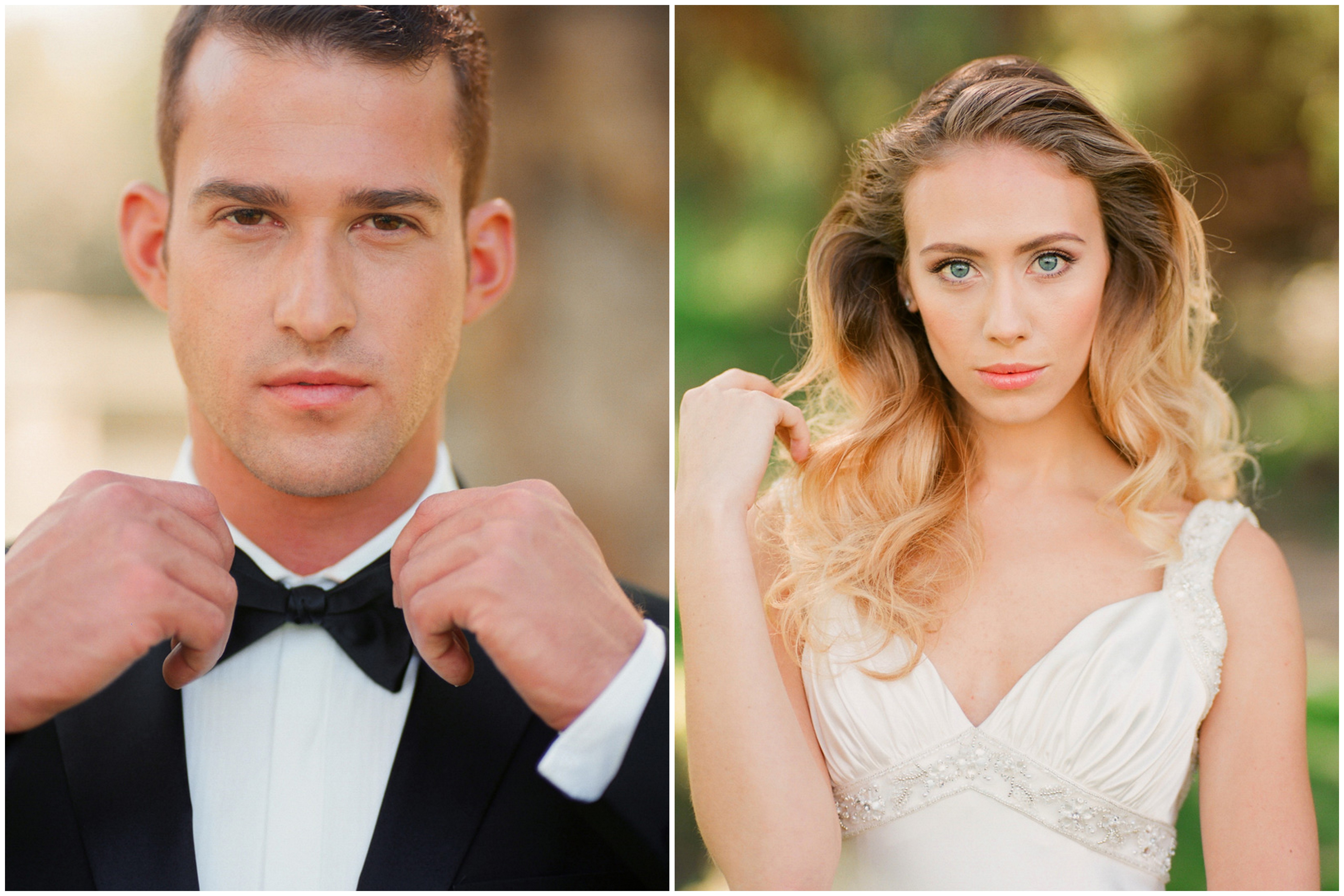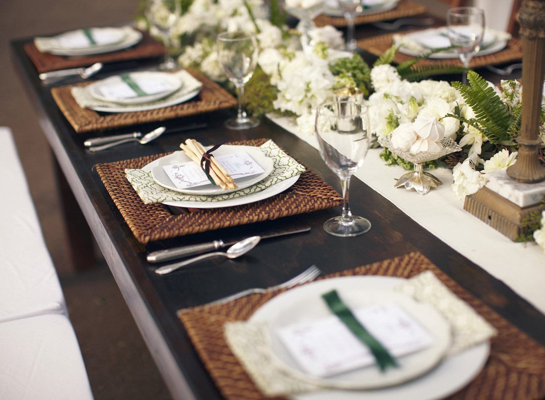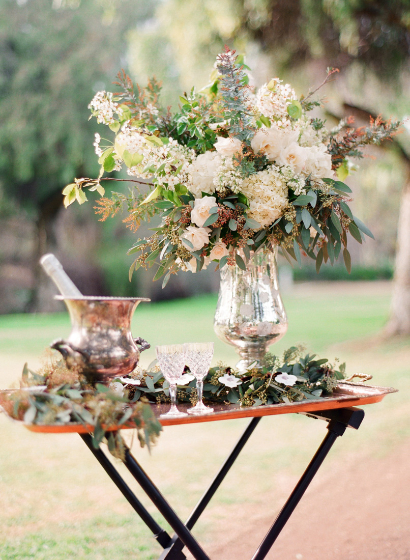There is so much inspiration in this gorgeous equestrian garden wedding shoot that was featured in Utterly Engaged! Natural flowers combined with equestrian elements celebrate the surrounding earthy, green landscape. The rustic tablescape blends masculine elements of deep wood and clean lines with elegant flowing drapery and romantic candelabras. We love the flowers designed by Oak and the Owl, especially the bridal bouquet of garden roses, sweet pea and astilbe. This romantic shoot was planned and designed by Twine Events, who so perfectly created this timeless style. I love the green accents on the stationery, and how creative are the name cards tied into the centerpiece! The Bay horse looks dashing with his green and white wreath, and brings a touch of whimsy to this classic shoot.