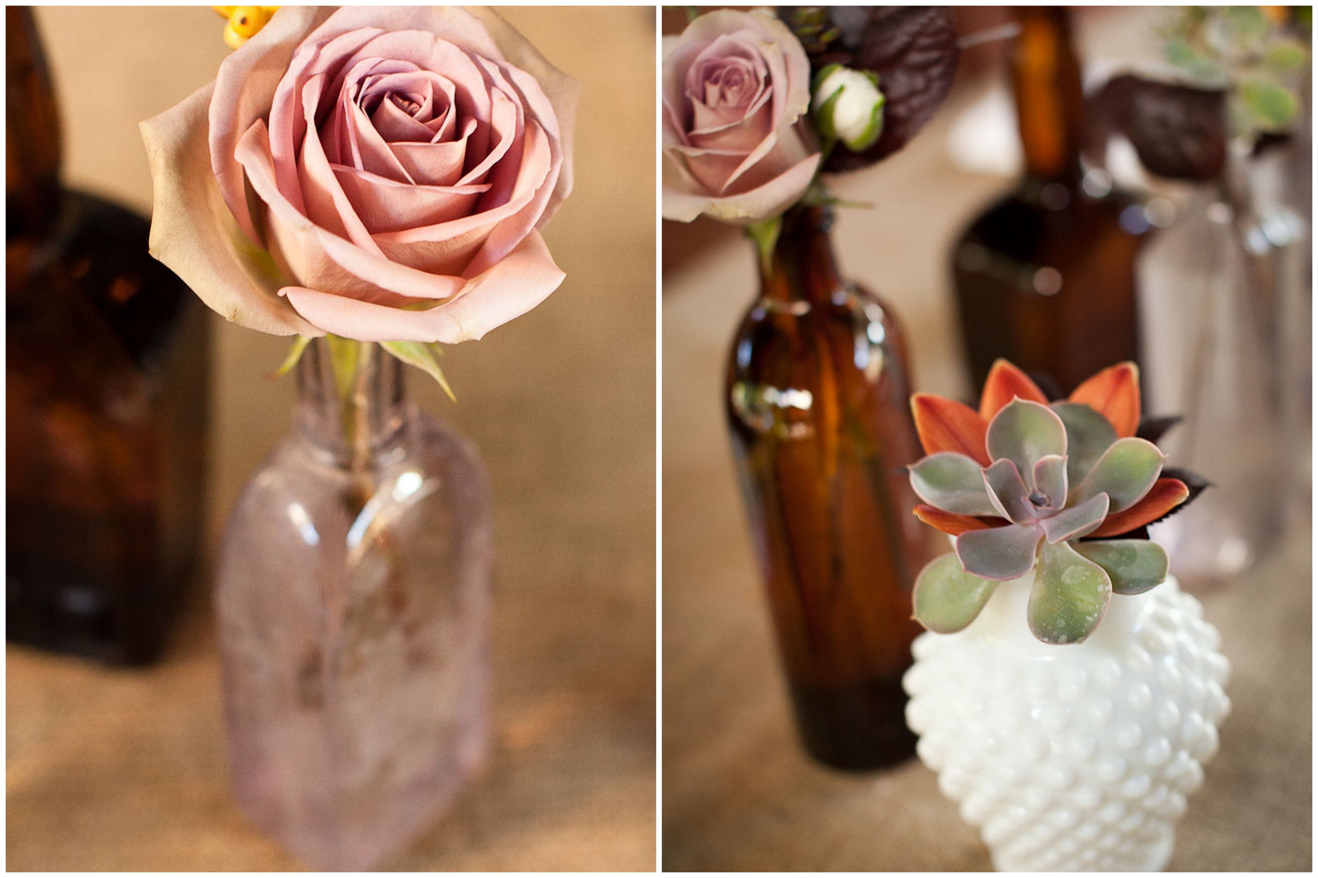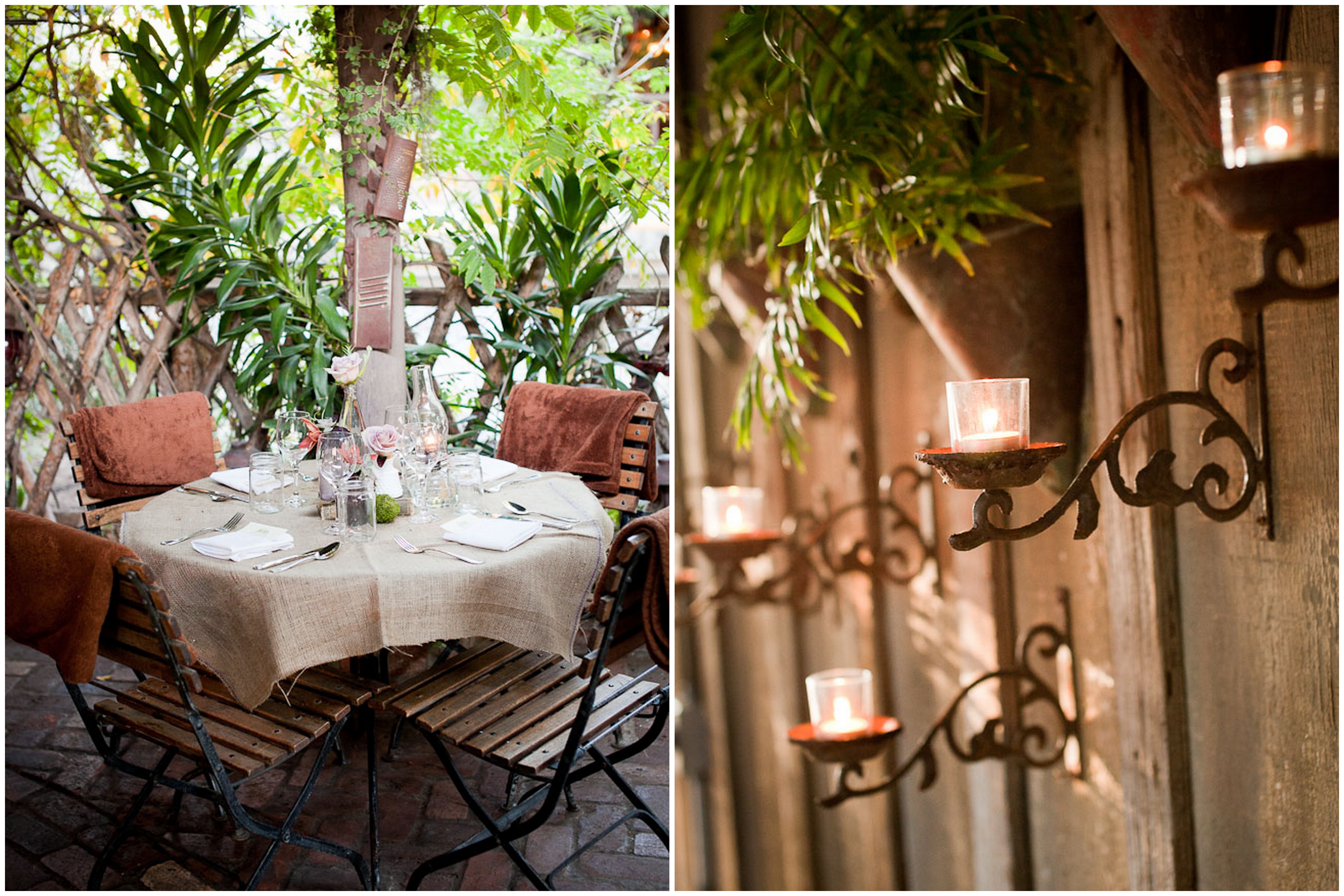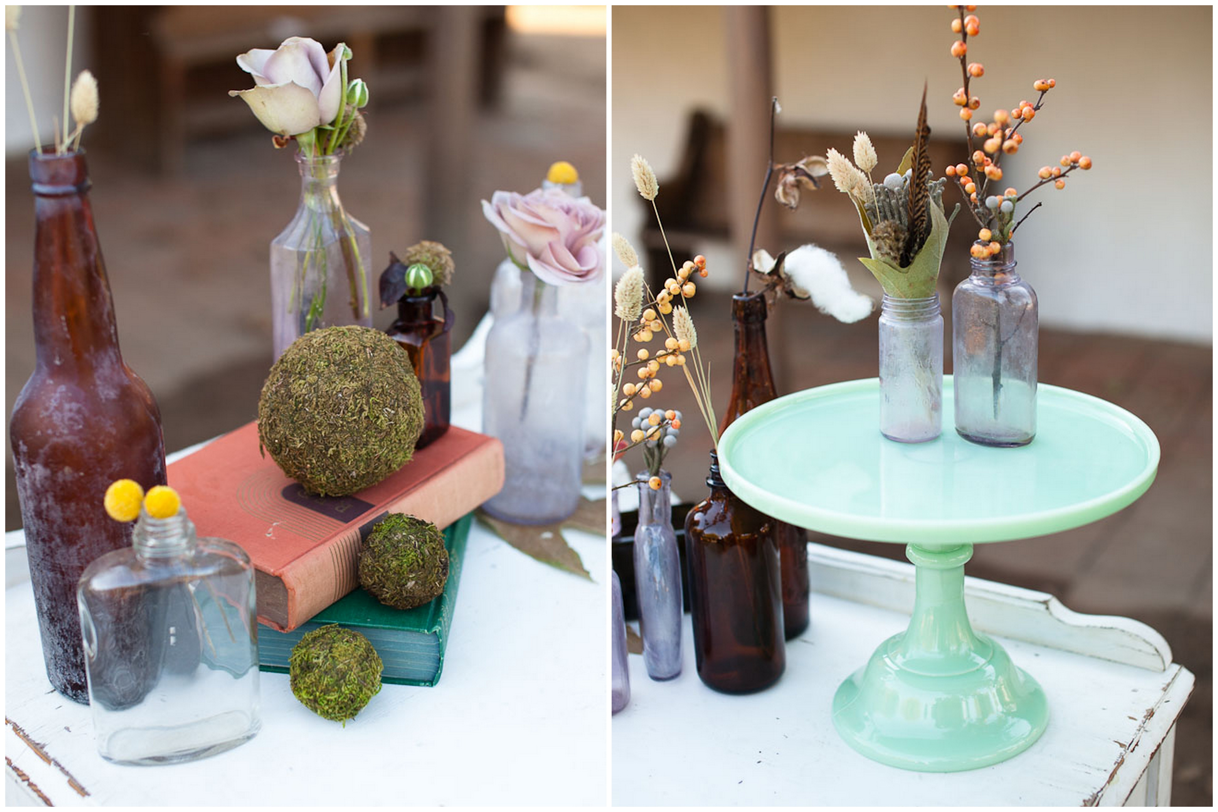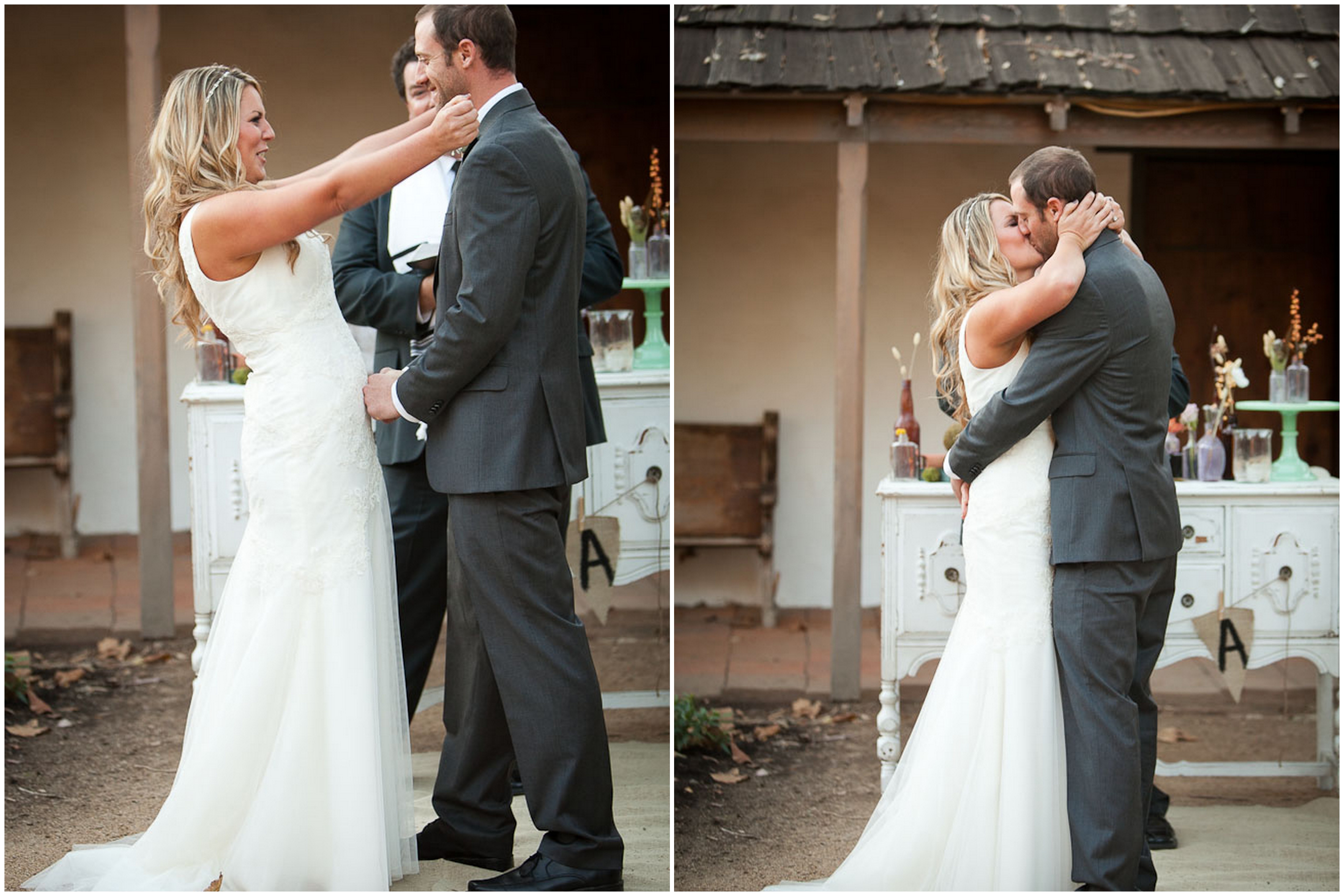 Ashley and Jim were married during an intimate outdoor Southern California wedding ceremony in the historic Los Rio’s District in San Juan Capistrano, surrounded by only 55 of their closest family and friends. With the help of Krista Jon and Archive Vintage Rentals, the simple Los Rio’s street was transformed into a quaint, outdoor wedding venue with the reception only steps away at The Ramos House. Their bridal party was made up of their siblings, and their son Ryder helped hold the “Here Comes The Bride” sign! We love the table centerpieces with mix and match glass vases and simple flowers that blend perfectly with the rustic place settings and mason jars. The cozy reception felt like a family get together, with lots of laughter, hearty home-cooked food and warm candle light.