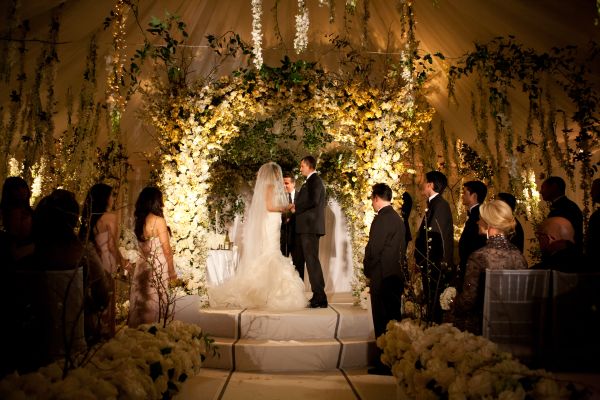 One look at this wedding and you’ll feel as if you’ve stepped into a fairytale!! Planned and coordinated by the talented Mindy Weiss Party Consultants, this glowing ivory celebration at The Beverly Hills Hotel is some serious eye candy! The bride, dressed in Vera Wang, walked down a fluffy rose-studded aisle… so dreamy!!