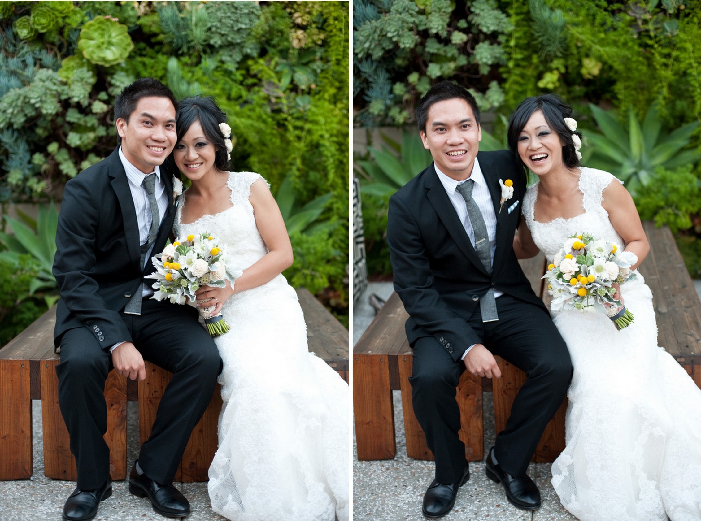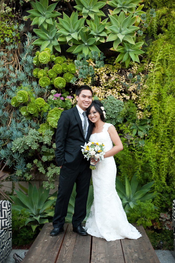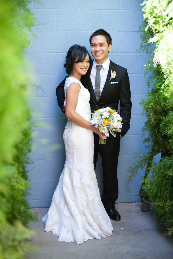 How lovely is this modern Smog Shoppe wedding sent to us by Stephanie Ann Photography?! The succulents and the modern style makes this wedding one cute event. I also LOVE the balsa wood flowers and the classic lace gown… this bride has it going on!  Here is what Stephanie Ann Photography had to say about this wedding: