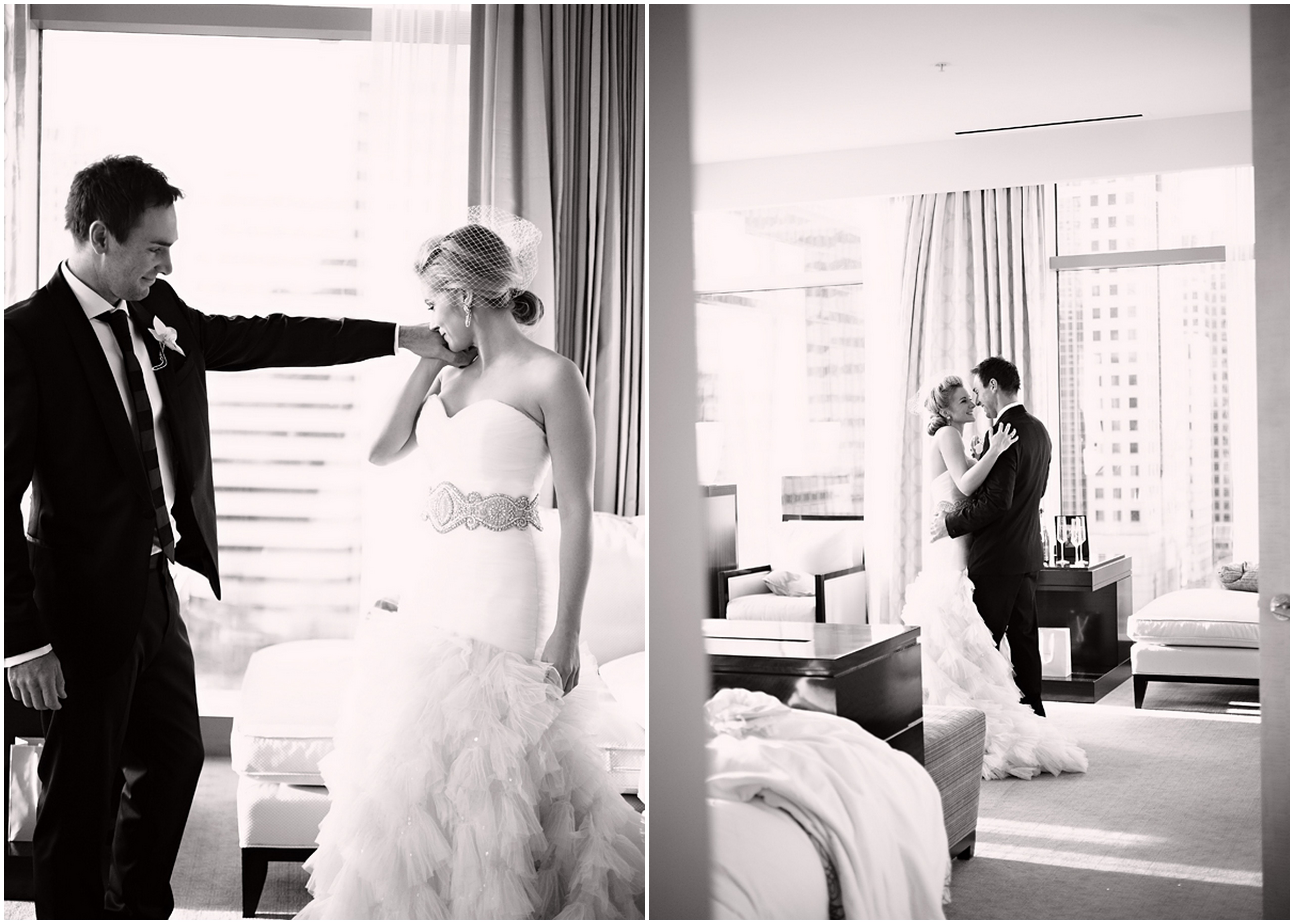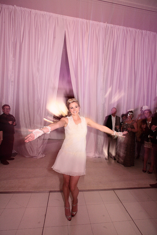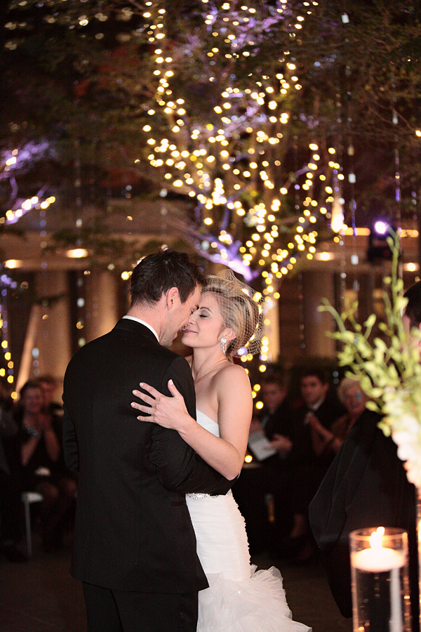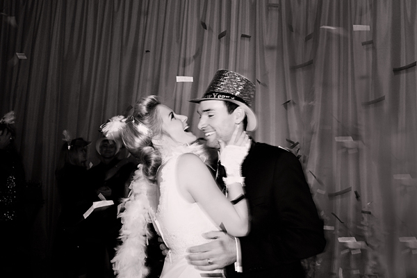This classic New Years Eve wedding might be one of my favorites this year!  The bride looks stunning in her ruffled gown and Jimmy Choo shoes and the decor by Ivy Robinson at the Ritz Carlton Charlotte is absolutely gorgeous.  The couple decided to get married on New Years Eve and before the clock struck midnight the bride changed into a super cute short dress and everyone received New Years favors to celebrate with.  I love how glitz and glamour the whole night feels and Kristin Vining did a great job of capturing some beautiful images!