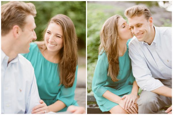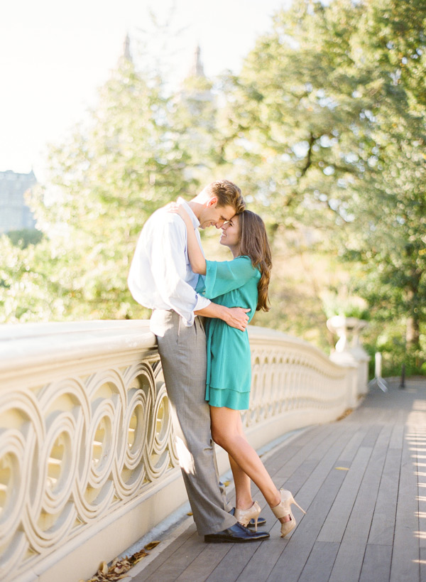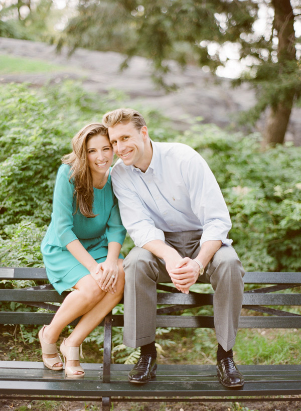 After my trip to New York to meet the amazing Martha Stewart, I’m obsessed with anything from the Big Apple! Central Park is classic NYC, from the romantic lakes and bridges to the lush, green lawns and shady oak trees scattered throughout the picturesque park. KT Merry captured the stylish Kate and John’s Central Park engagement shoot in the very place he happened to propose! Kate is adorable in her teal shift dress and nude pumps, and then makes a quick change into a chic black ensemble to fit the urban backdrop of the city. The special park bench tucked in an intimate corner of the park will be a place these lovebirds can return to year after year to remember where it all began!