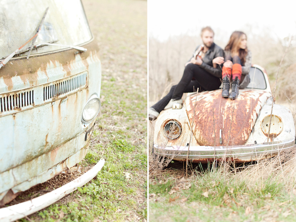 There is nothing more perfect for a photo shoot than when a couple has amazing chemistry, and Nikki Reed and Paul McDonald‘s music video shoot has plenty! Nikki, who plays Rosalie in the Twilight series, and Paul, who was recently a finalist on season 10 of American Idol, got married this past October with the help of their amazing wedding planner Beth Helmstetter! You may have even seen the wedding featured in Us Weekly! Now that they have been married for a couple of months they decided to start on a new project together: they co-wrote and produced an adorable duet that I think would be perfect for a first dance! This talented duo’s personalities mesh together perfectly to create both a beautiful music video and a fabulous photo shoot. Nikki and Paul found this rural hilltop in Madison County, Alabama that gave them a natural setting to showcase their talent and love for each other! They also had a friend lend them the perfect prop piece, a vintage VW Beetle! I love that even after the wedding this couple is documenting their love and this shoot has some great inspiration for an engagement or even anniversary session!