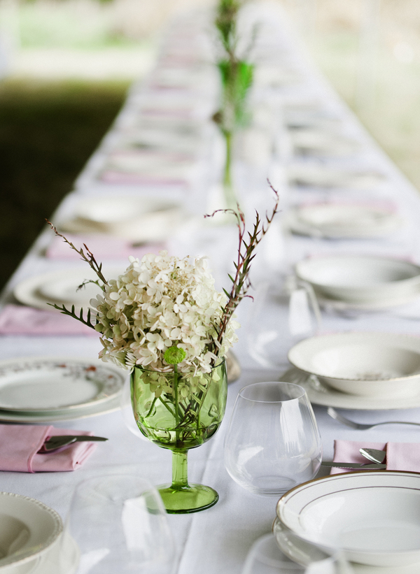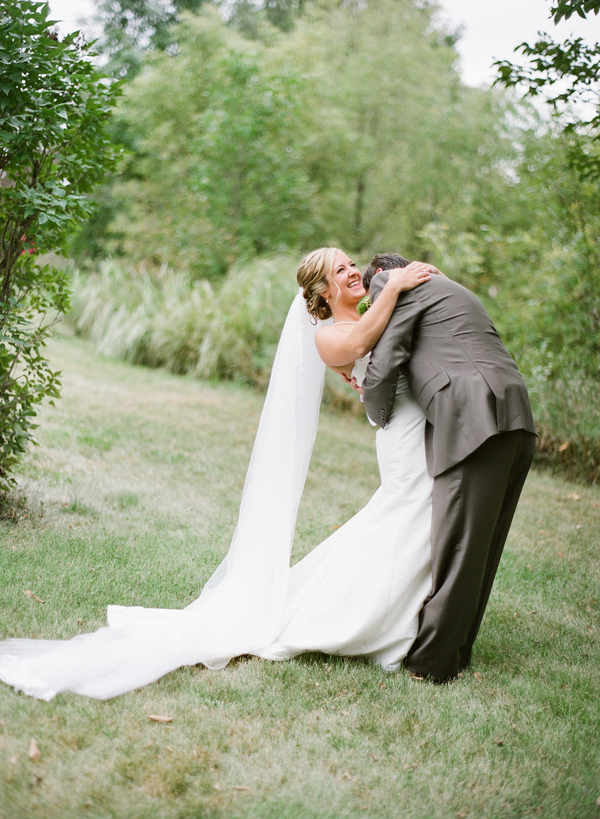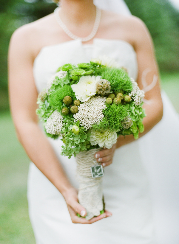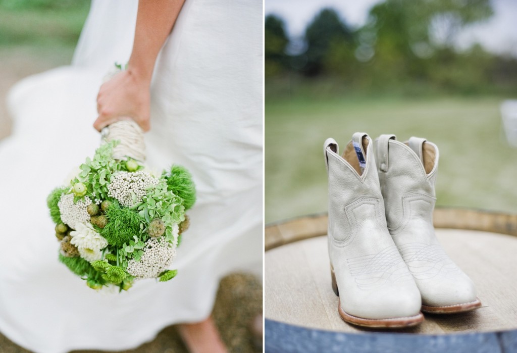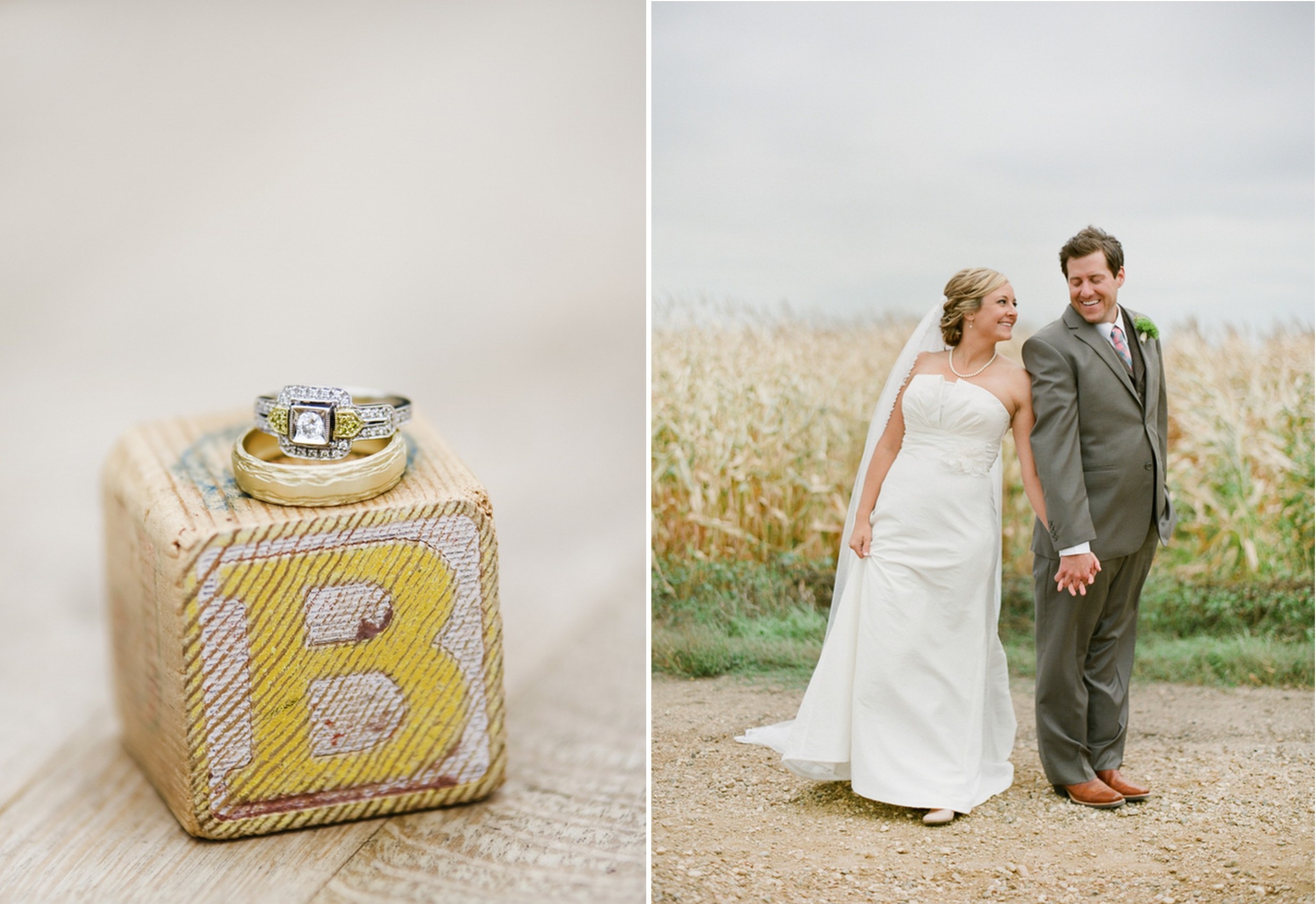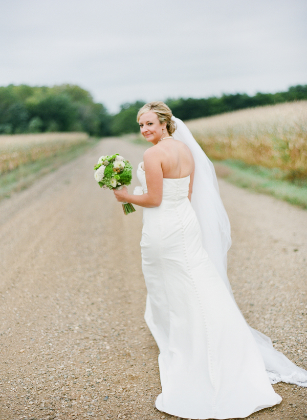 We love this outdoor South Dakota wedding sent to us by Kelli Hunt Photography! The soft pops of pink pairs with the lush green outdoor setting is the perfect balance of sweet and dreamy. I like that the couple brought in subtle vintage details with the bridesmaids in boots, the chalkboard sign, scabiosa pods and the mason jar lanterns! Here is what Kelli Hunt had to say about the details of the day:
