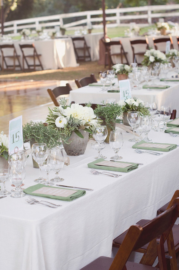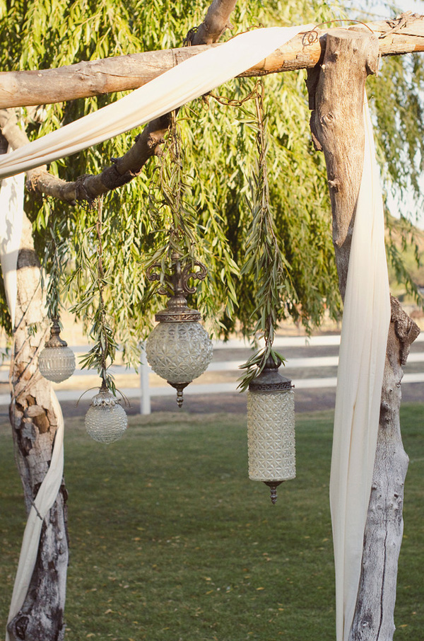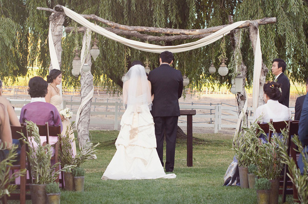 The duo over at Bash Please created another spectacular wedding! We are so inspired by this Rustic Ranch wedding at Saddlerock Ranch in Malibu. Of course it wouldn’t be complete without the floral styling genius of Carissa from JL Designs. We are loving the greens, burlaps, and natural herbs incorporated into the decor. Favorite part?: all the olive branches and rosemary! The ceremony location under the weeping willow tree with the hanging vintage crystal lanterns is just so breathtaking. We love how they used classic wood chairs and a handmade wood arch to make the ceremony special and unique. The bride looks amazing in her tiered gown–we love the champagne sash! Such a stunning malibu ranch wedding at a spectacular venue!