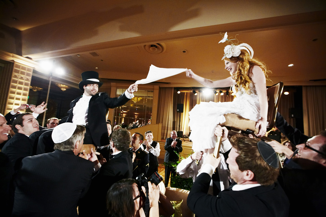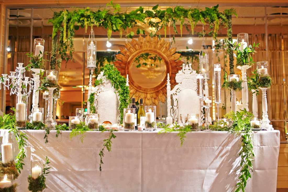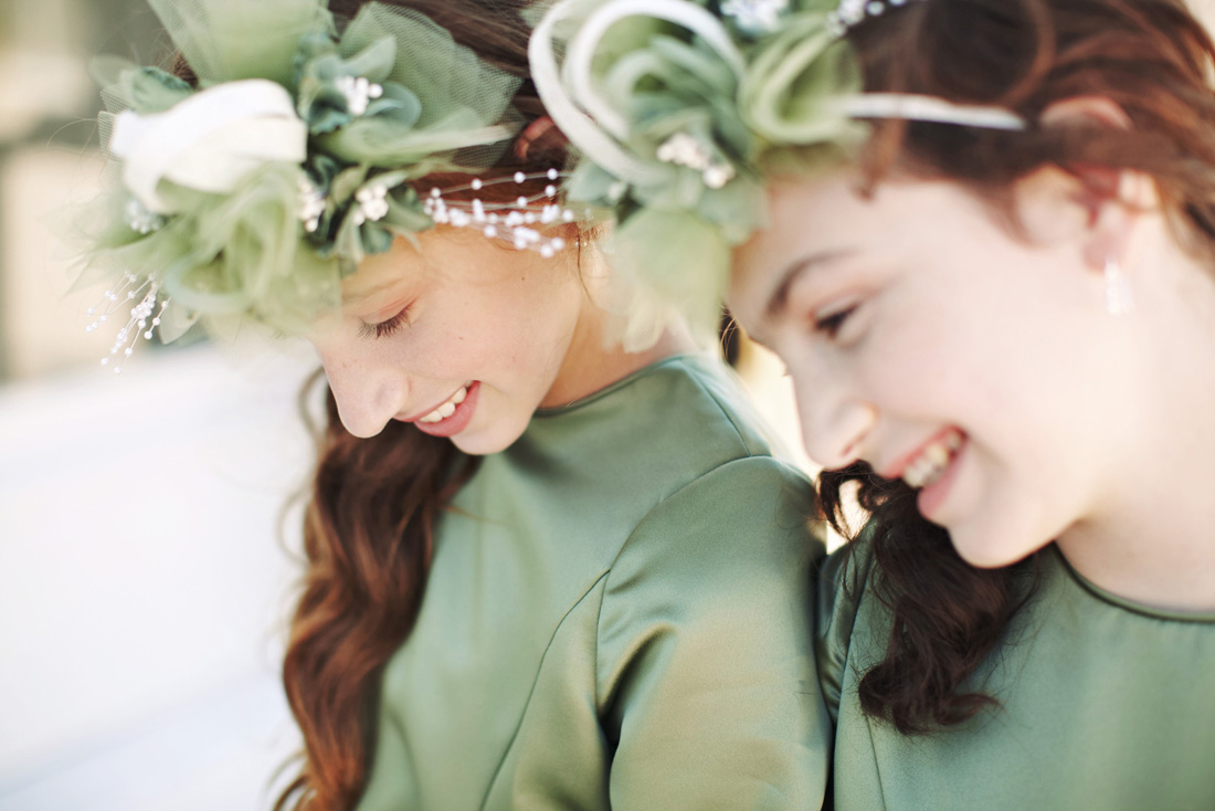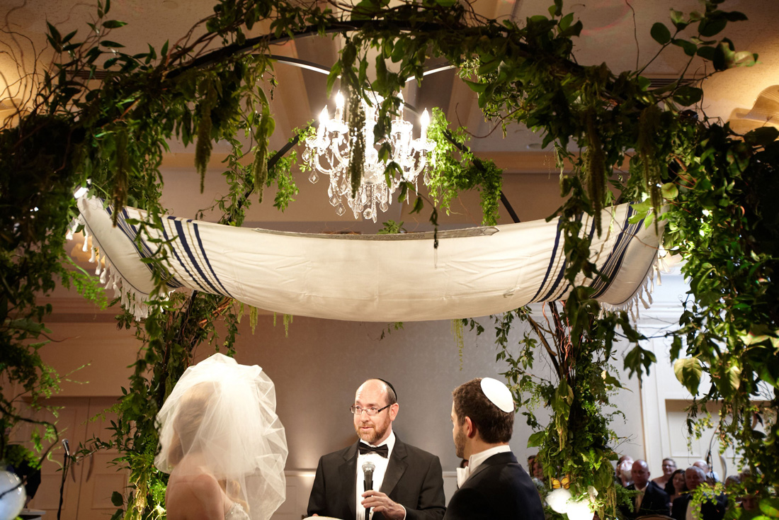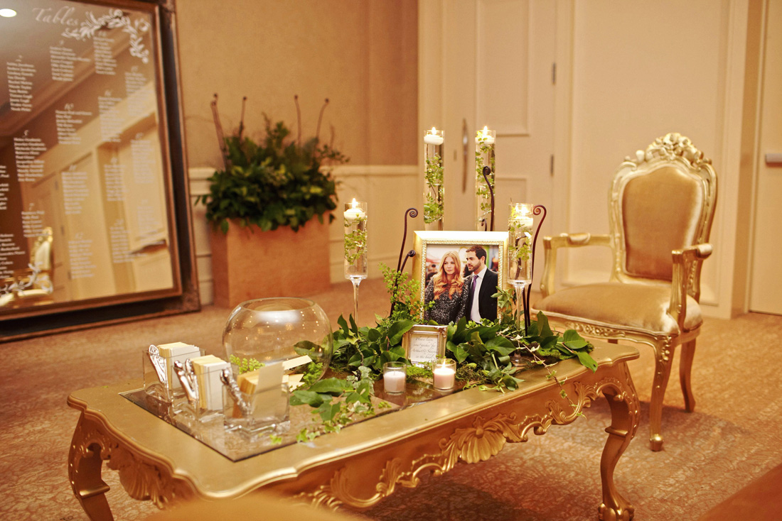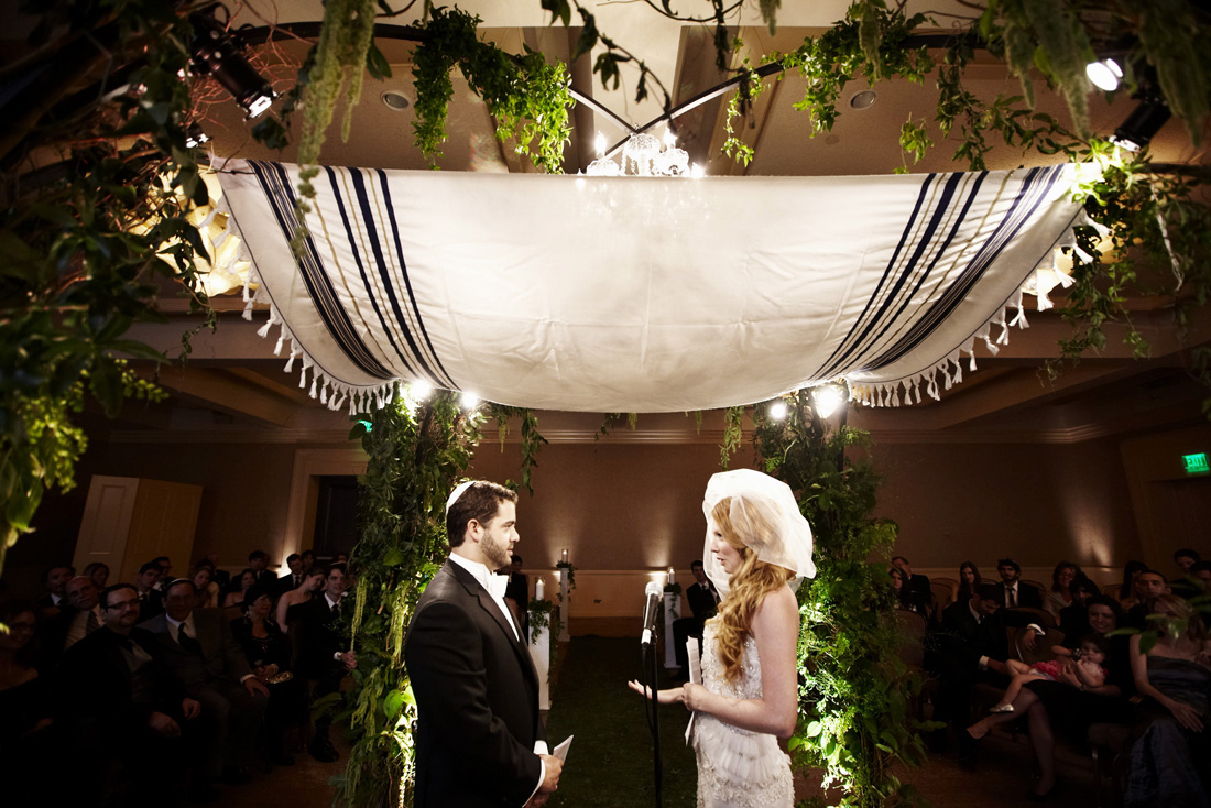 I love this cultural rich sage green and tangerine Beverly Hills wedding sent over to us by Desi Baytan Photography! A lot of you parents out there might recognize the bride, Shayna, from The Fresh Beat Band on Nick Jr! How fun is that?! I am in love with all the luxe elements they used throughout the wedding held at the famed Beverly Hills Hilton. The amazing gold chairs, mirrors, and frames look stunning with the simple whites and lush greenery and her veil is to die for! The flower girl dresses are so cute, I love that they look like little fairies walking down the aisle! And the way that the greenery is delicately draped on the chuppah with that gorgeous chandelier above! The ballroom reception right after is also out of this world. It’s always inspiring to see a color scheme that isn’t used that often and they pulled it off beautifully! Thanks Desi for this unique find!