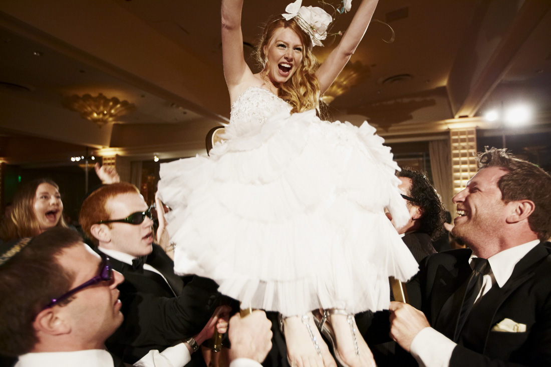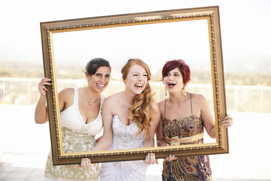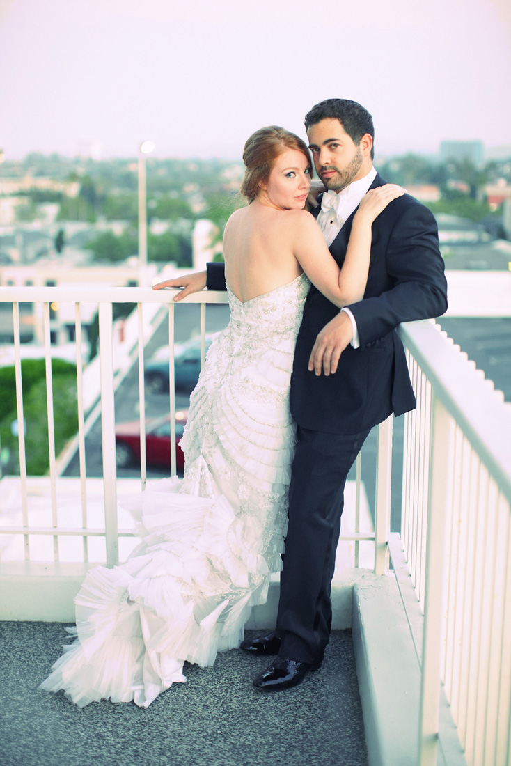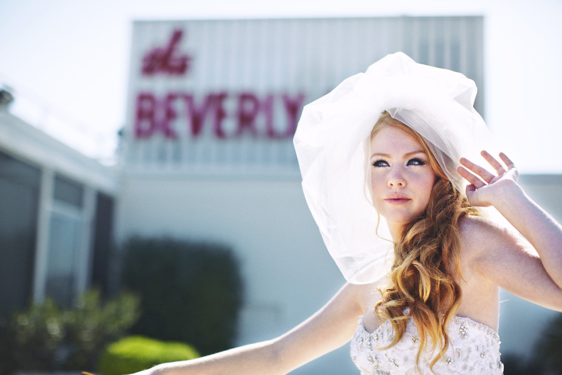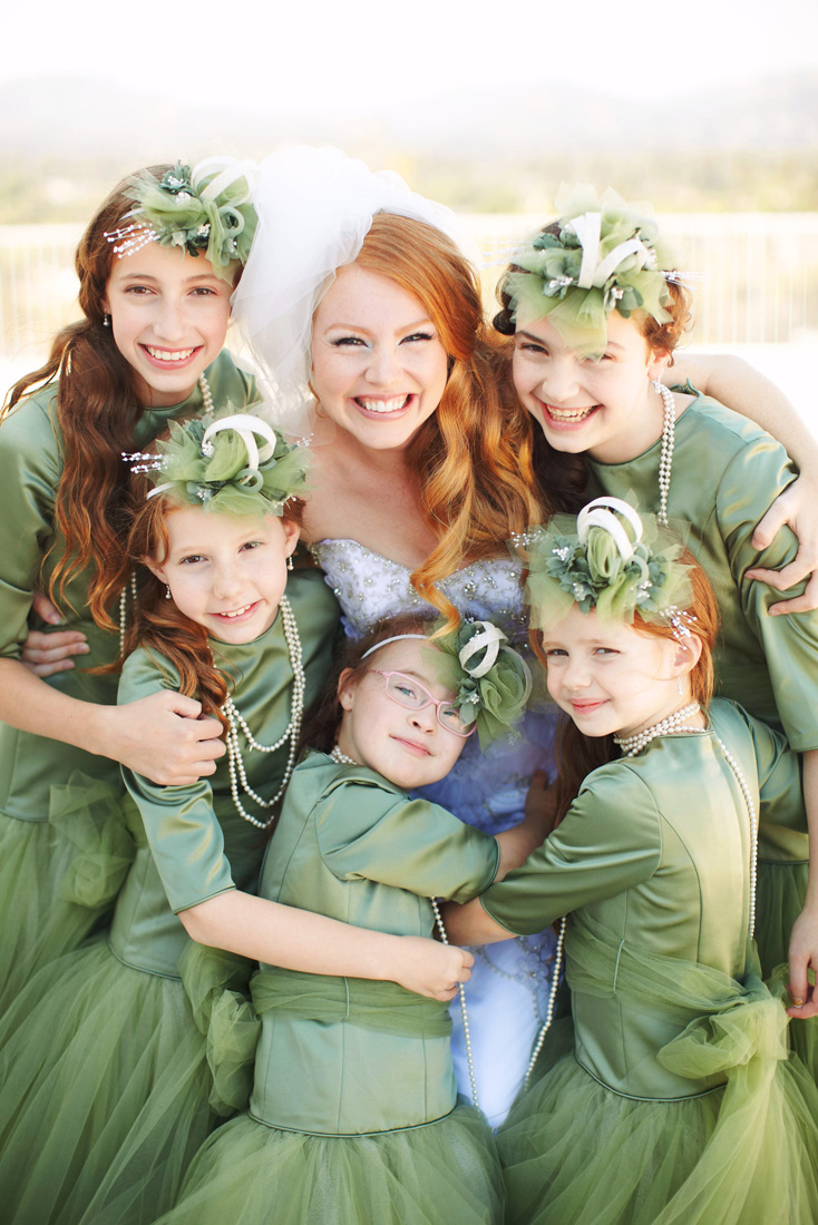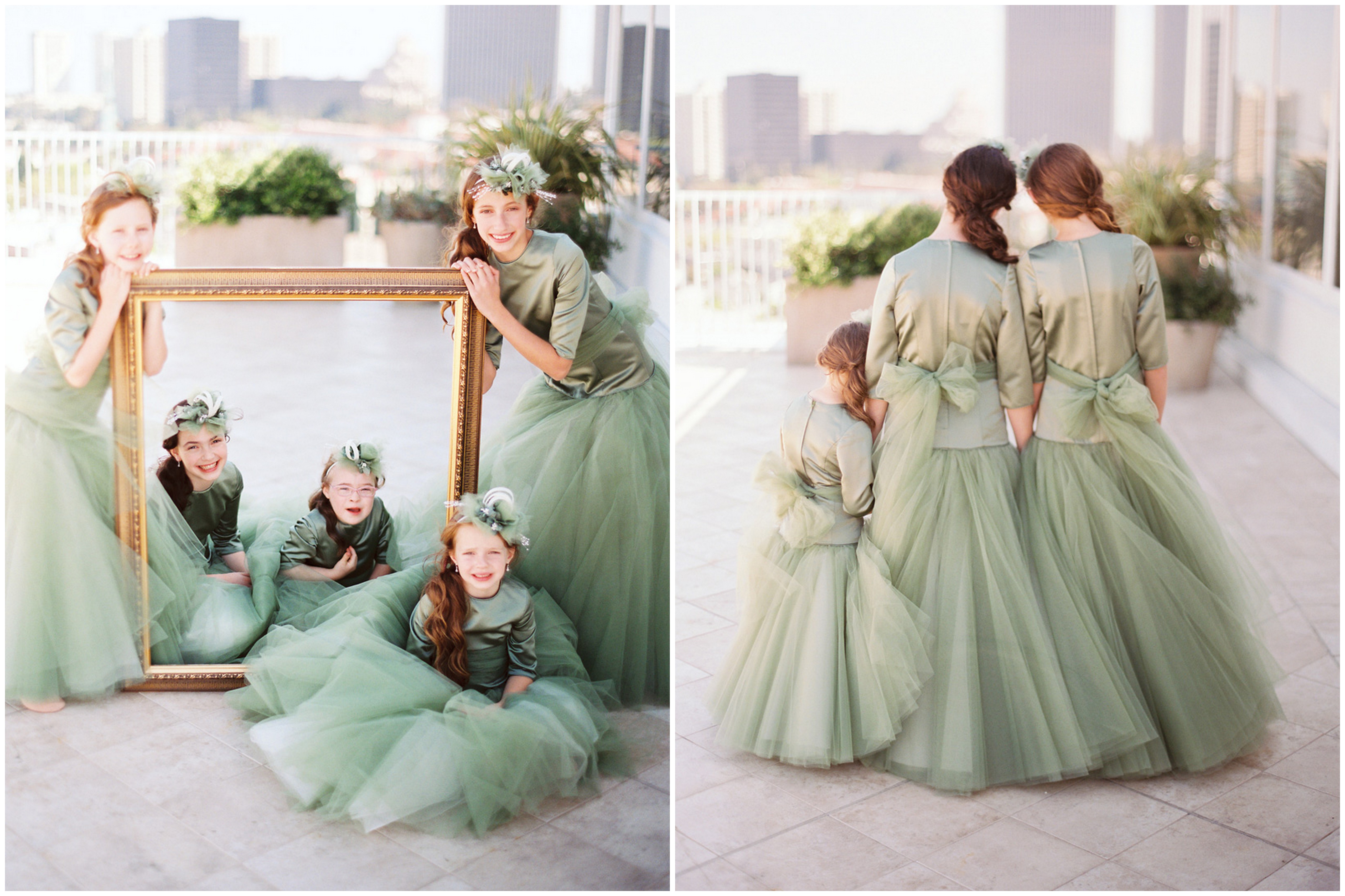 I love this cultural rich sage green and tangerine Beverly Hills wedding sent over to us by Desi Baytan Photography! A lot of you parents out there might recognize the bride, Shayna, from The Fresh Beat Band on Nick Jr! How fun is that?! I am in love with all the luxe elements they used throughout the wedding held at the famed Beverly Hills Hilton. The amazing gold chairs, mirrors, and frames look stunning with the simple whites and lush greenery and her veil is to die for! The flower girl dresses are so cute, I love that they look like little fairies walking down the aisle! And the way that the greenery is delicately draped on the chuppah with that gorgeous chandelier above! The ballroom reception right after is also out of this world. It’s always inspiring to see a color scheme that isn’t used that often and they pulled it off beautifully! Thanks Desi for this unique find!