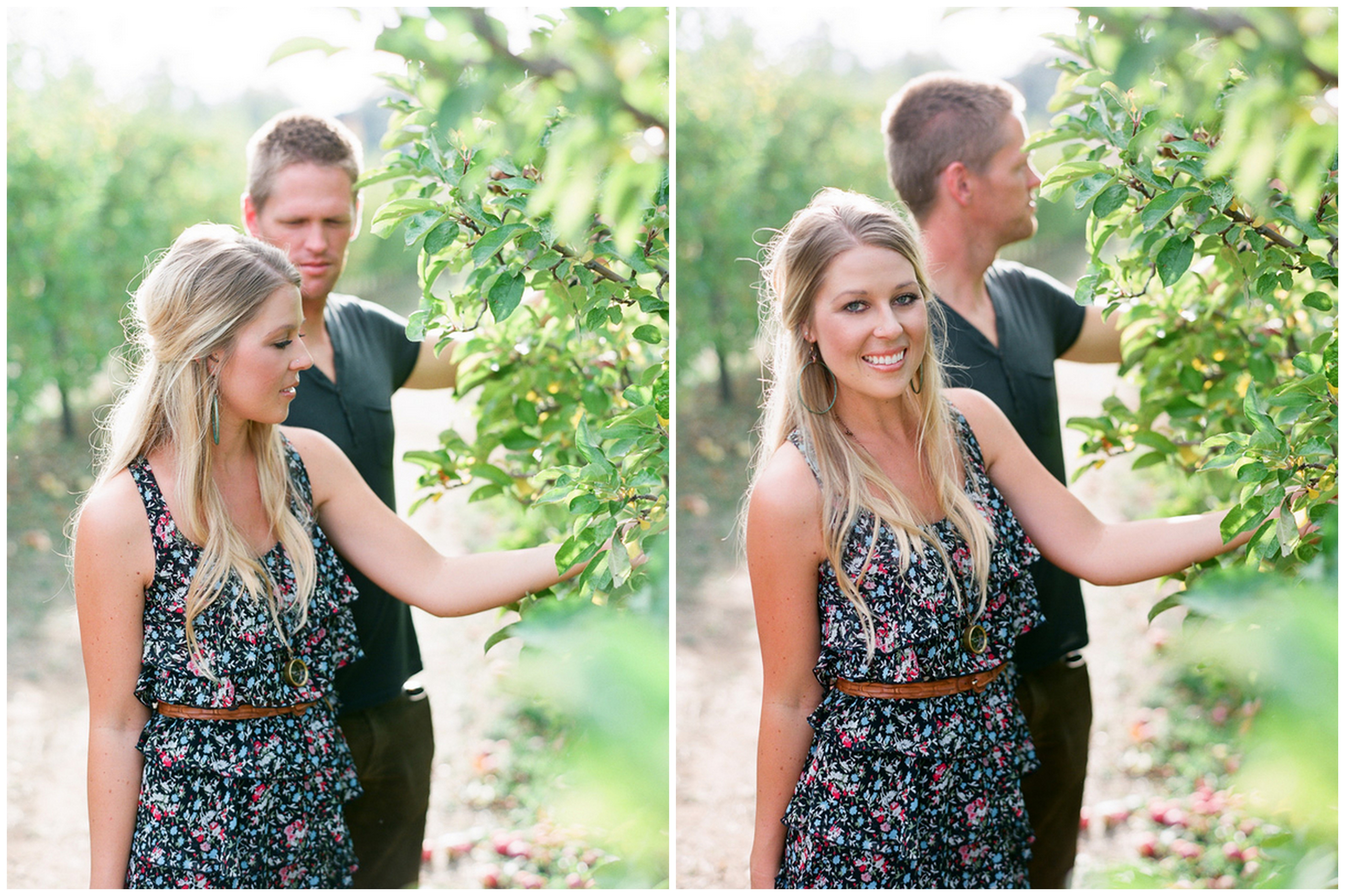 I am loving all this inspiration coming our way!  Since the addition of After the Wedding, we have received a ton of amazing submissions including this San Diego farm anniversary shoot by the talented Troy Grover at Wynola Farms in Julian, CA!  The couple is so adorable and I love that they are continuing to capture their relationship even after the engagement and wedding stages.  I know there have been quite a lot of engagements recently which means brides everywhere are beginning to plan their fall weddings.  This shoot is a great example of how to incorporate fall themes, like apple orchards and trees, into your big day!  Her dress is the perfect California fall outfit with the feminine ruffles and amazing green cardigan that really adds that perfect pop of color to mix things up!  I love how they kept it simple throughout the shoot and let their love speak for itself.