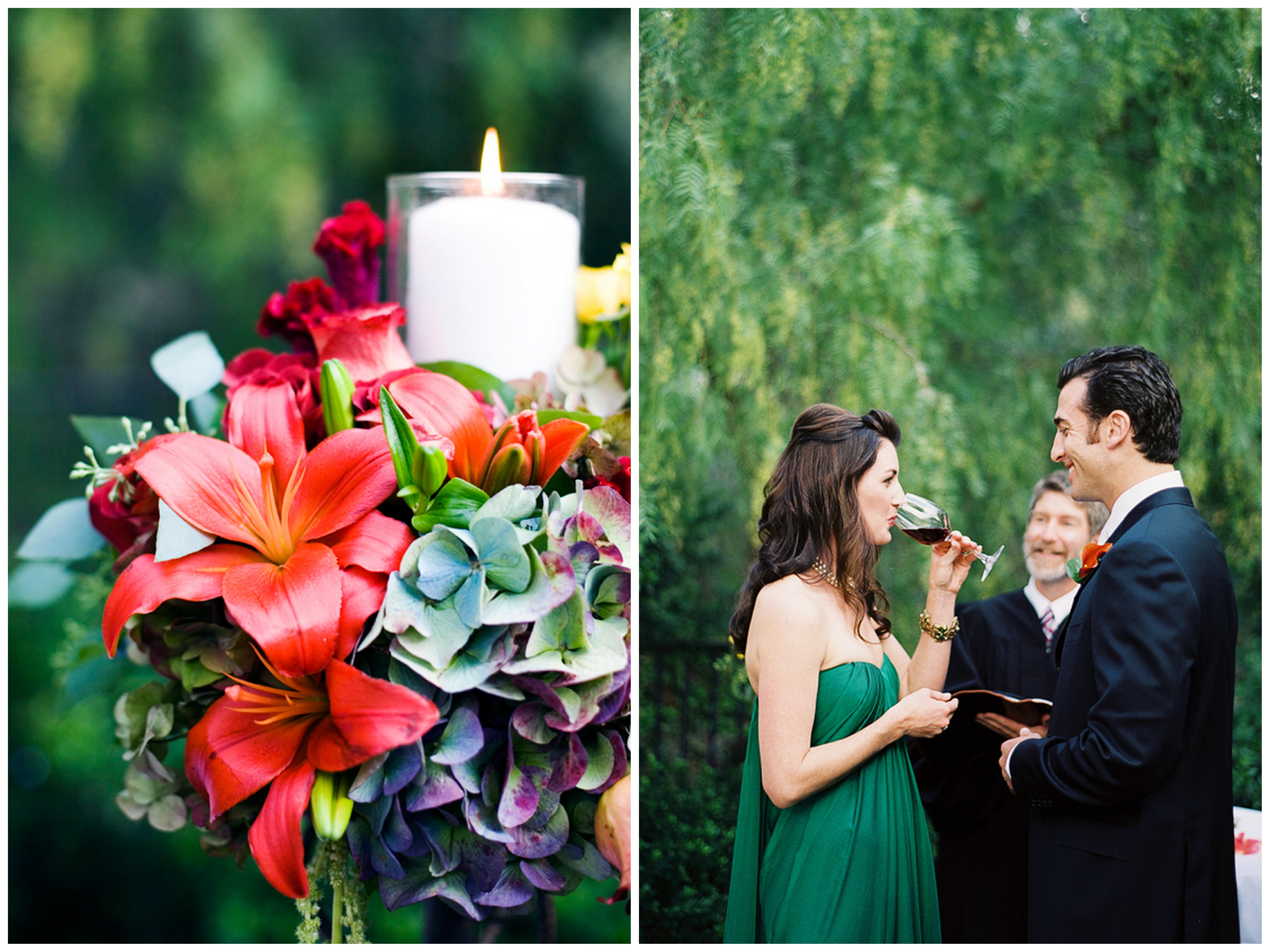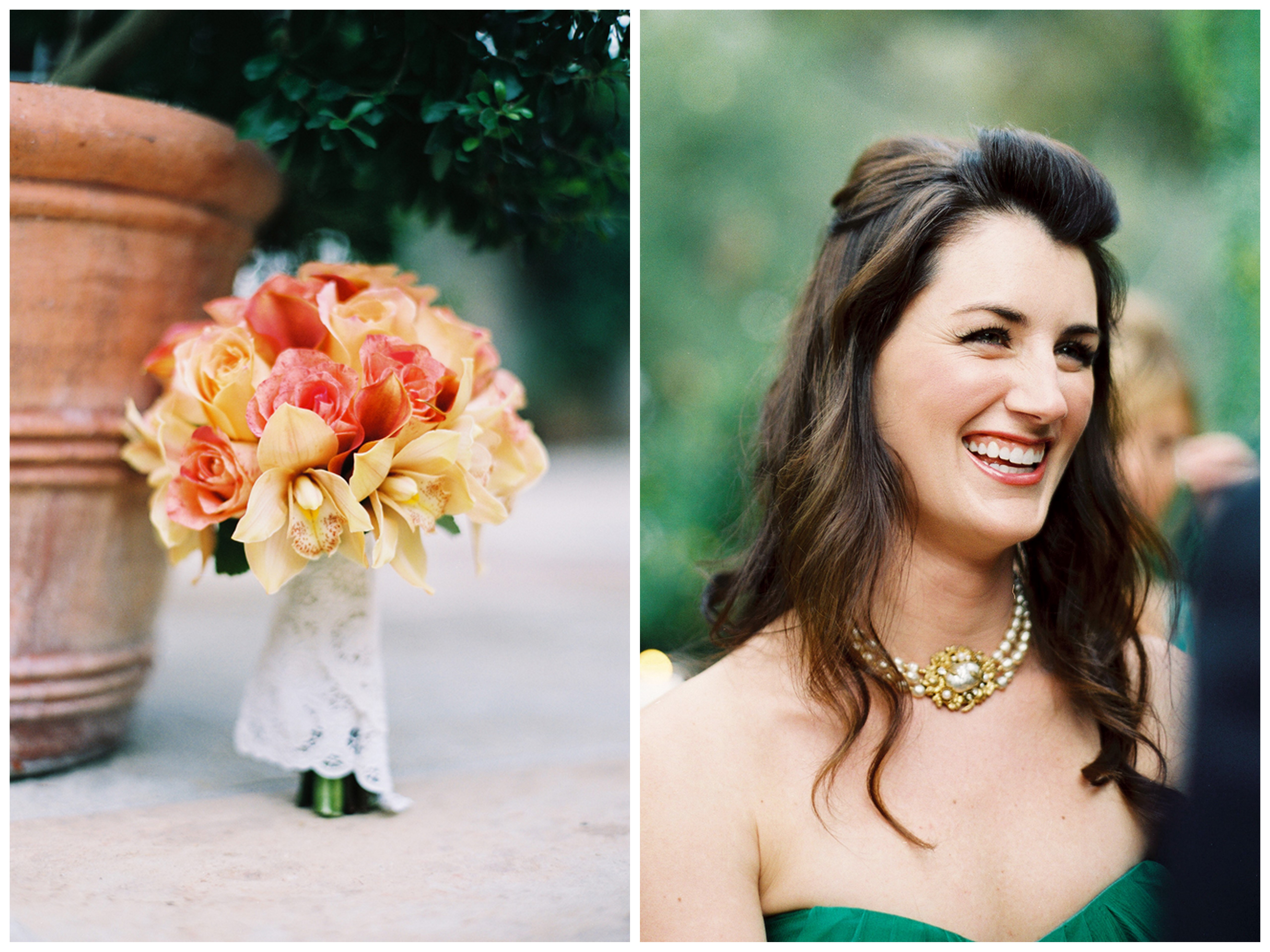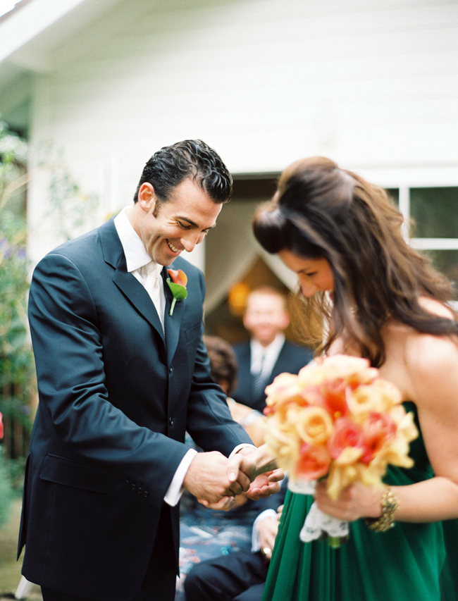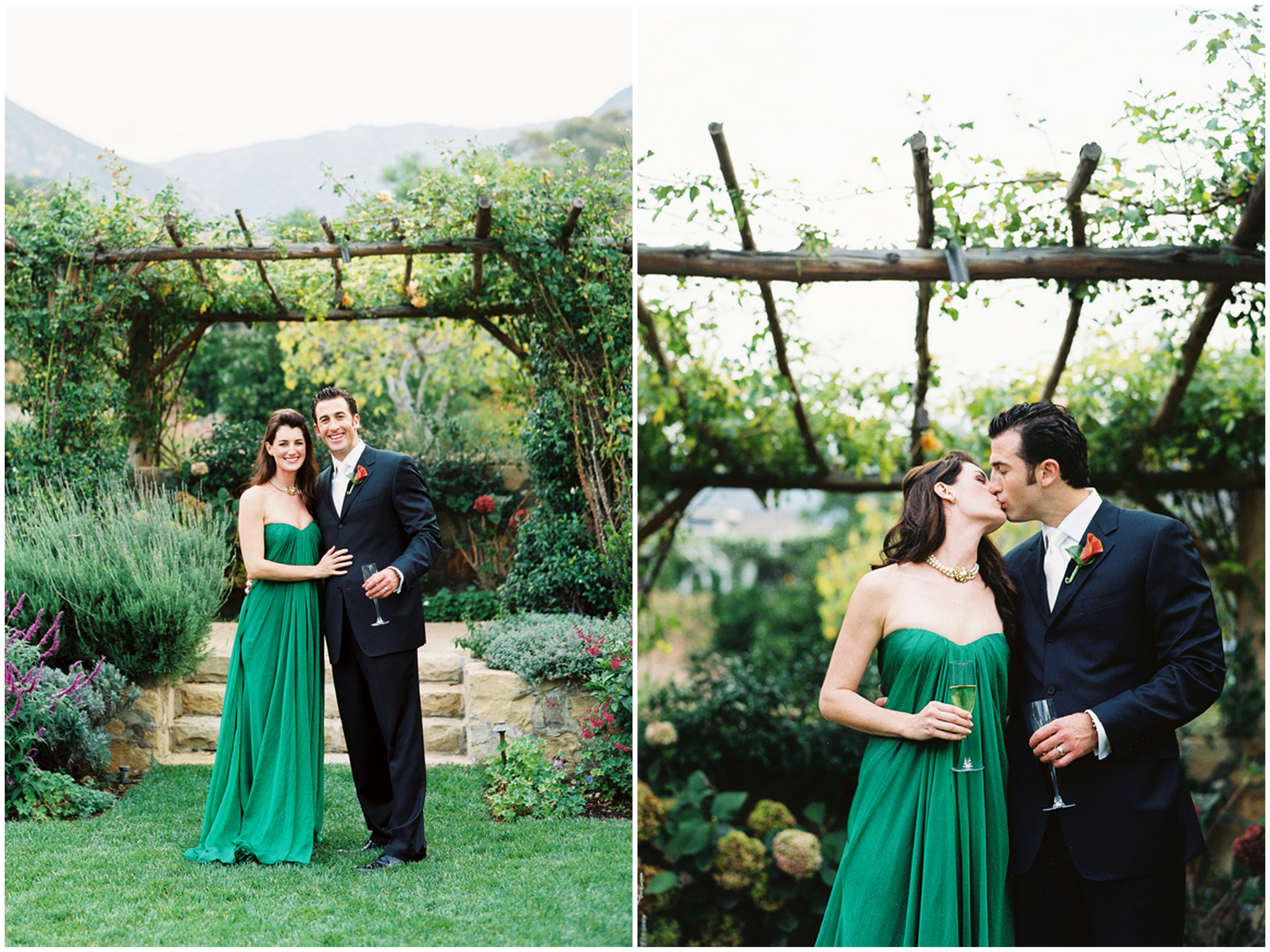 I’m in love with all things unexpected at weddings, but yet very true to the couple. As many of you may know I’m all about the color green so this wedding is simply such a joy to feature. Photographed at San Ysidro Ranch in Santa Barbara (one of my favorite cities!), I can’t get over how stunning the bride Brianne looks in her GREEN Alexander McQueen gown. Although this wedding was small and intimate it packs a powerful punch with personality!
