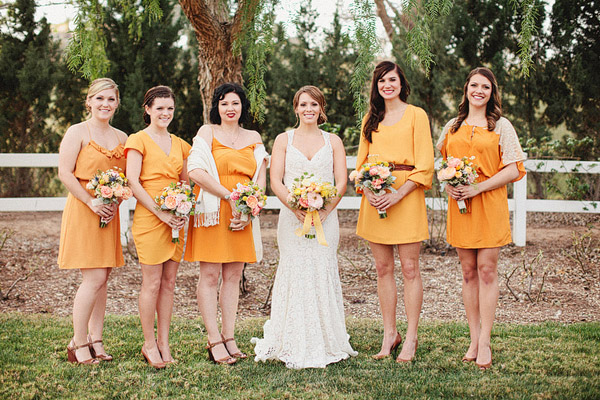 Lauren’s backless JLM Couture dress is absolutely gorgeous! Between her bouquet and her bridesmaids’ tangerine dresses, everything was bright and beautiful despite the drizzly weather. Matthew Morgan did an amazing job capturing every moment of this wedding… so stunning!