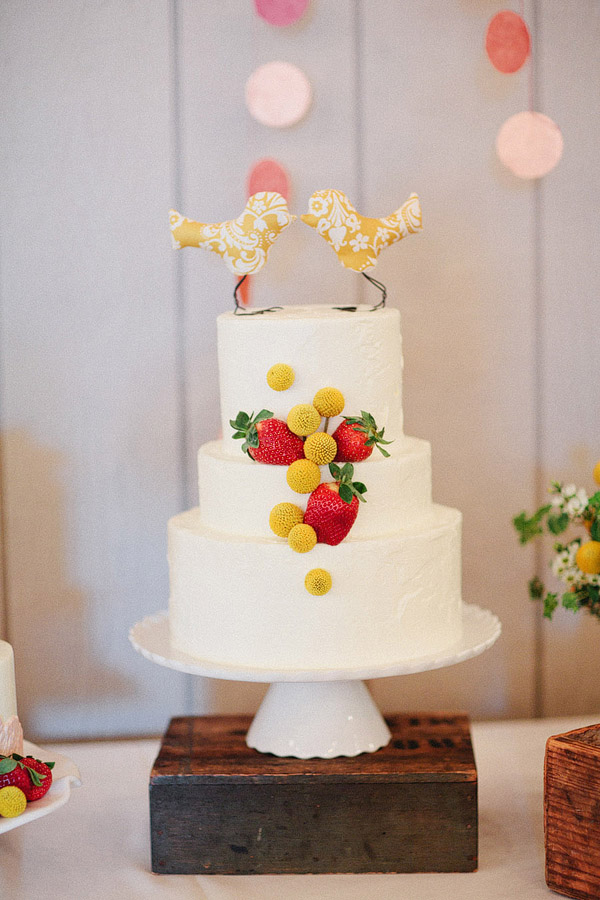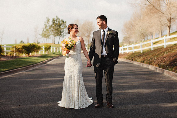 We think it’s precious when a bride and groom go that extra mile to really personalize their big wedding day and make it their own. Ben and Lauren’s Southern California strawberry farms wedding is no exception! This super cute couple said their “I Do’s” at a beautiful outdoor wedding. Keeping with the name of the golf course, Strawberry Farms, there were lots of strawberry accents and décor, including strawberry jam that the couple cooked and canned together!
