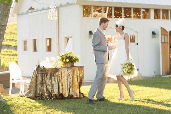 We can’t imagine a better way to soak in the moment by sharing a glass of wine! There’s nothing like a little glass of bubbly, like ONEHOPE Weddings Wine, to really celebrate. How beautiful is her simple makeup and voluminous bun? Better yet, her cognac ring by Diamond in the Rough adds the perfect amount of sparkle and shine. Captured by one of our favorites, Allyson Magda, this elopement photo shoot really makes us just want to relax and pour a glass for ourselves!