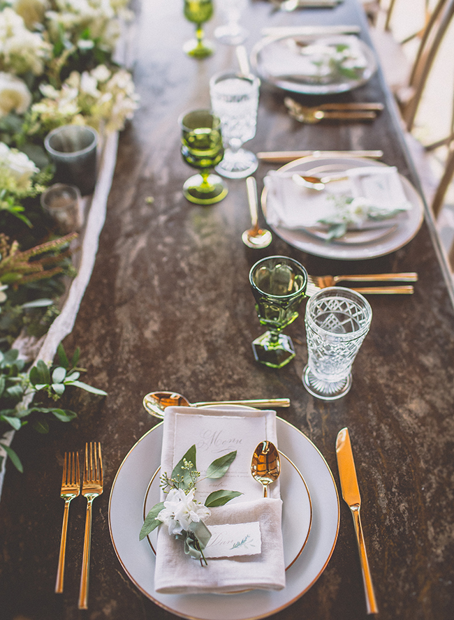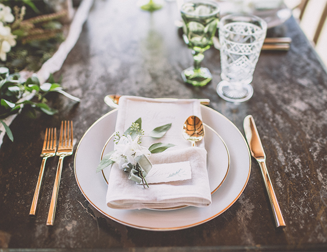 What’s white & green and gorgeous all over?! This intimate Hawaiian wedding designed and planned by Unveiled Hawaii. The breathtaking views from the estate, the unique lace pattern on the bridal gown, and the simple, elegant color palette are some of our favorite elements. Unveiled Hawaii’s Lorrie amplified the stunning scenery with greenery along the reception tables and ceremony arch, and touches of gold for added glamour. It was the perfect day for the beautiful couple and their intimate group of guests.
