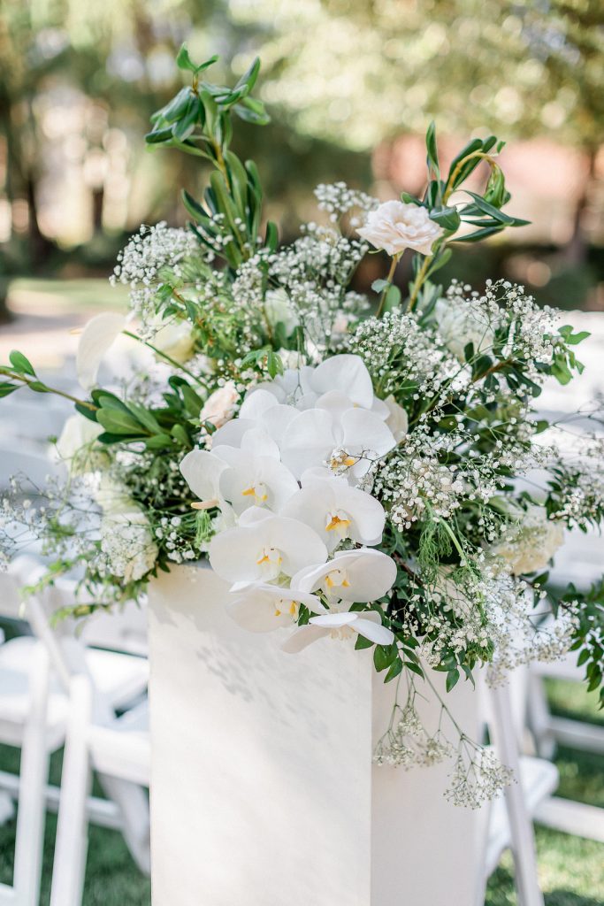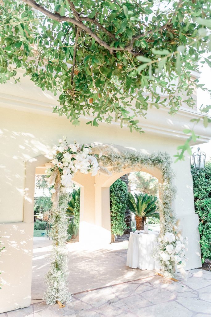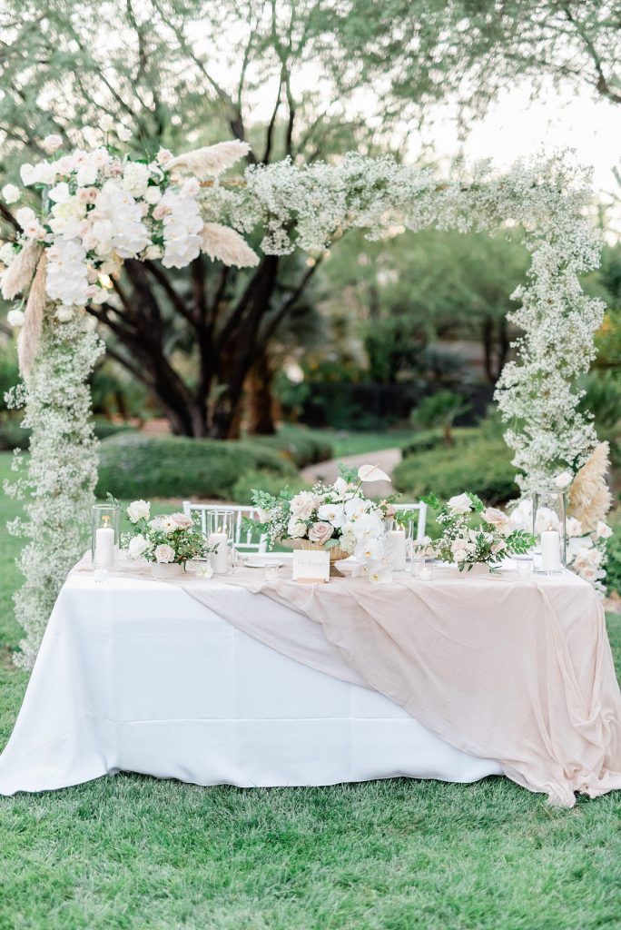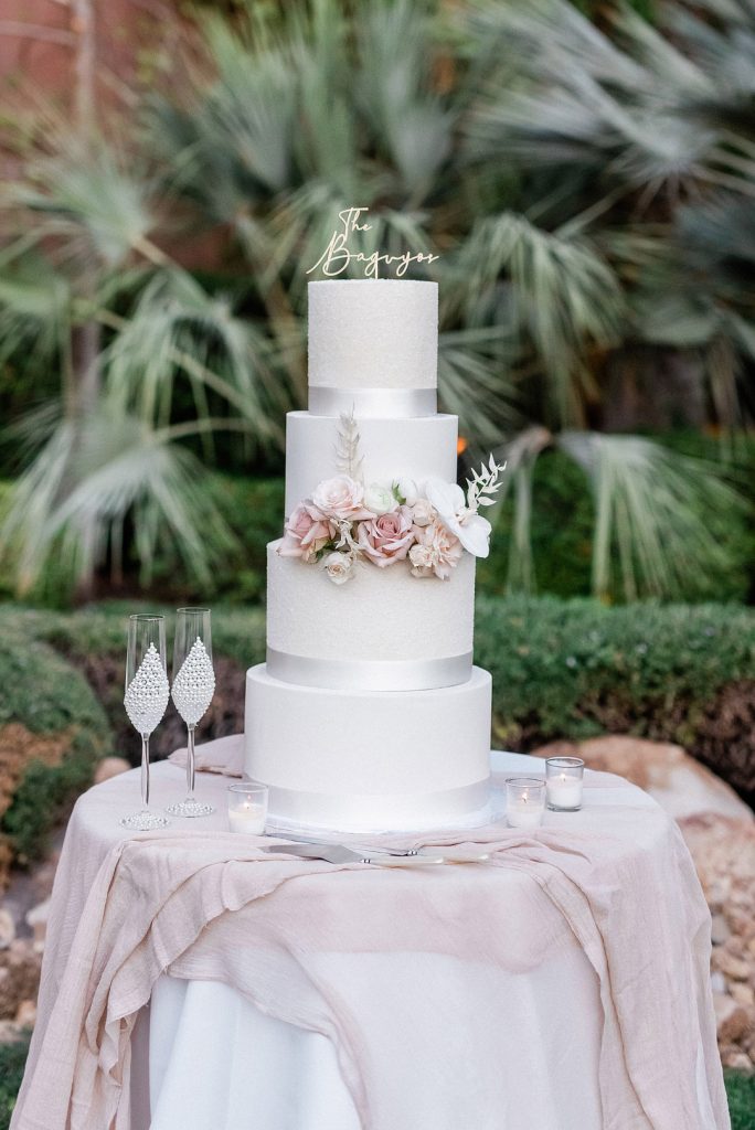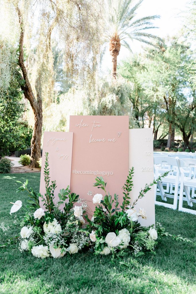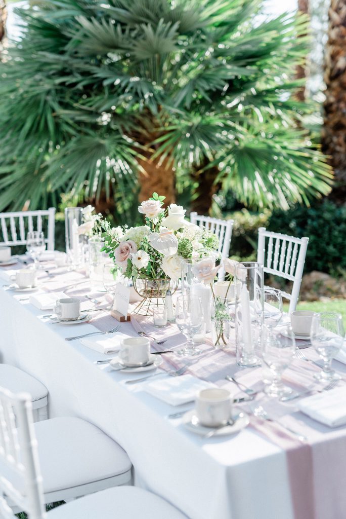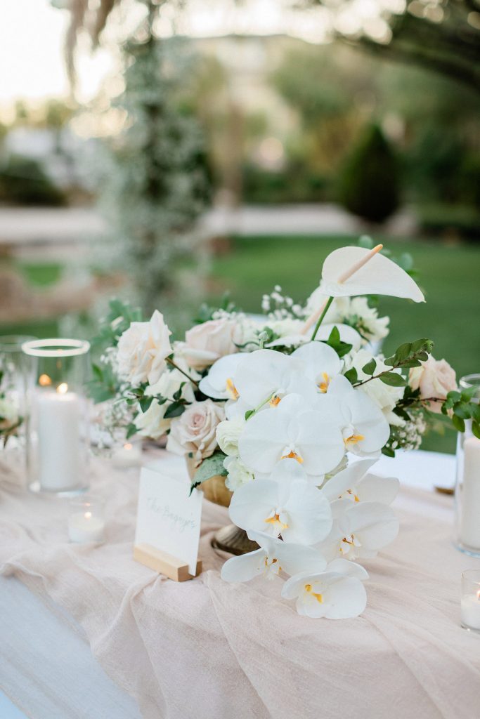 The mood of this wedding is romantic, soft and intimate. Between the blush colored roses and tropical orchids, this Las Vegas garden wedding certainly gives off the most enchanting ambience. We think that soft neutrals paired with blush and white accents are the perfect way to illustrate the most romantic feeling throughout your entire wedding day. The florals in this garden wedding are subtle, yet bring in so much authenticity. We love that the tropical theme is tied in between the venue’s stunning palm trees and the bride’s Hawaiian heritage. This wedding is the perfect depiction of inspiration, happiness and love.