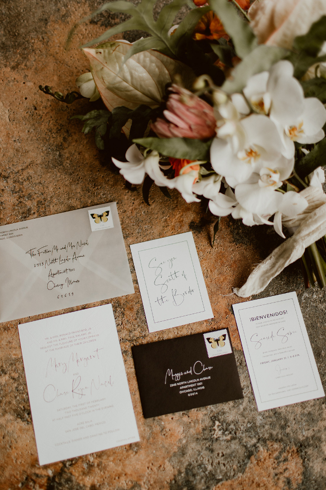 Chase & I met our freshman year of high school but had two years of flirting and high school nonsense before we officially started dating in 2009. A short 10 years later, we got engaged at Millennium Park in our hometown of Chicago. About a year before our engagement we took a trip to Los Cabos and visited Acre, a lush jungle oasis in the foothills of San Jose del Cabo. With a hand-painted dance floor, organic farm-to-table food, romantic string lights, and a roaming baby burro named Burrito, we knew Acre’s modern style and laid-back, boho vibes would be the perfect destination for our future wedding.