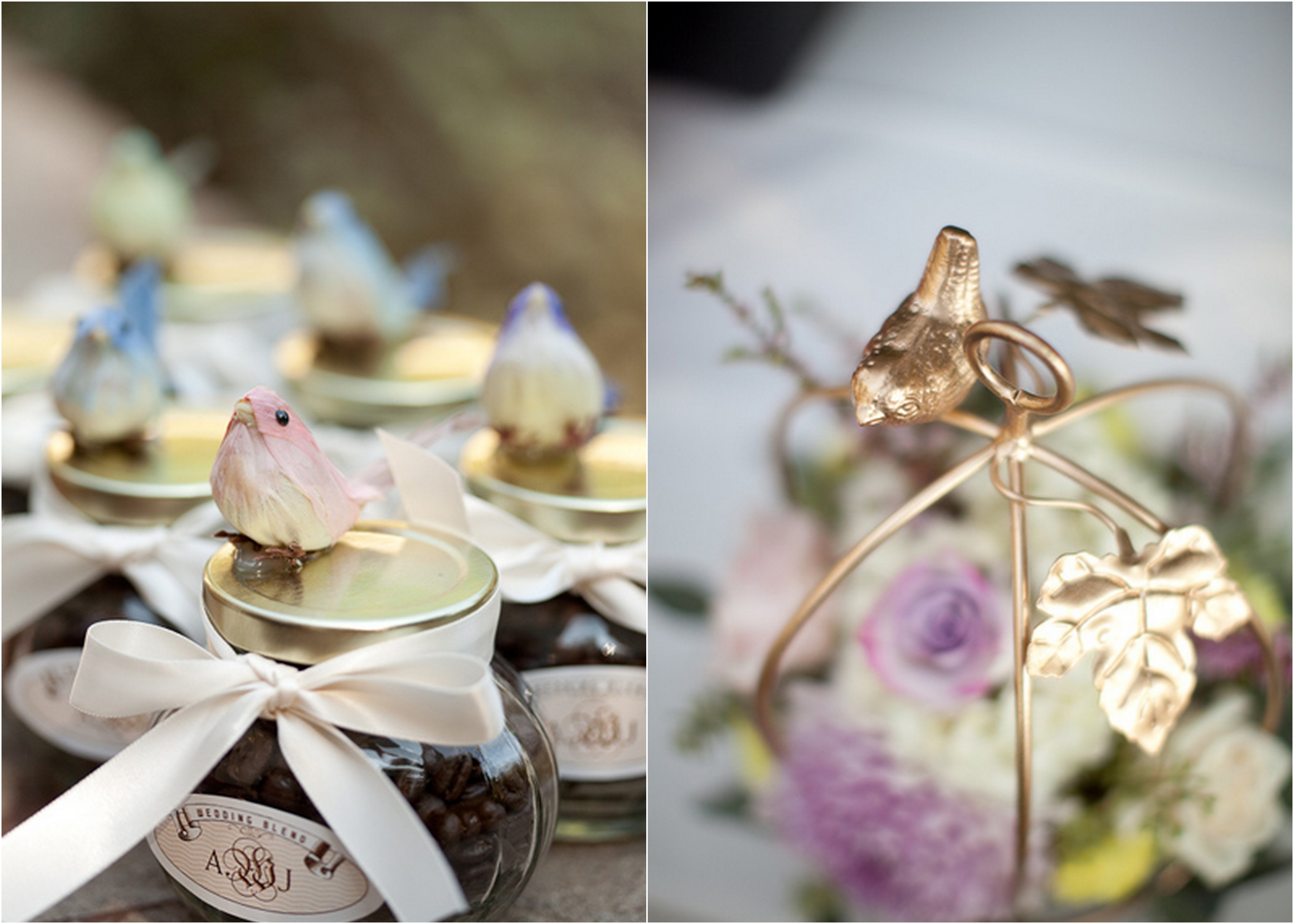 We have really seen birds become a trend in weddings and I have to say I am a fan! I love how playful yet natural they are. I love the nests, the feathered accessories, the cages..all of it! After all a wedding is all about two little love birds joining to share one nest. Below are some of our favorite fabulous feathered bird wedding details.