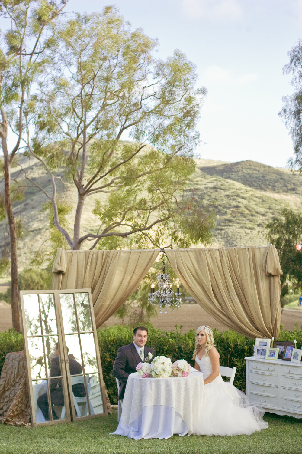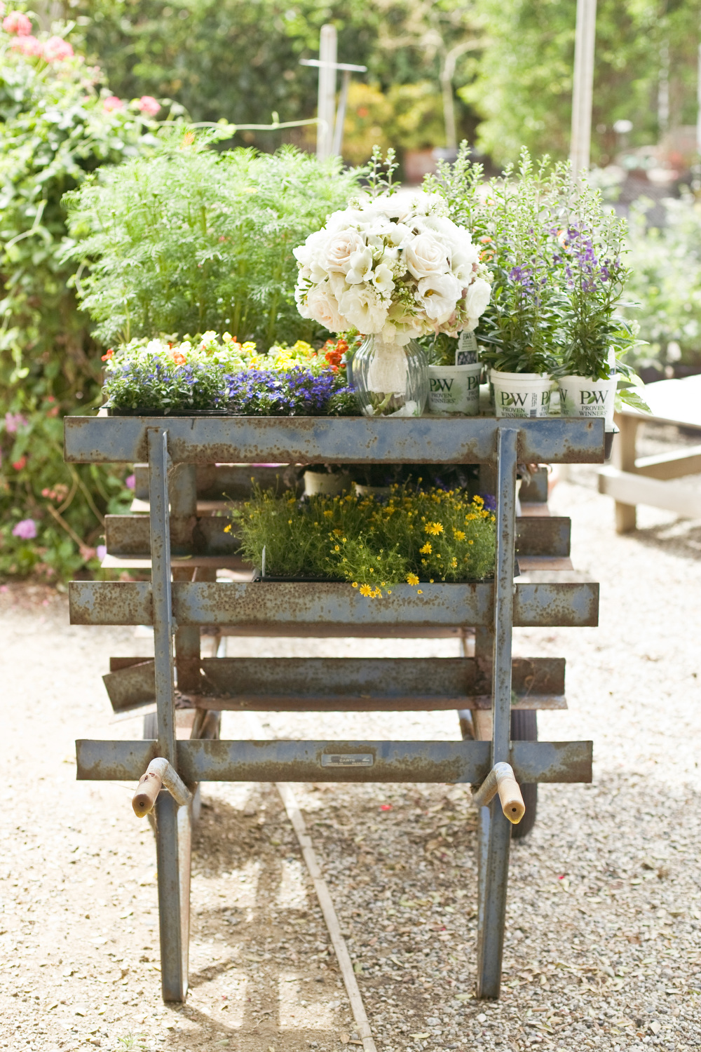 The Maravilla Gardens created the perfect outdoor backdrop for this fabulous Camarillo, California vintage inspired wedding. Look at all the lovely curated vintage items that were collected! From the hankies, hand made signs, herbs and lush garden containers, old books, vintage dressers, picture frames and chandeliers, each element tells a perfect part of this wedding story.