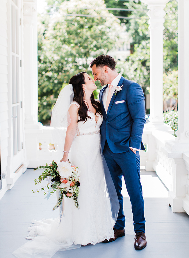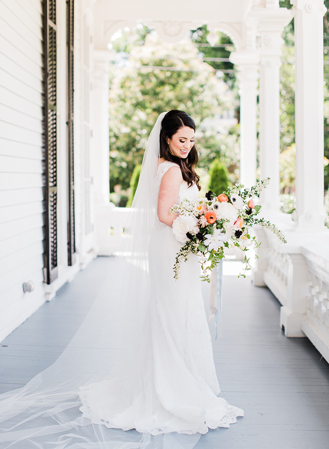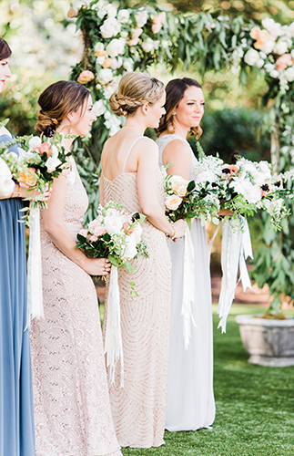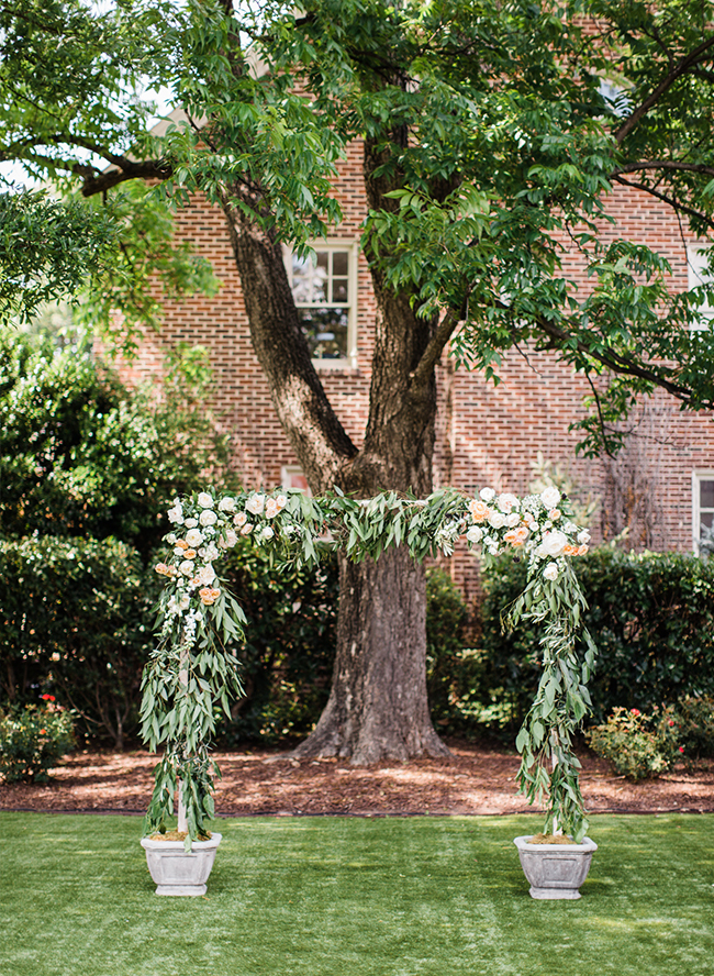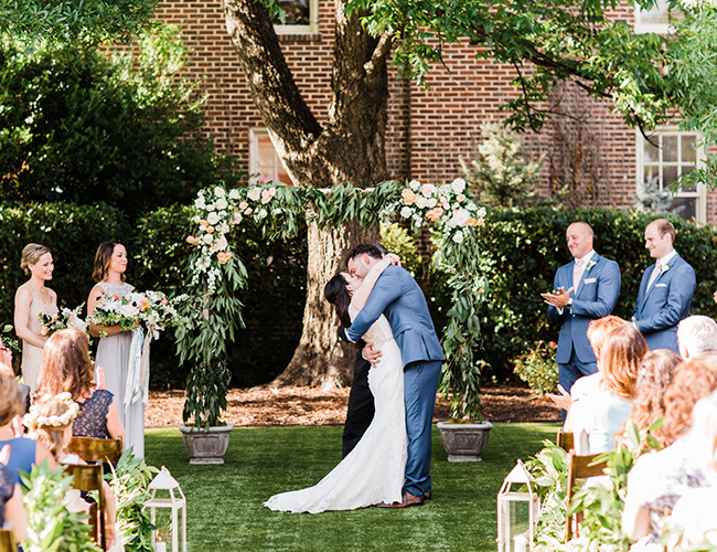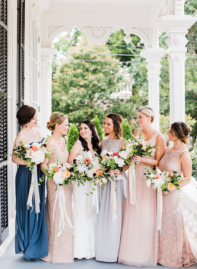 When a wedding planner gets married, expectations are high – and this bride delivered! Her pastel wedding at the Merrimon-Wynne House in Raleigh is beautiful. As in beautiful-down-to-the-metallic-shoes beautiful! Speaking of metallic, there are so many shiny silver and gold details that take the decor up a notch, from the sparkly bridesmaid dresses to the votives and flatware on the reception tables. We’re super into it, and know you will be too…