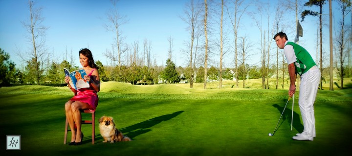 To say that the stars aligned for Marc and Audrey met, would be a serious understatement. Marc who was traveling with the PGA and from Australia was in a new  location each week.  Exactly 3 years prior to the exact date of their upcoming wedding, Marc found himself at the right place at the right time. Audrey was an hour away from home, out with friends after a concert when a “handsome bloke” as she described Marc, showed up and they ended up chatting all evening. It didn’t very long for Marc and Audrey to realize they had met their match. In March 2009, before taking some vacation time off work, Audrey went over to Marc’s (arriving 45 minutes later than he expected) and was one knee with the ring in hand. My client Antonia Christianson is planning Marc and Audrey’s wedding and the great images of their PGA Engagement Session below were captured by Lissa Hatcher