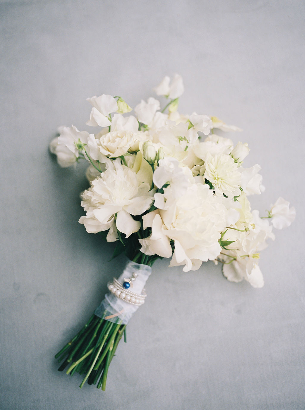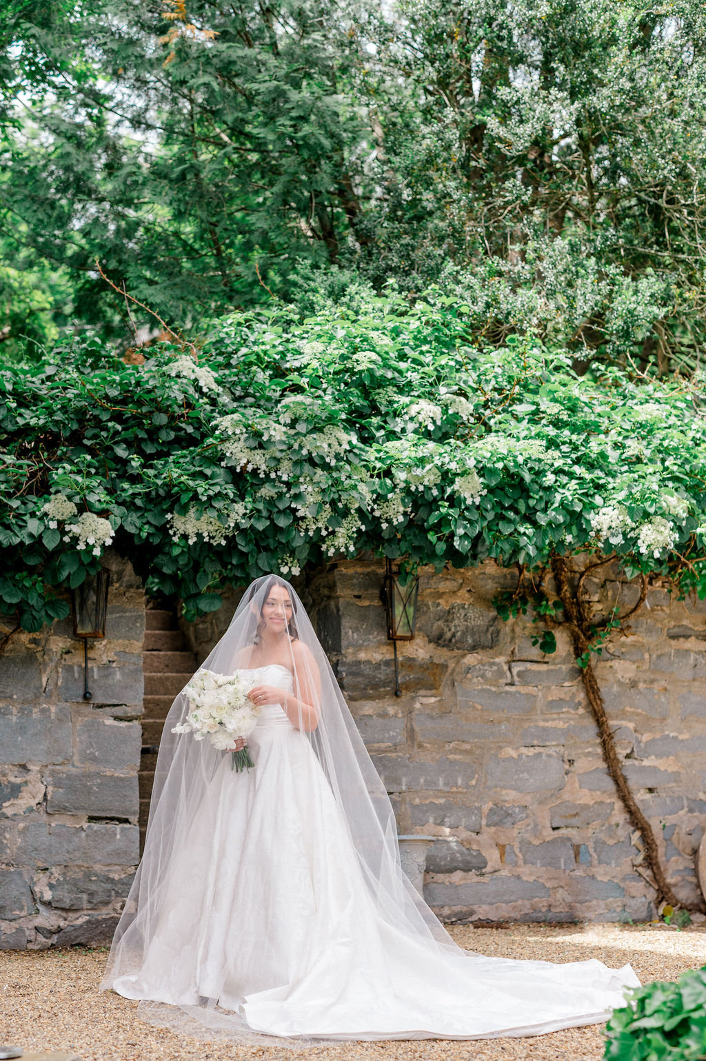 The ceremony was officiated by a Catholic priest, an important and meaningful choice for Emily and her family that grounded the day in tradition. A special prayer honoring their loved ones who had passed was also included, making the moment feel deeply personal and full of love. Lush arrangements of white florals and fresh greenery complemented the setting, while Emily’s bridesmaids added a modern, sophisticated contrast in sleek black gowns in a mix of necklines, each carrying soft white florals that tied the entire look together for this timeless Connecticut wedding.