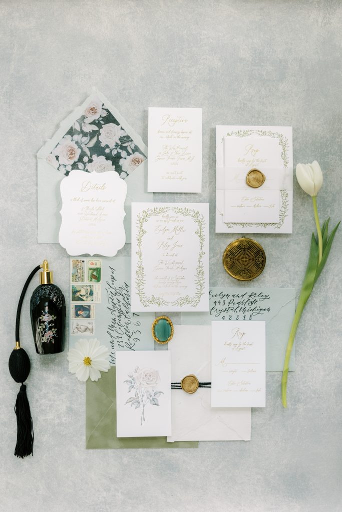 If you could time travel, what era would you go back to? Let us bring you back to the 19th century with this vintage garden tea party wedding editorial. It’s a timeless and romantic setting that takes place just north of Detroit, Michigan. You are brought back in time with the cursive written invitations, personalized tea cups, extravagant tablescape and vintage getaway car. Scroll on to see the different settings throughout this incredible venue!