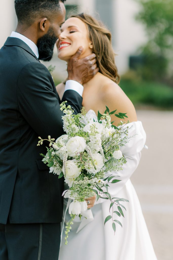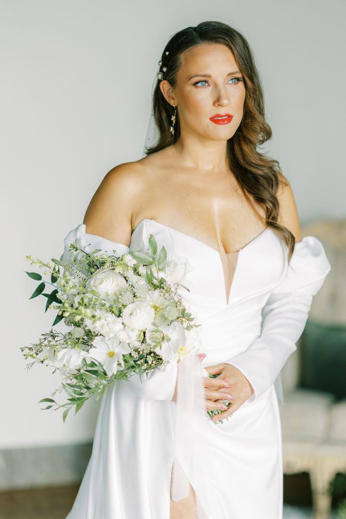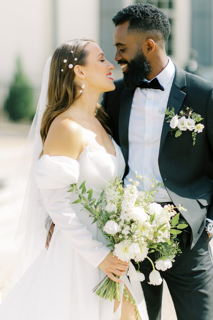 “We knew we would need the perfect dress to cohesively unite the editorial while we brought different elements together. This specific selection from Anne-Mariée combined the aesthetics we were looking for. It accentuates the sleek curves of the Hamilton and the grandiose nature of The War Memorial. The dress also pairs well with the intimate ambiance of the dinner party. The bespoke characteristics of the dress allowed for creative expression and a litany of romantic moments between the bride and groom.