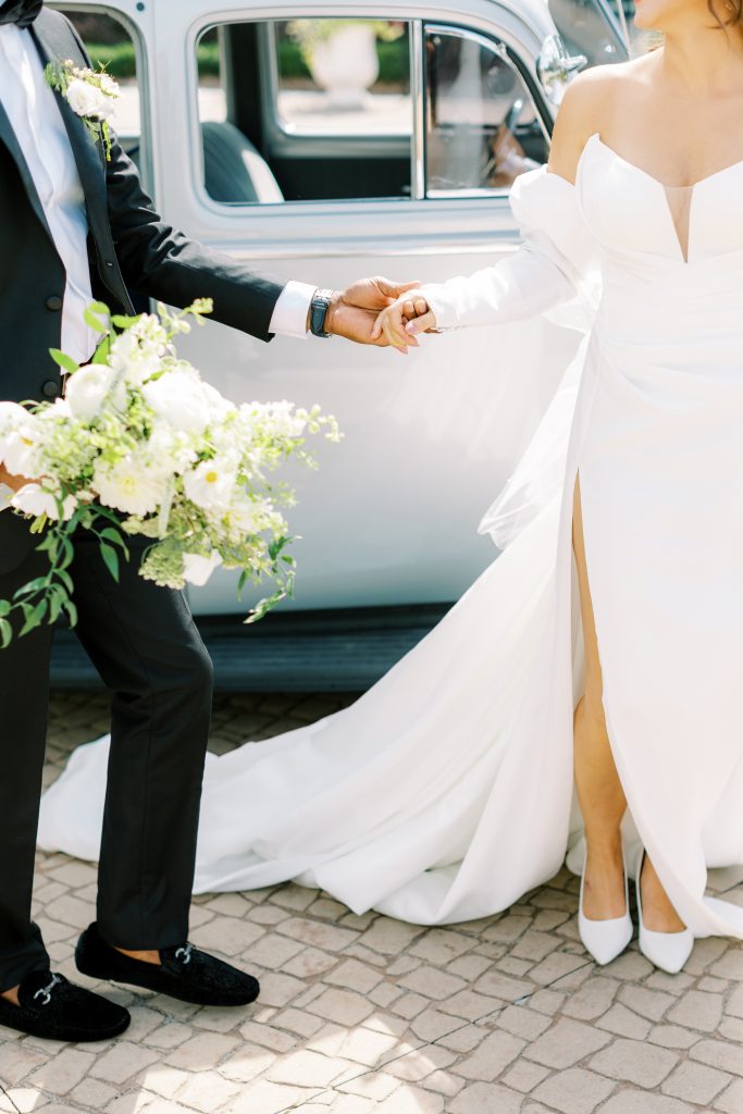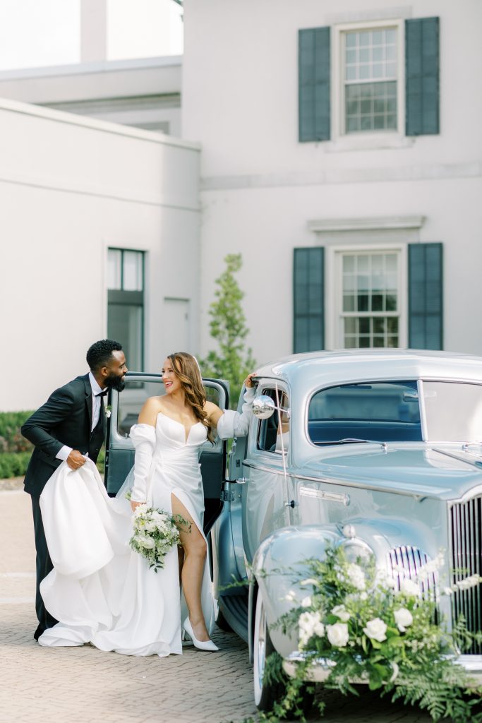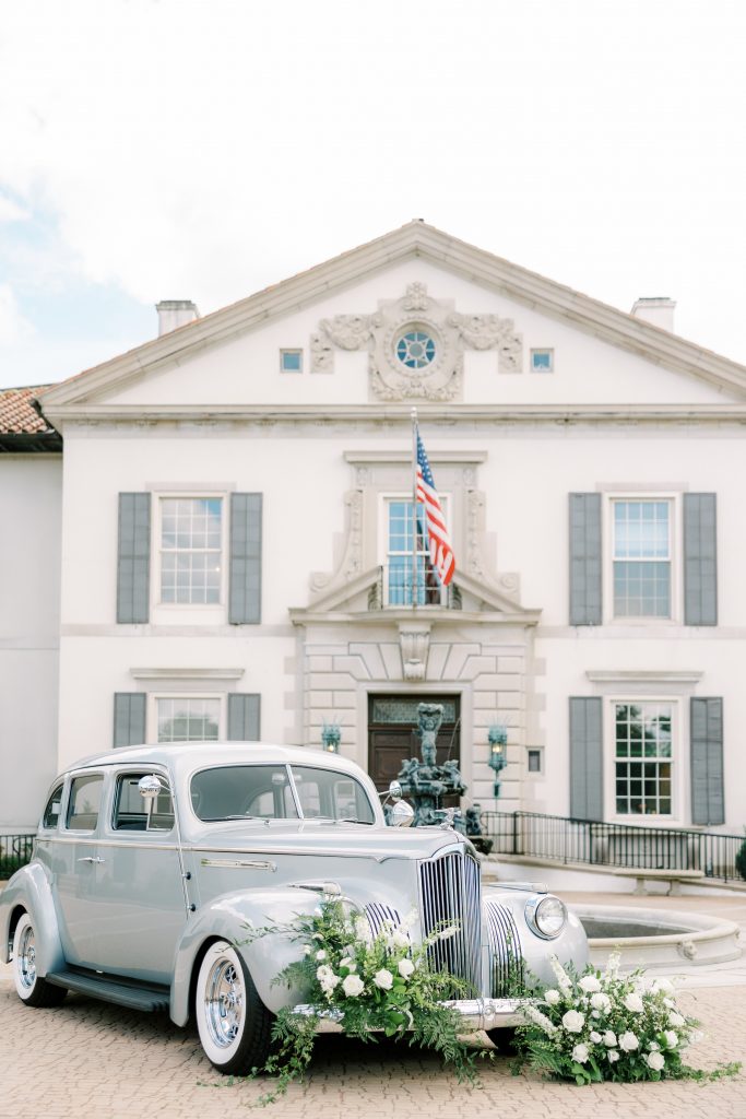 Even the bride and groom’s departure from The War Memorial was marked by timeless elegance. The 1941 Detroit Packard, affectionately named “The Hamilton,” completed the final piece of the editorial’s design. Adorned in florals, the stately vehicle provided a fitting companion for our couple, along with some much needed time cozied in the backseat.”