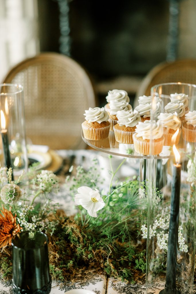 In lieu of only having the “traditional” wedding cake, we desired to create a more personal, intimate experience for guests. With a traditional wedding cake waiting for those who felt drawn to the classics, a mini-dessert experience for each place setting brought character and originality to the table-scape, heightening the experience of the guests. Housed in their own personal “displays” sat macaroons on each plate, beckoning guests to find their favorite flavor and claim their seat for the celebration.